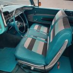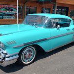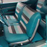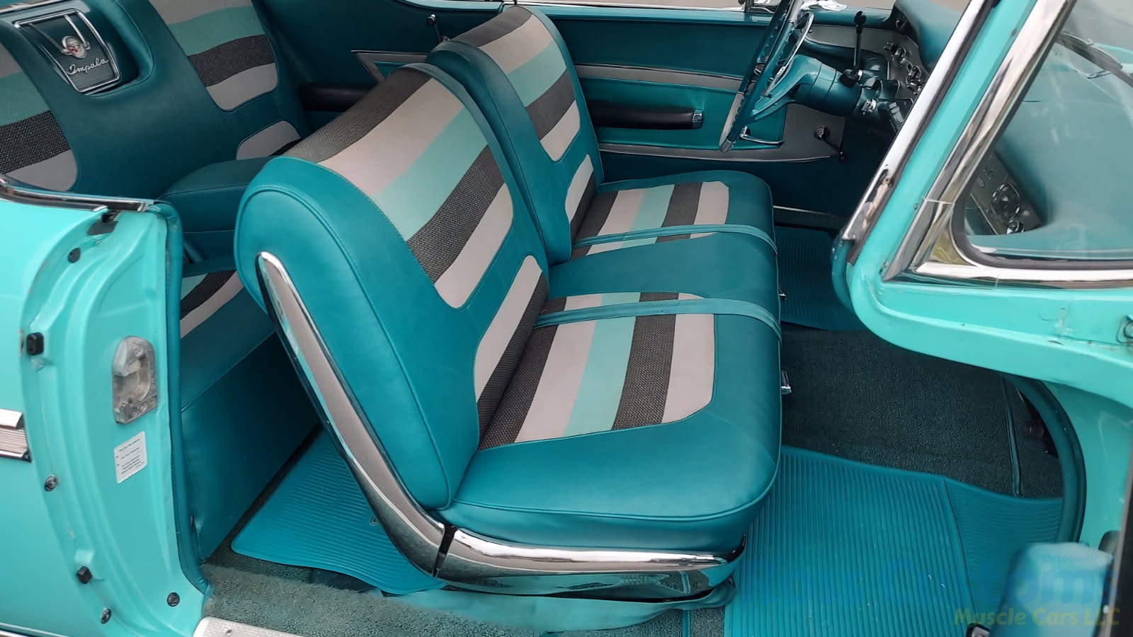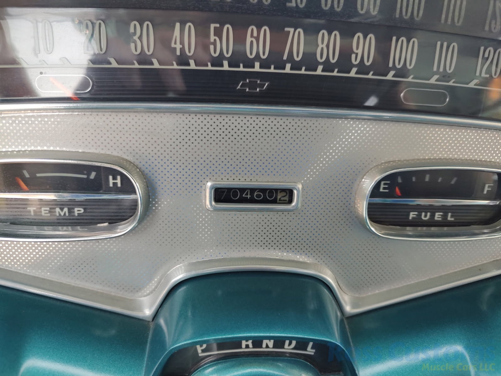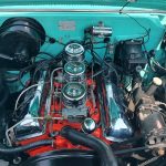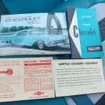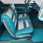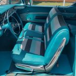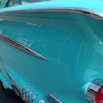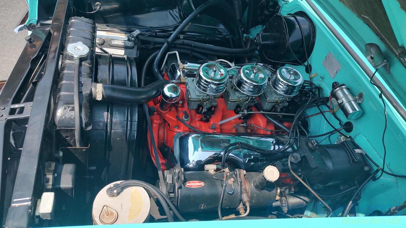 Under the hood we have the original 348 which has been rebuilt, factory Tri-Power, updated PerTronix ignition, chrome valve covers and air cleaners – also have factory Tri-Power air cleaner, has factory power brakes, power steering, optional windshield glass reservoir, factory heavy duty Harrison radiator with correct shroud and fan, this strong 348 is backed up with its original 2 speed factory power glide trans, factory exhaust manifolds in dual exhaust out the back with stainless tips.