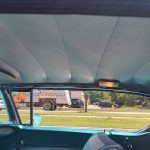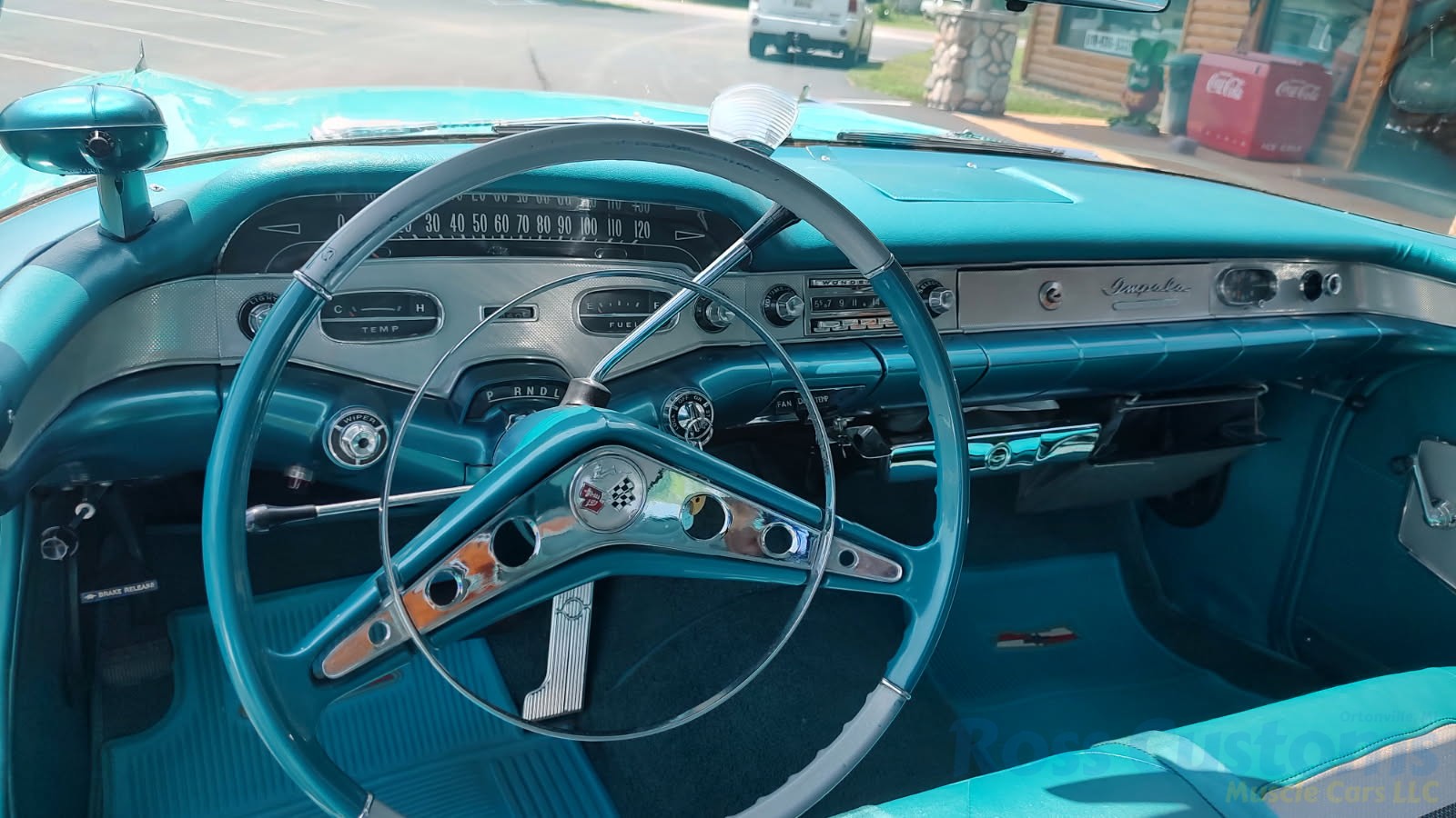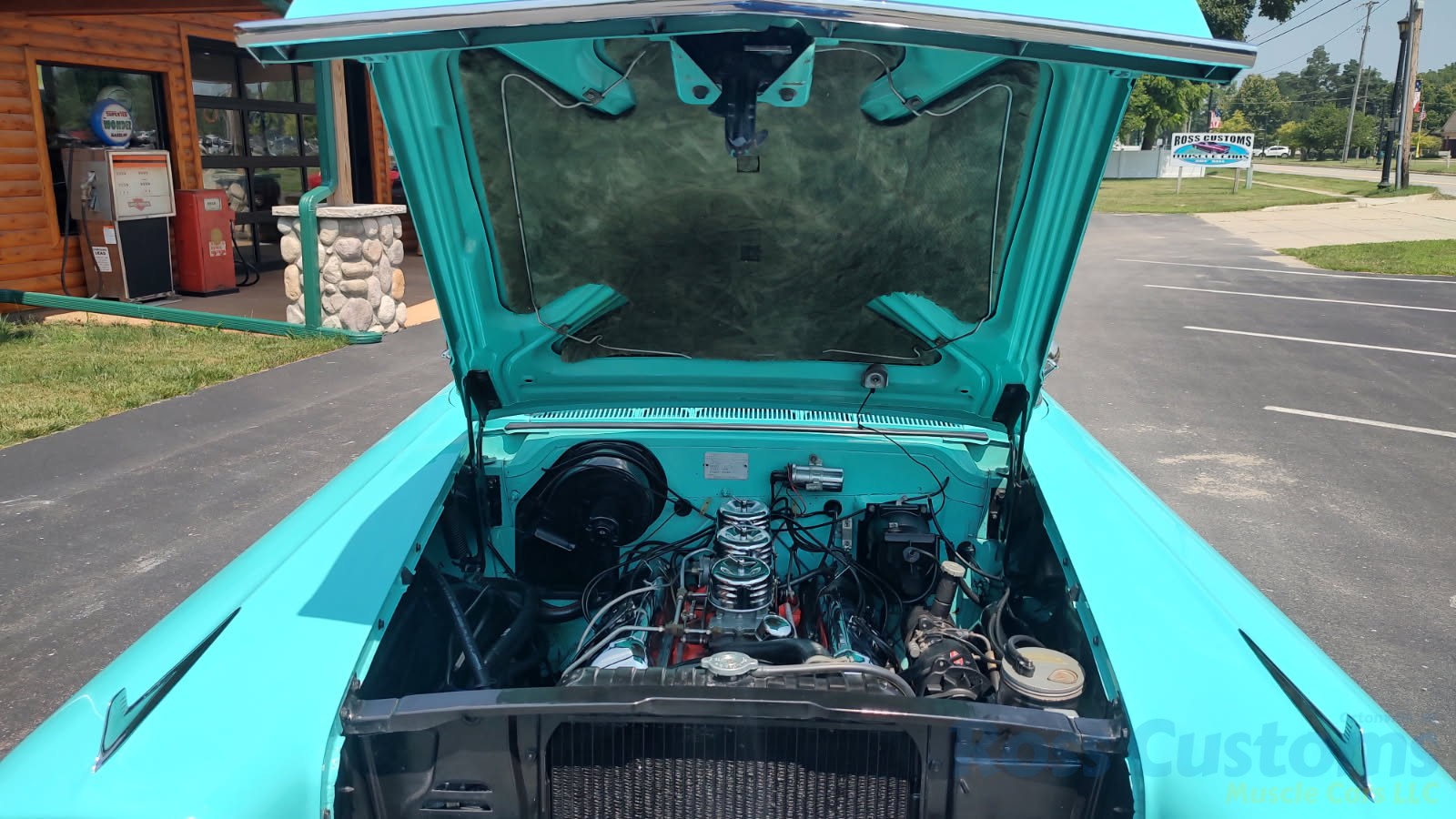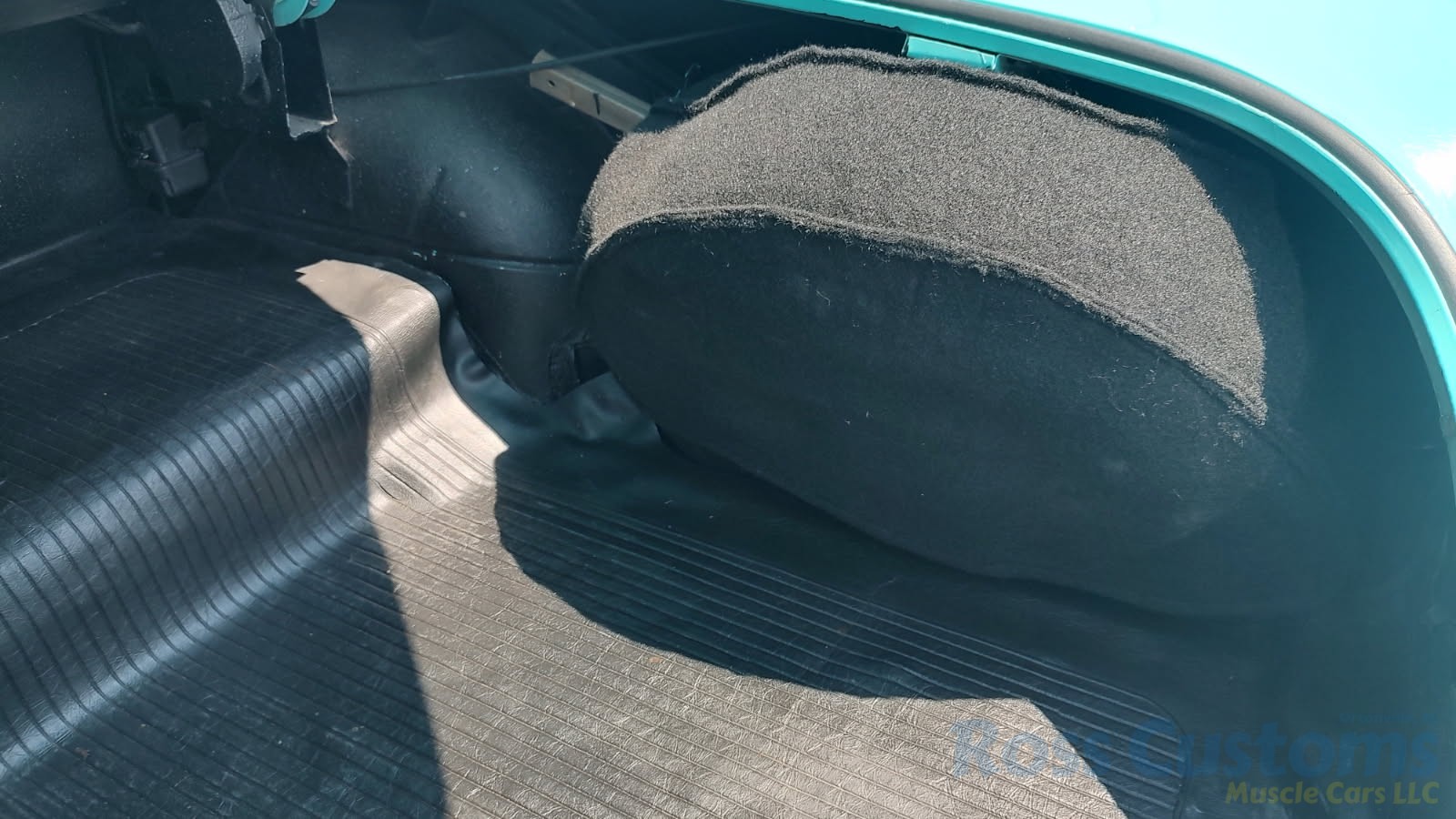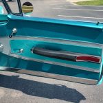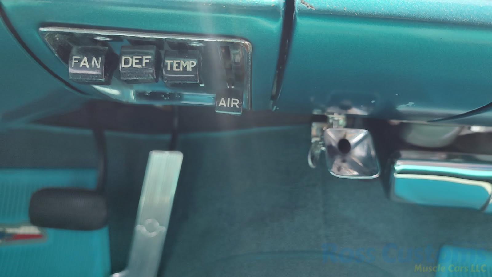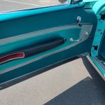Factory tri-tone interior which was replaced at time of restoration, dash housing is in excellent condition, all dash trim is original in excellent condition, optional padded dash, optional headlight dimmer and traffic light clamshell, updated with Wonder Bar AM/FM radio; also has front and rear speaker switch, optional vacuum ashtray – which works, optional Kleenex dispenser and map pocket, speedo shows 70,760, headliner and visors in excellent condition, all headliner stainless trim also in excellent condition, front and rear door panels look like new; as well as seat covers, updated with front seat belts, carpet in good condition, deluxe floor mats, sill placed have also been replaced, optional hood and trunk lights.