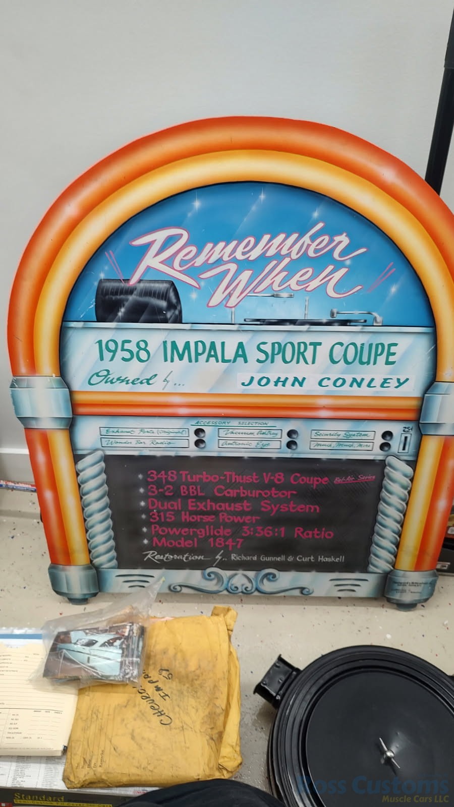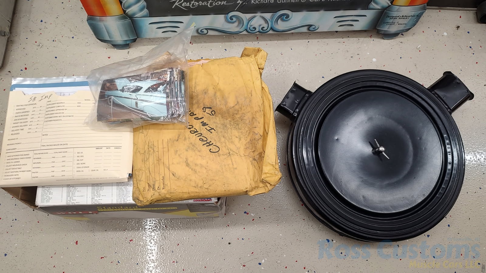 Factory jack and spare, receipts and photos of restoration; as well as maintenance, custom show board, car cover.