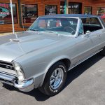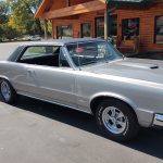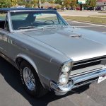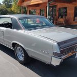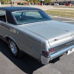 This is an “Absolutely Gorgeous” “Show Quality” 65 GTO that has had a recent rotisserie restoration, rust free all original panel car, done in stunning Silver Metallic, basecoat clearcoat, sanded and wheeled smooth, new black vinyl top, at time of restoration had all new tinted glass, original window stainless moldings have been re-polished in excellent condition, original vinyl top and drip rail moldings look like new, all new weather stripping and windows felts; including vent window rubbers, upper door and quarter trim are original in excellent condition, new door handles, new side view mirror, original grills in excellent condition, headlight bezels have also been re-chromed, original T3 headlights, re-chromed original front bumper, new emblems all around, wheel well and rocker moldings are original in excellent condition, taillight bezels and tail panel applique appear to be re-chromed in excellent condition, original rear bumper, with optional backup lights which has been re-chromed.
