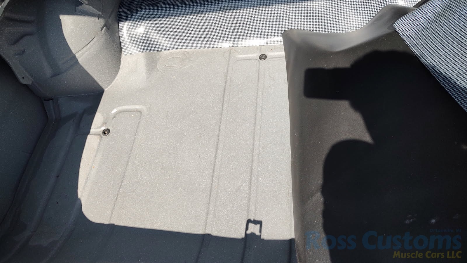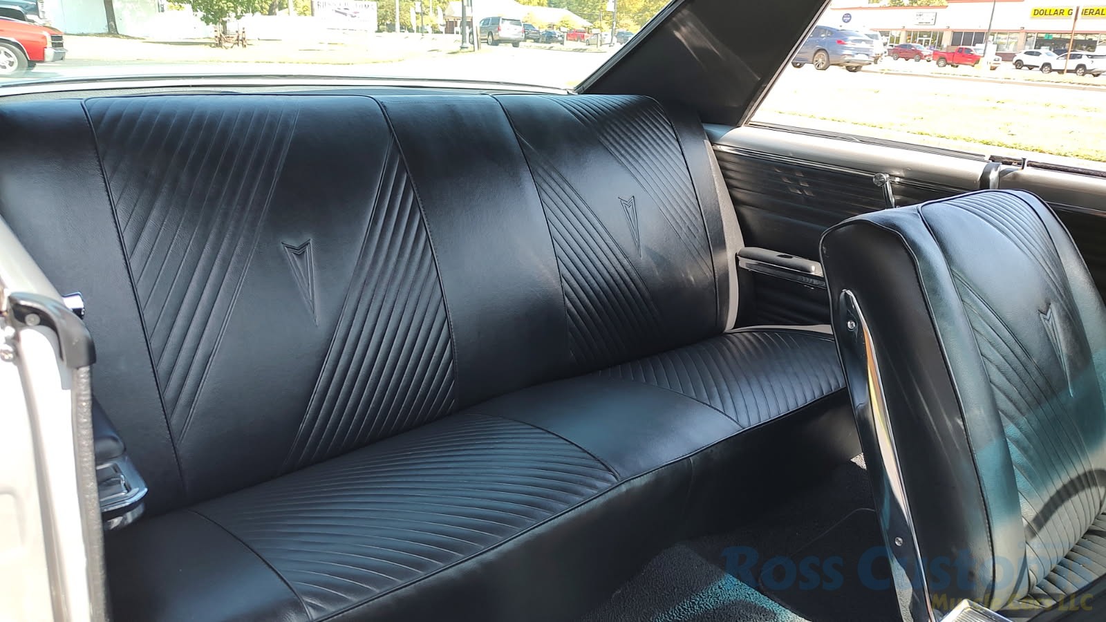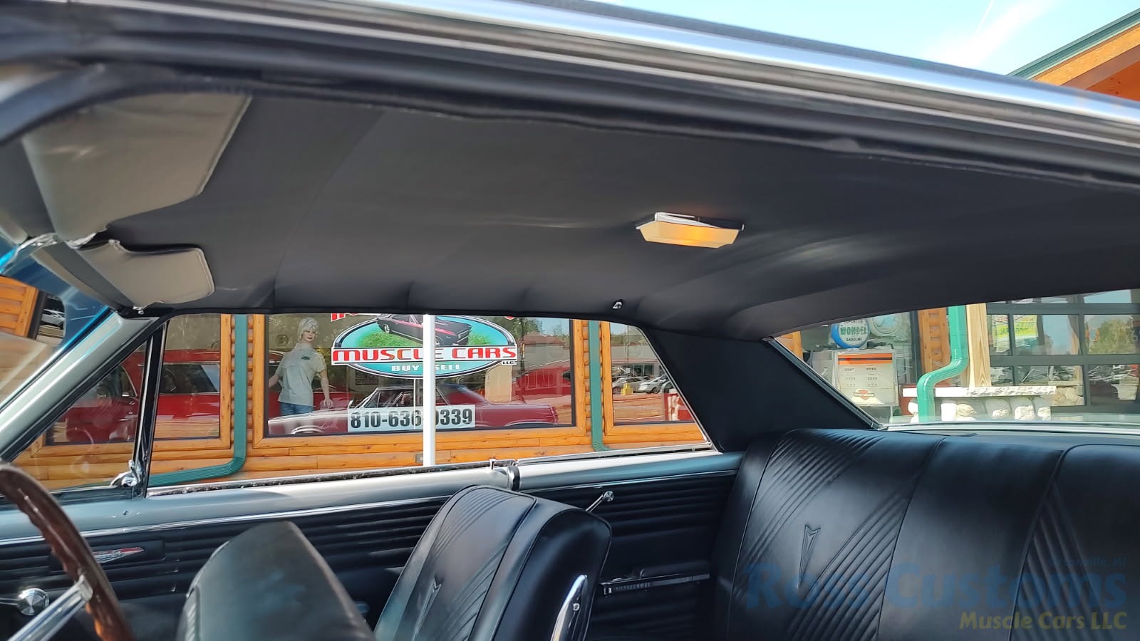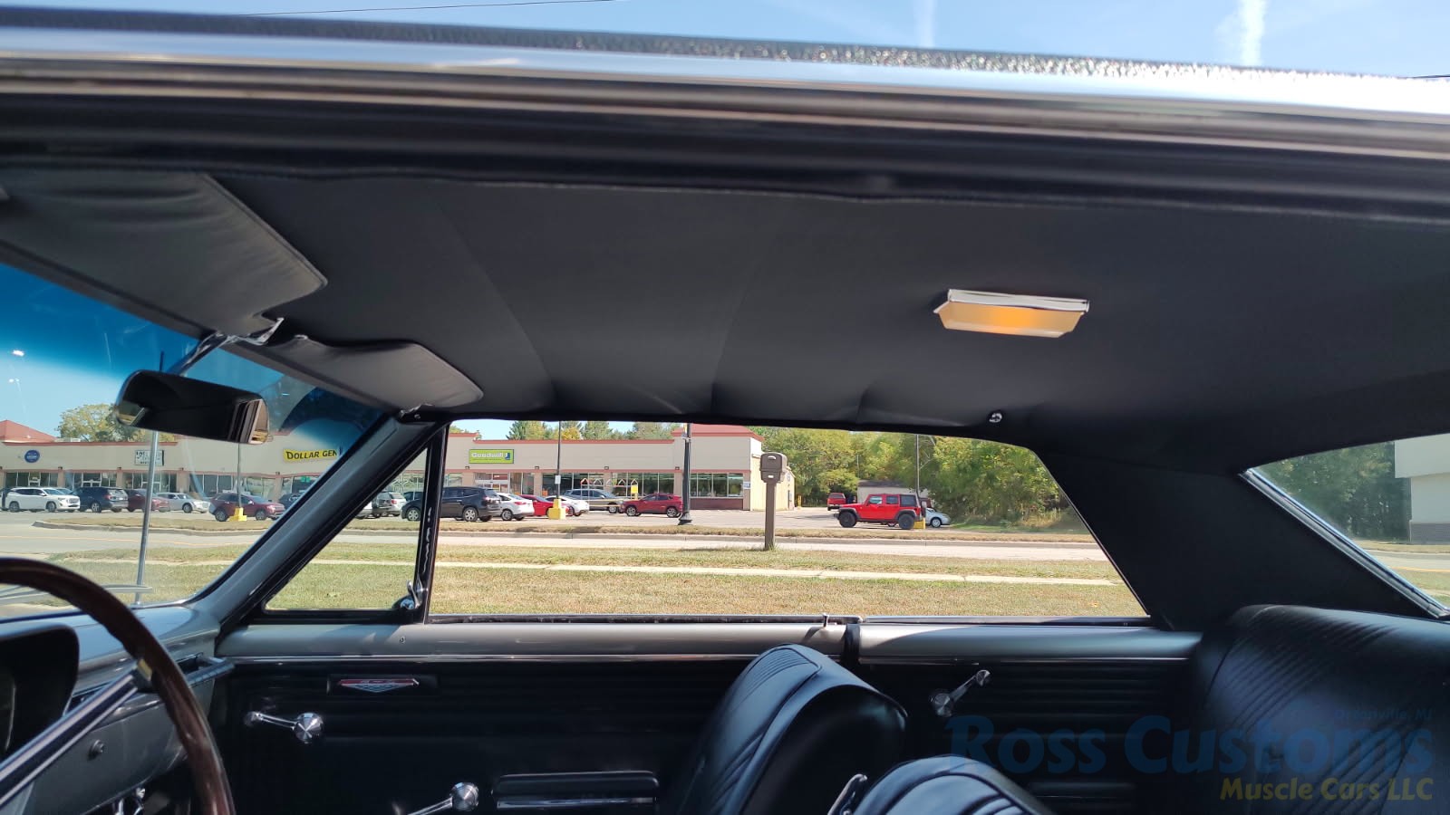 Factory black bucket seat console interior, dash has ben refinished, new factory wiring harness throughout, factory instrument cluster with full gauge package – showing 3,498 miles, dash bezel and woodgrain in excellent condition; as well as all other dash trim, factory appearing retro-fit AM/FM stereo with IPOD capability, 3 spoke deluxe wood steering wheel in excellent condition, nicely updated with Vintage heat and AC, vents nicely mounted under dash, deluxe pedal package, new headliner, visors and sail panels, deluxe package shelf with factory speaker grills, new front and rear door panels, new front and rear arm rest and bases, new front and rear seat covers; as well as foam, updated with GM front seat belts, original 4 speed center console in excellent condition with factory appearing Hurst shifter, new carpet and custom floor mats, new sill plates.
