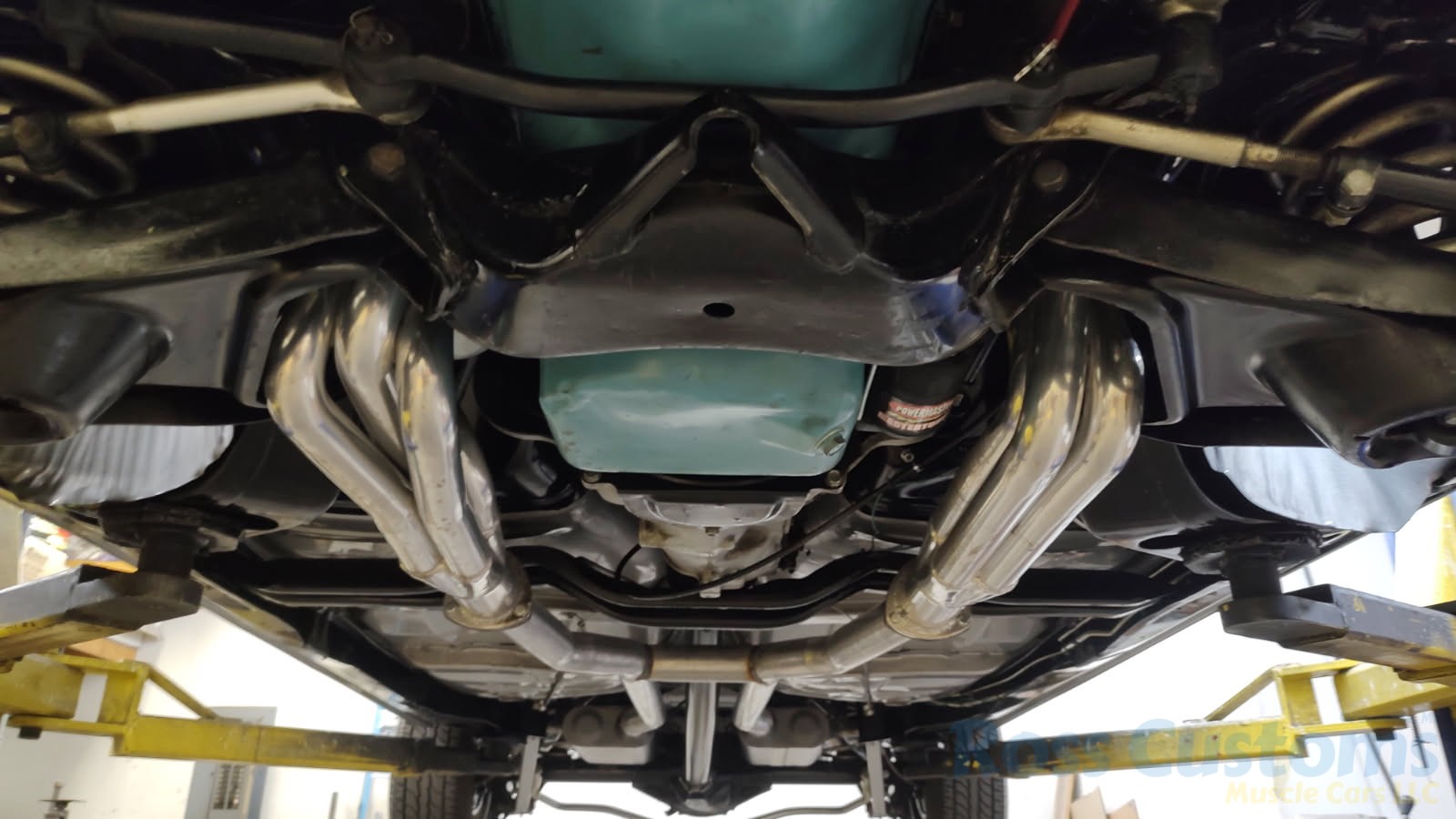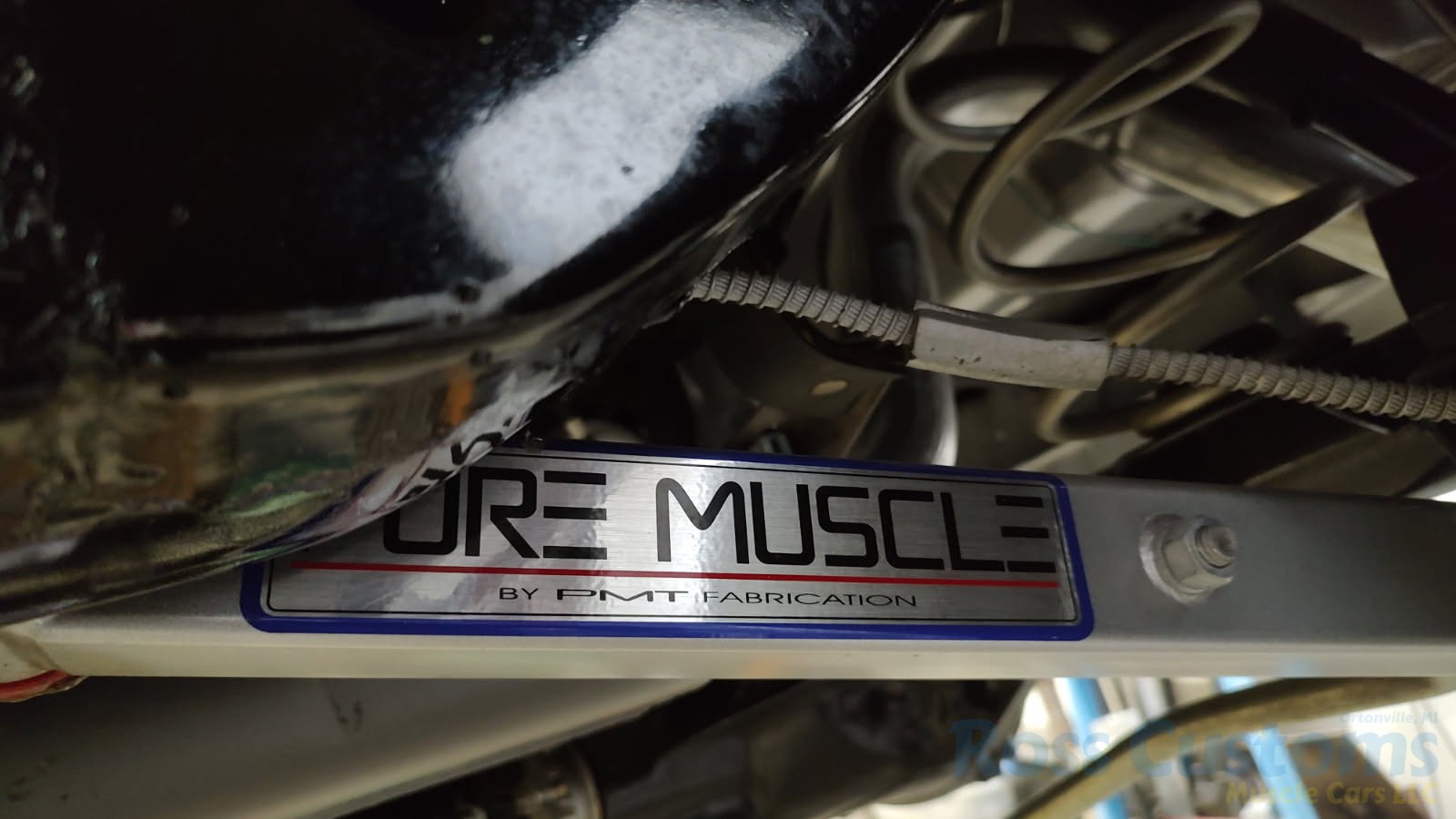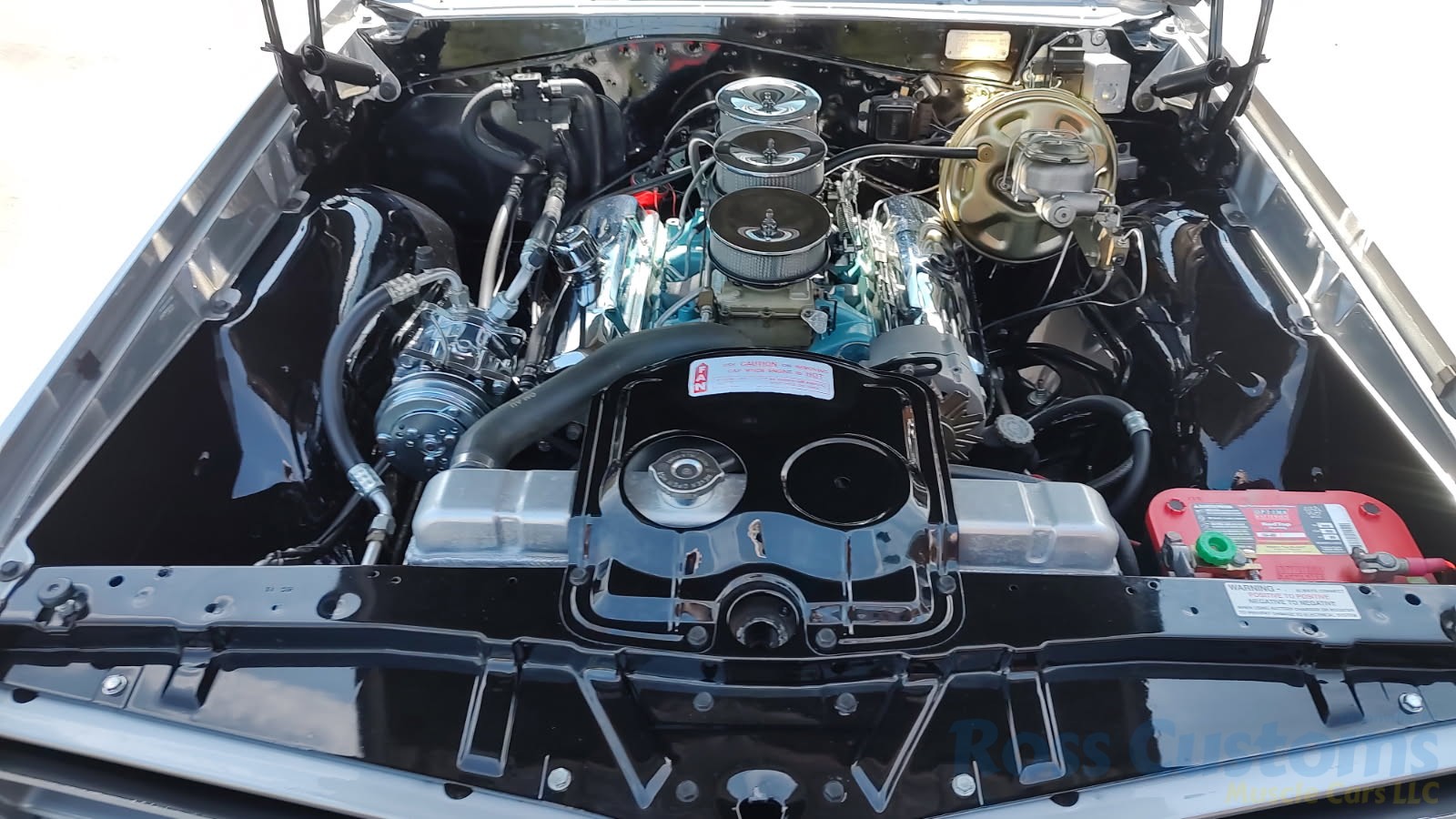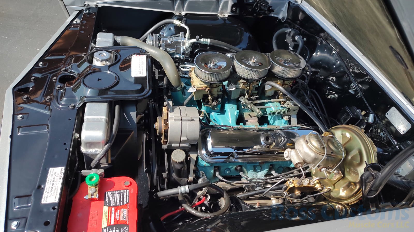 Under the hood the original motor has been replaced with a professionally built 400, original tri-power setup, factory valve covers and breathers, updated with Pertronix ignition, nicely updated with direct-fit aluminum radiator factory appearing, correct shroud and 7 blade clutch fan, nicely outfitted with Vintage AC and heat, chrome compressor, power steering, updated with power front disc brakes, stainless brake and fuel lines, this strong running 400 is backed up with a Muncie 4 speed trans and Hurst shifter, set of ceramic long tube headers into 2 1/2 inch dual Flowmaster exhaust out the back in stock location with chrome splitter tips, at time of restoration frame was powder coated; as well as control arms, new suspension components, front sway bar, rear has been nicely updated with Pure Muscle upper and lower control arms, sway bar, factory 10 bolt posi rear with 355 gear, new fuel tank and sending unit.
