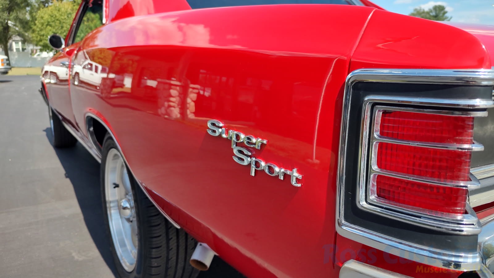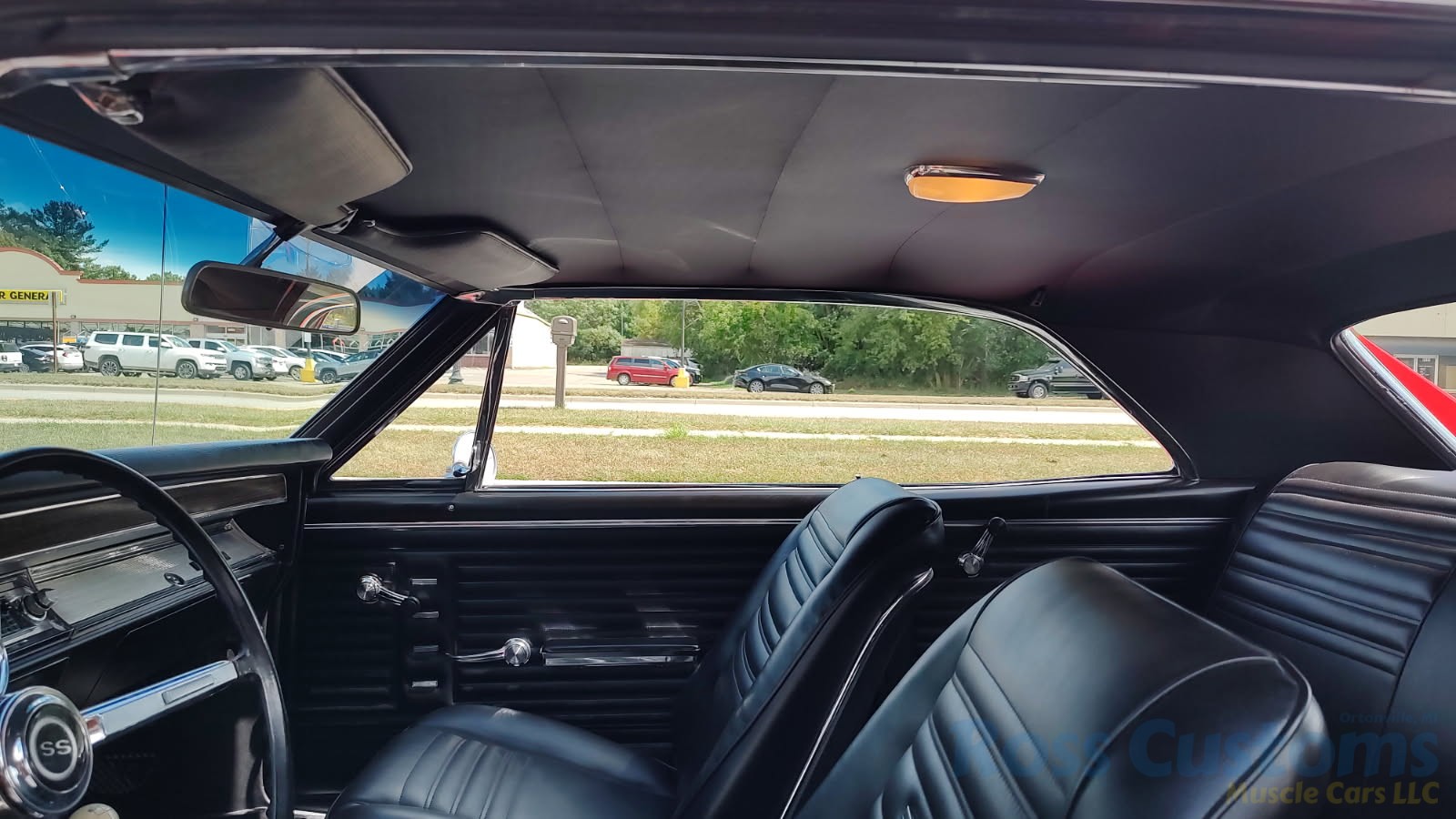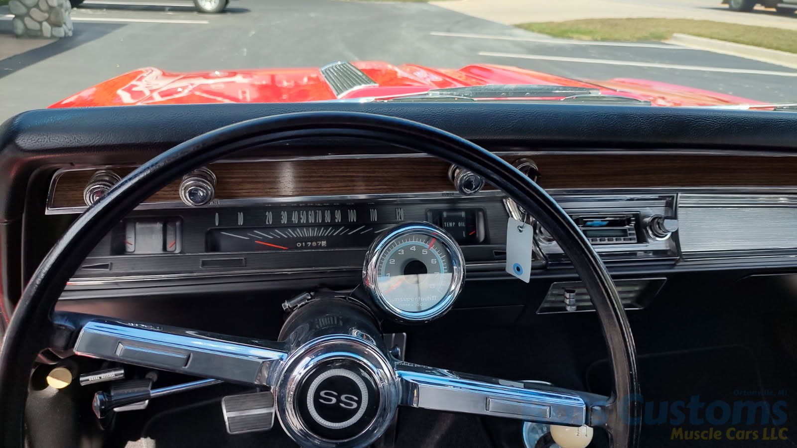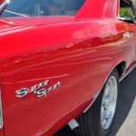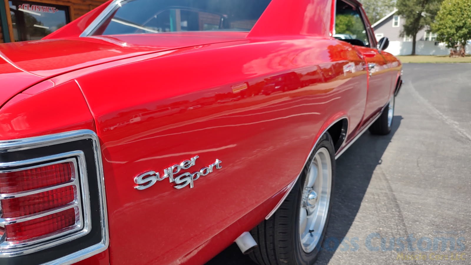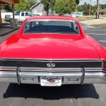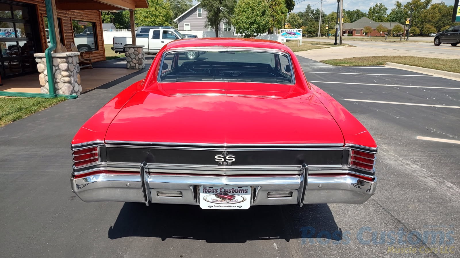 This is a very clean 67 Chevelle SS 396, 4 speed that has had a recent body up restoration, rust free, original panel car done in a very slick Victory Red, basecoat clearcoat, sanded and wheels smooth, slick as glass, at time of restoration had new tinted windshield; all other glass is factory original in very good condition, new weather stripping and window felts, original window stainless moldings in very good condition, new correct bowtie side view mirrors, new door handles, hood louvers, hood molding and fender eye brow moldings, grill and headlight bezels in excellent condition, original re-chromed front bumper with accessory bumper guards, new wheel well moldings and rocker moldings, taillight bezels have also been replaced, tail panel and deck lid moldings look like new, original rear bumper and bumper guards in very good condition.