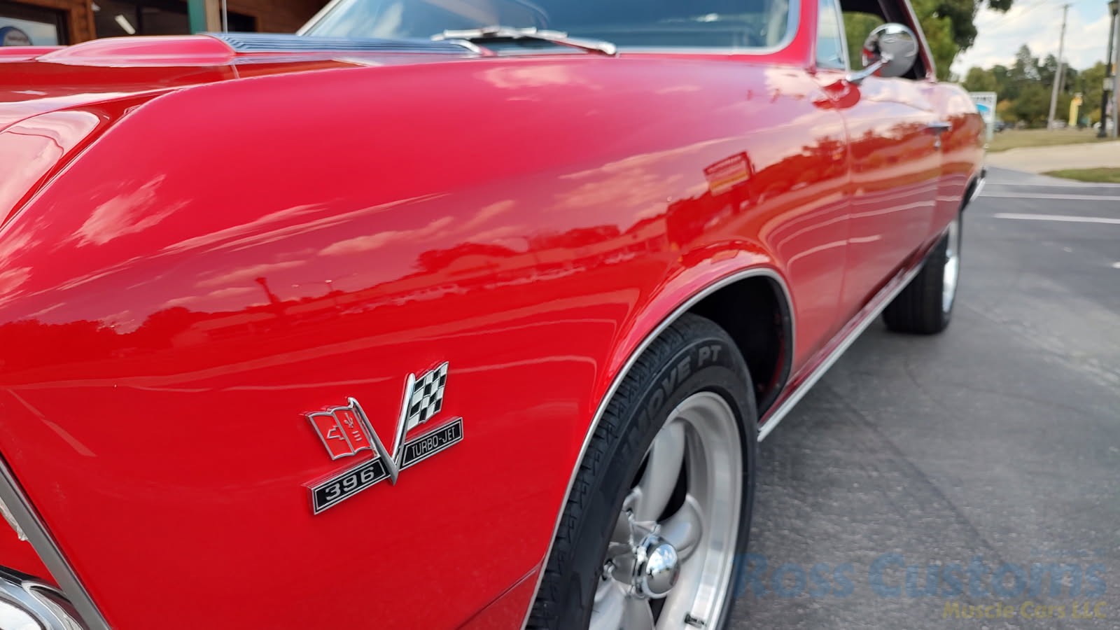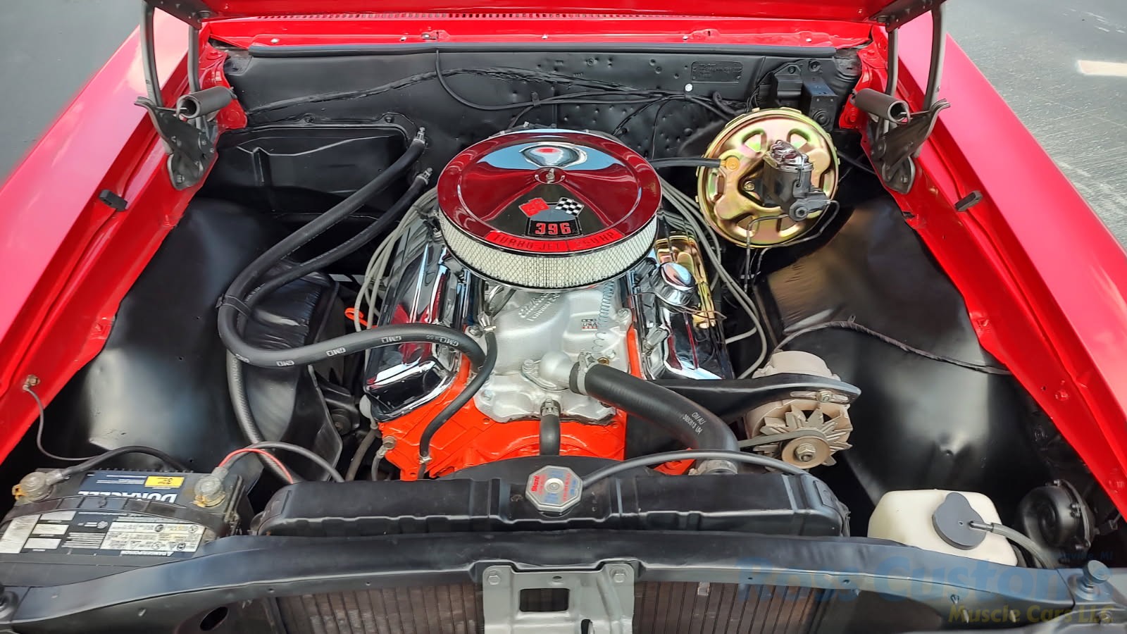 Under the hood we have a fresh professionally built 396, 60 over, comp cam, Edelbrock performance intake, 750 dual feed Holley 4 barrel carb, nicely updated with electronic ignition, chrome valve covers and breather, heavy duty radiator with correct shroud and 6 blade fan, nicely updated with power front disc brakes, this strong running 396 is backed up with a M21 Muncie 4 speed, new clutch and pressure plate, set of headers into 2 1/2 inch dual Flowmaster exhaust out the back, 12 bolt limited slip rear with 331 gear, rear sway bar, new fuel tank and sending unit.