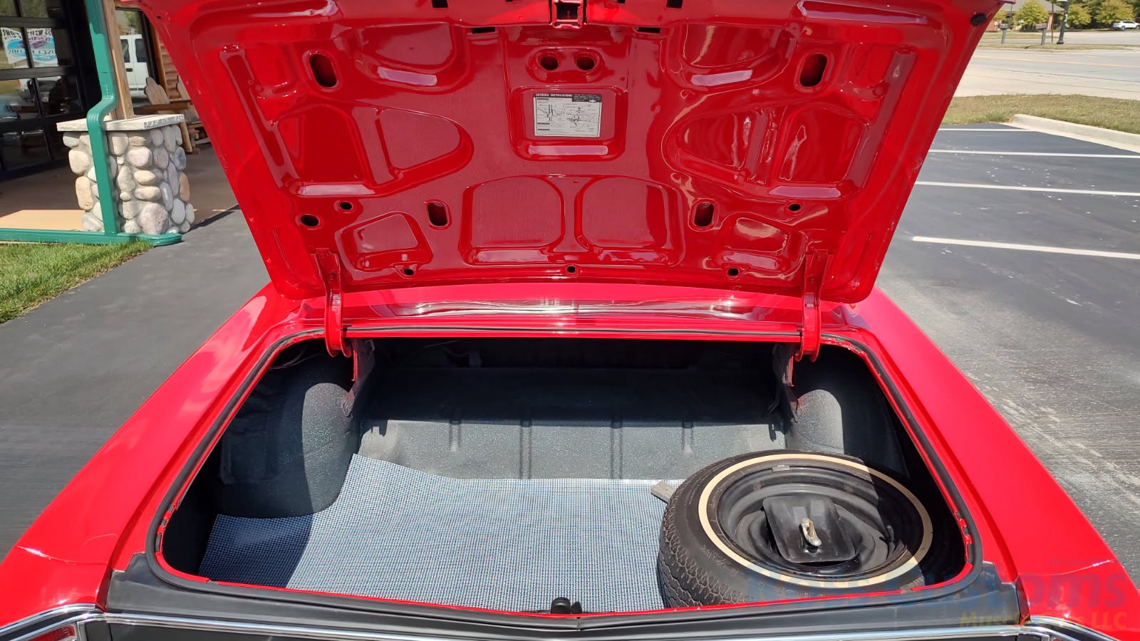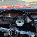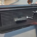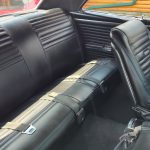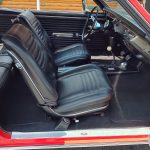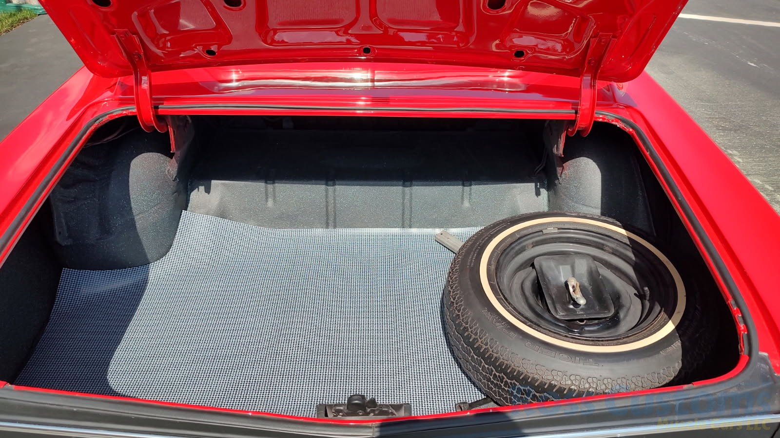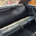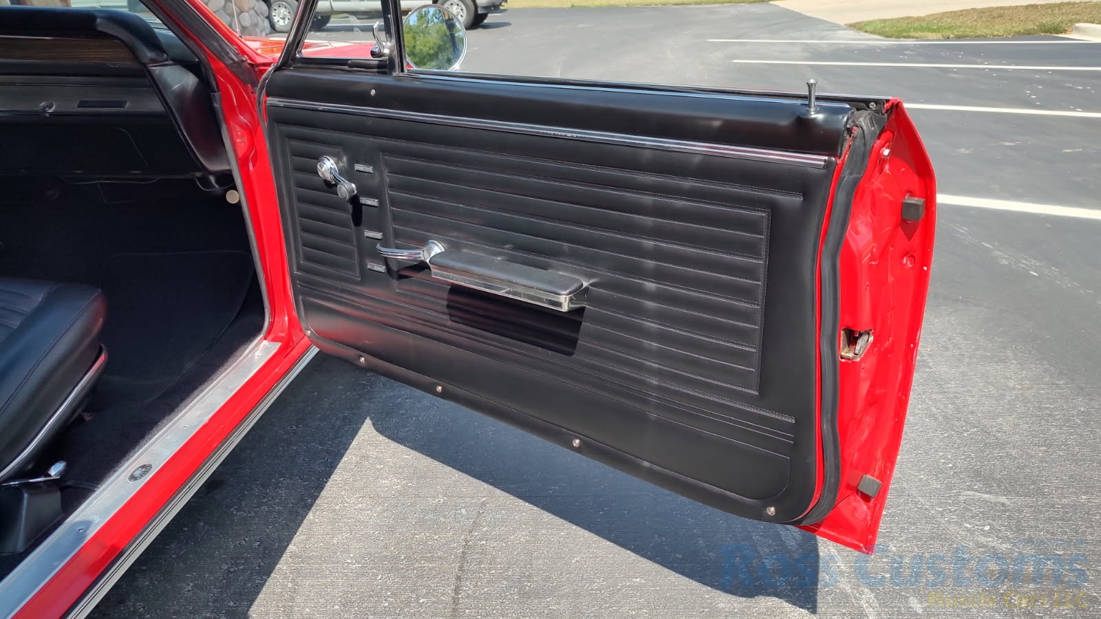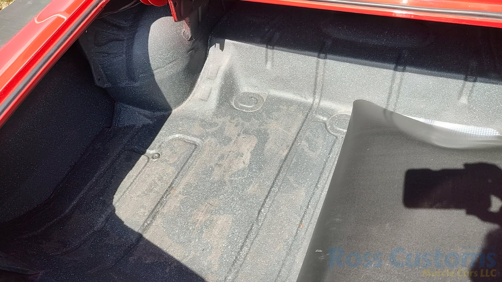 Factory black bucket seat console interior, dash housing has been refinished, at time of restoration had all new dash bezels, original factory gauge instrument cluster, nicely outfitted with direct-fit AM/FM/Cassette stereo, deluxe 3 spoke SS steering wheel, Vintage tach nicely mounted to column, deluxe pedal package, original dash pad in excellent condition, new headliner and sun visors, new sail panels, new front and rear door panels, arm rest and bases, front and rear seats have also been reupholstered, front and rear seat belts, original 4 speed center console in excellent condition, nicely outfitted with Hurst Competition Plus shifter, new carpet, floor mats and sill plates.