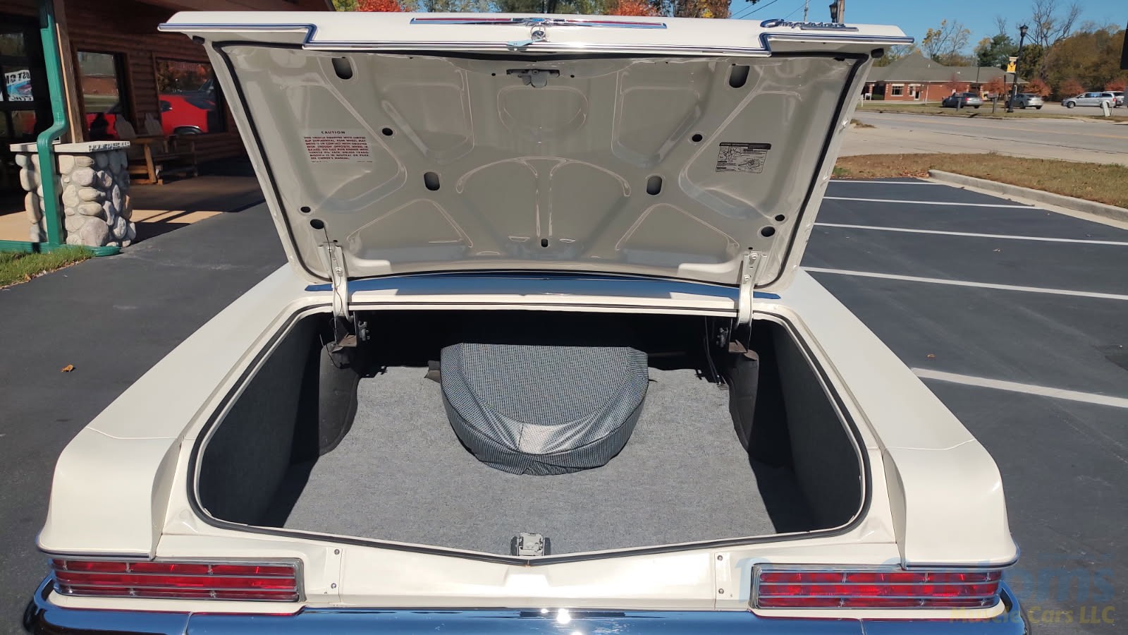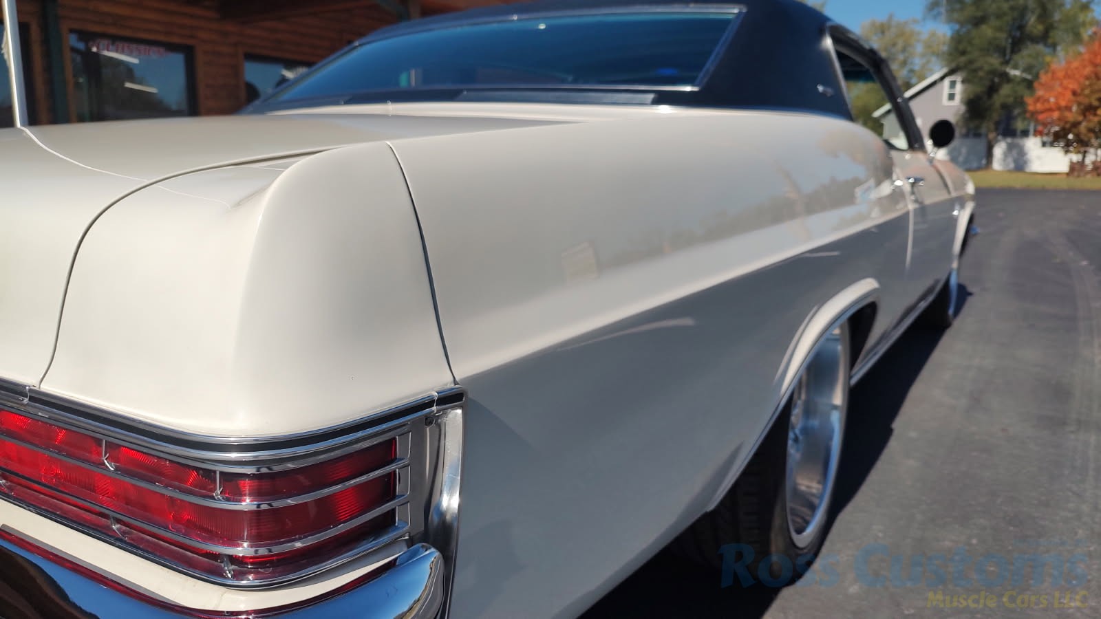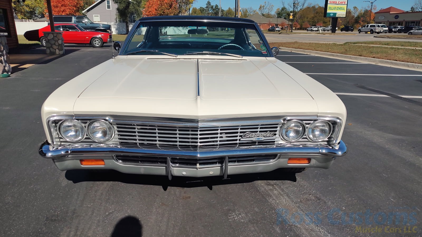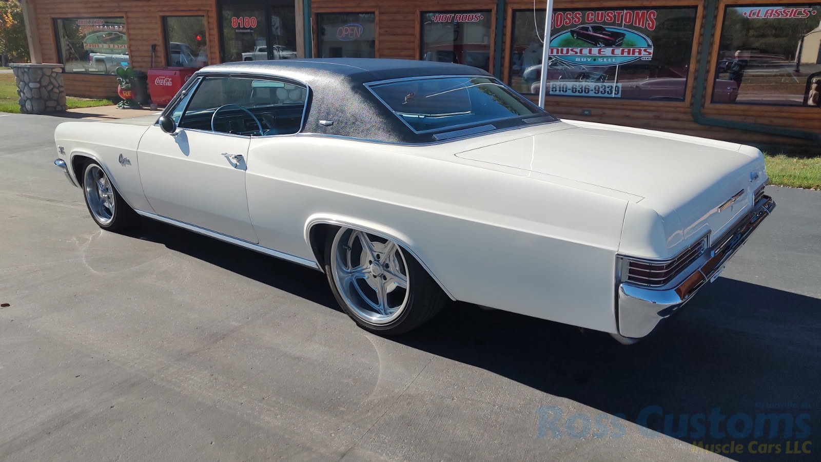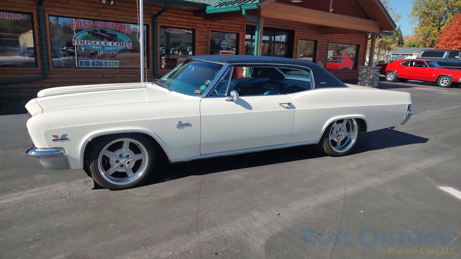 This is a very nice 66 Caprice, clean all original panel car that has had 1 repaint its factory original Ermine White, at time of repaint had new vinyl top, new tinted windshield; all other glass is original factory softray tint in excellent condition, retains all original window trim, drip rail and vinyl top moldings in excellent condition, upper door and quarter stainless moldings are in excellent condition, also at time of repaint had new weather stripping and window felts, new door handles and correct side view passenger mirror; drive side is remote and original in excellent condition, original hood spear in excellent condition, grill, grill moldings and headlight bezels are all original in excellent condition, front bumper has been re-chromed; as well as bumperettes, 396 emblems look like new; all other emblems are original in excellent condition, original rocker and wheel well moldings in excellent condition, rear deck lid and rear quarter moldings; as well as taillights and taillight bezels are original in excellent condition, rear bumper has been re-chromed.
