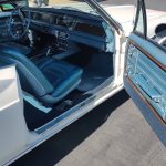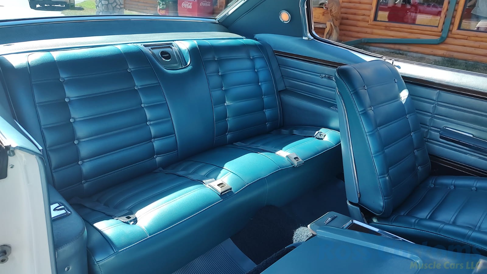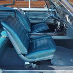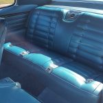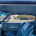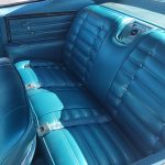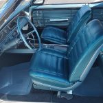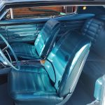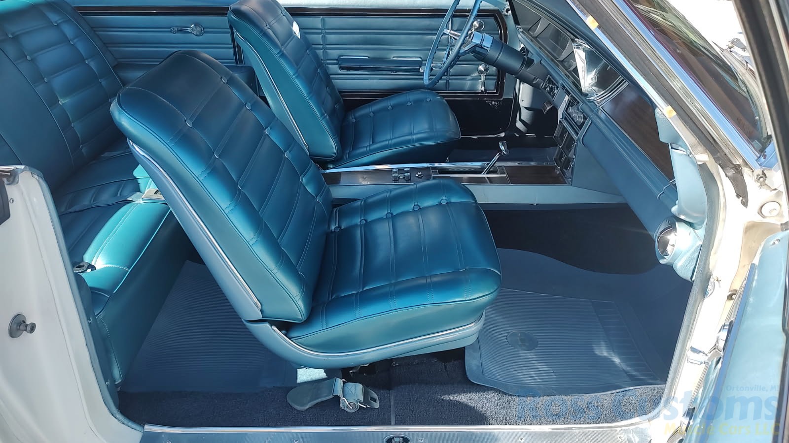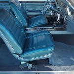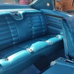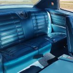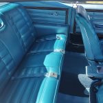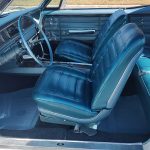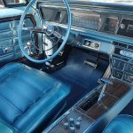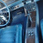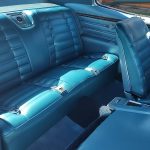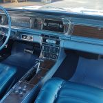 Factory Bright Blue interior, dash appears to be original; as well as dash pad – which are all in very good condition, original instrument cluster and bezel in excellent condition, speedo showing 99,000 miles, factory working AM/FM stereo with rare optional stereo controls factory mounted in console lid, factory AC car but has been updated with Vintage AC and heat, rare factory gauge package with center console, factory original steering wheel in excellent condition, new headliner and visors, headliner stainless moldings are original in excellent condition, original front and rear door panels in excellent condition, front and rear seats appear to have been reupholstered, optional front and rear seat belts, new carpet and deluxe floor mats, original sill plates, trunk has been upholstered.