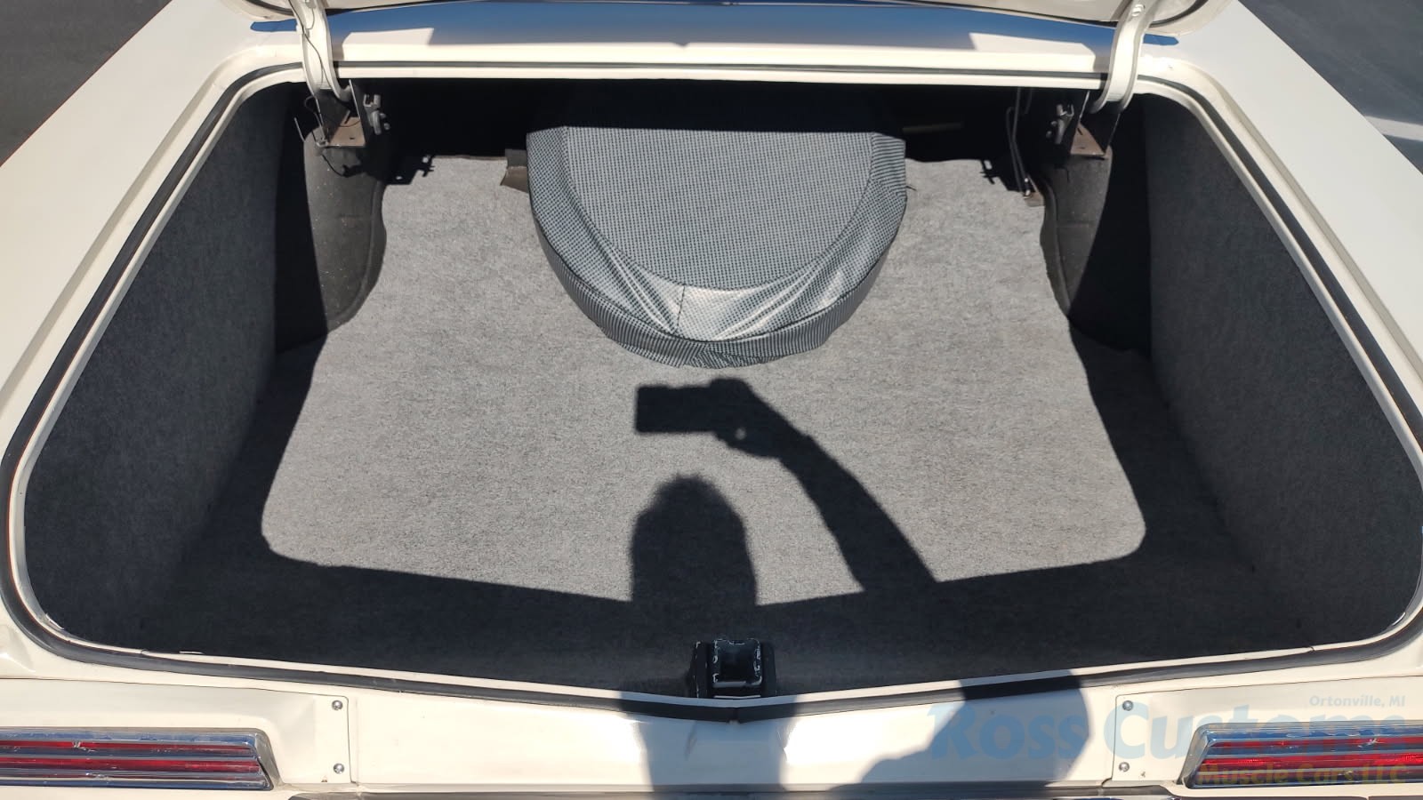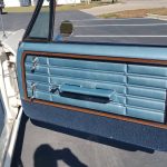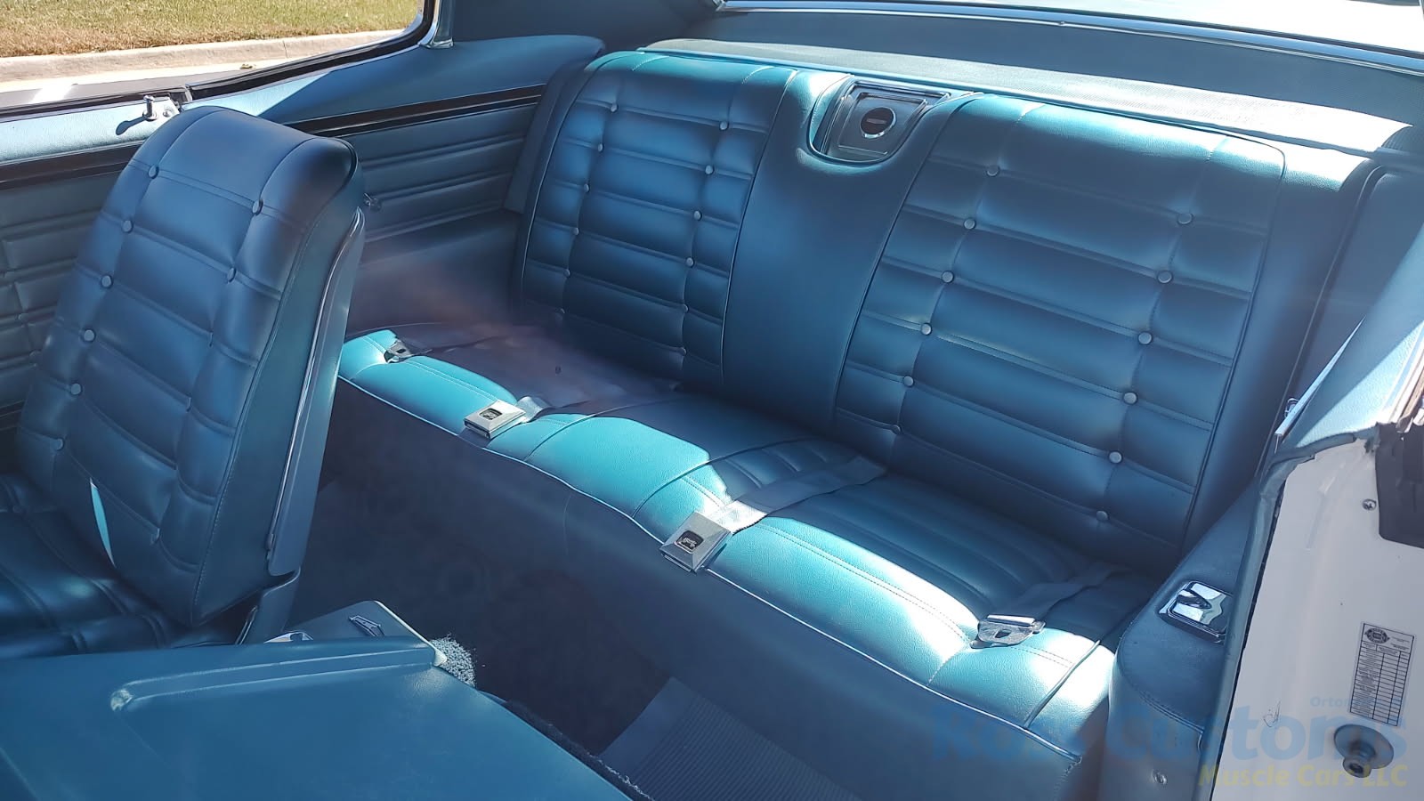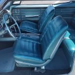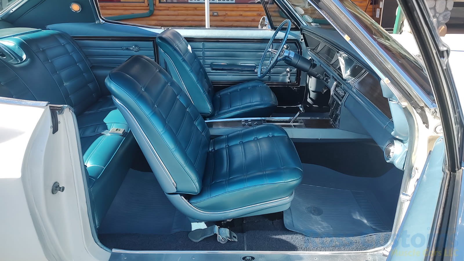 Factory Bright Blue interior, dash appears to be original; as well as dash pad – which are all in very good condition, original instrument cluster and bezel in excellent condition, speedo showing 99,000 miles, factory working AM/FM stereo with rare optional stereo controls factory mounted in console lid, factory AC car but has been updated with Vintage AC and heat, rare factory gauge package with center console, factory original steering wheel in excellent condition, new headliner and visors, headliner stainless moldings are original in excellent condition, original front and rear door panels in excellent condition, front and rear seats appear to have been reupholstered, optional front and rear seat belts, new carpet and deluxe floor mats, original sill plates, trunk has been upholstered.