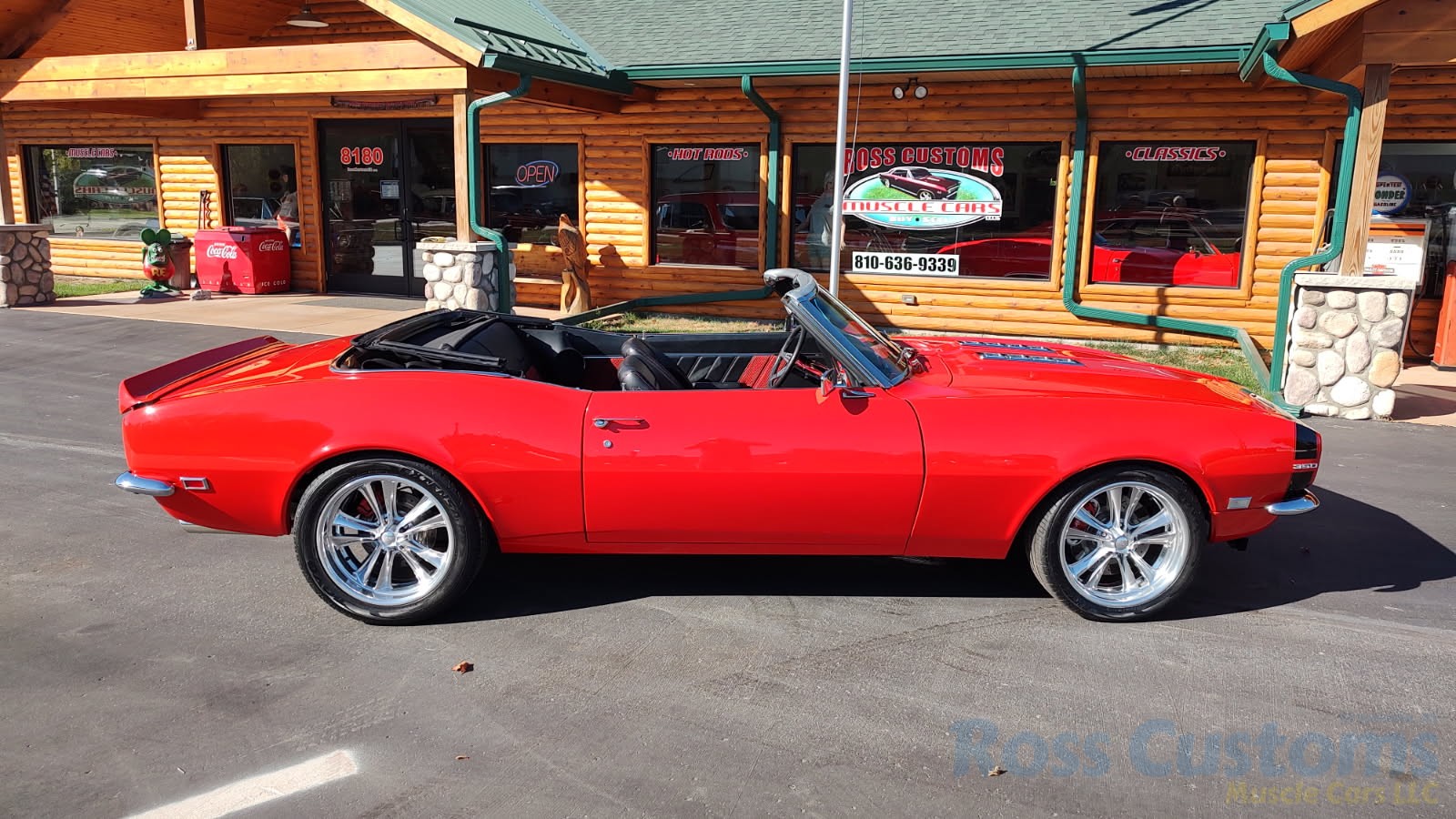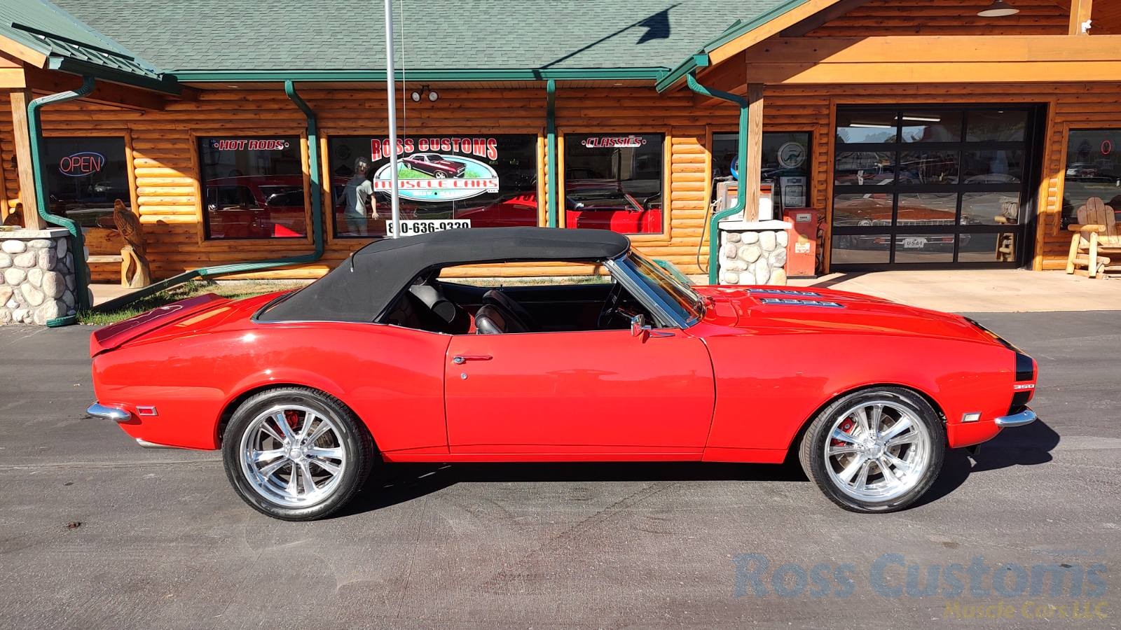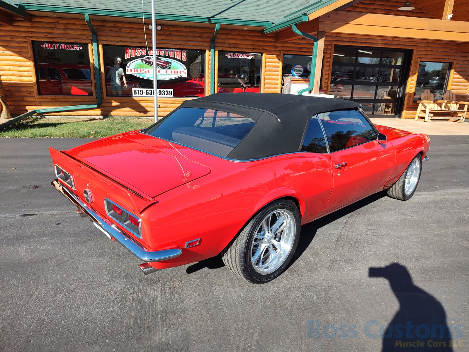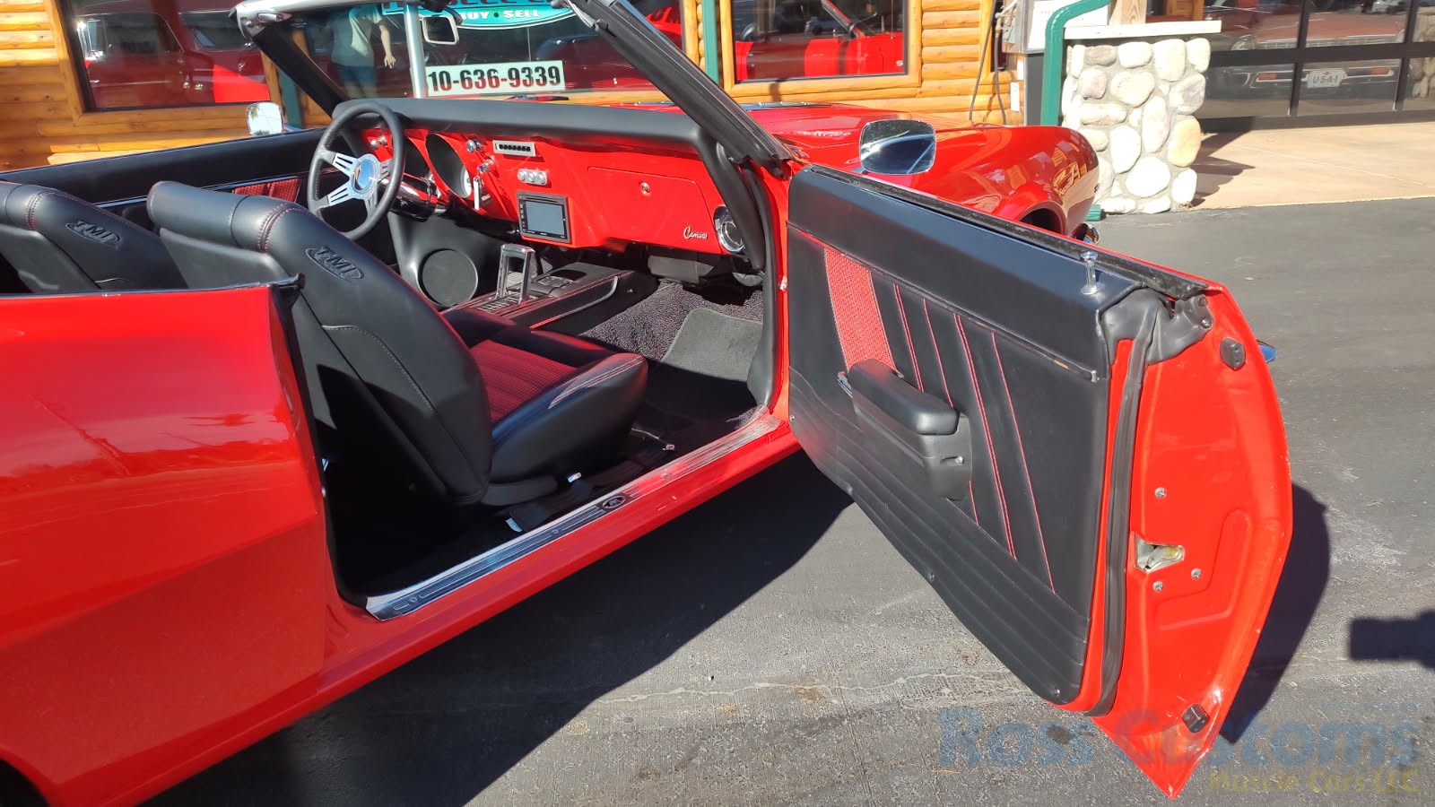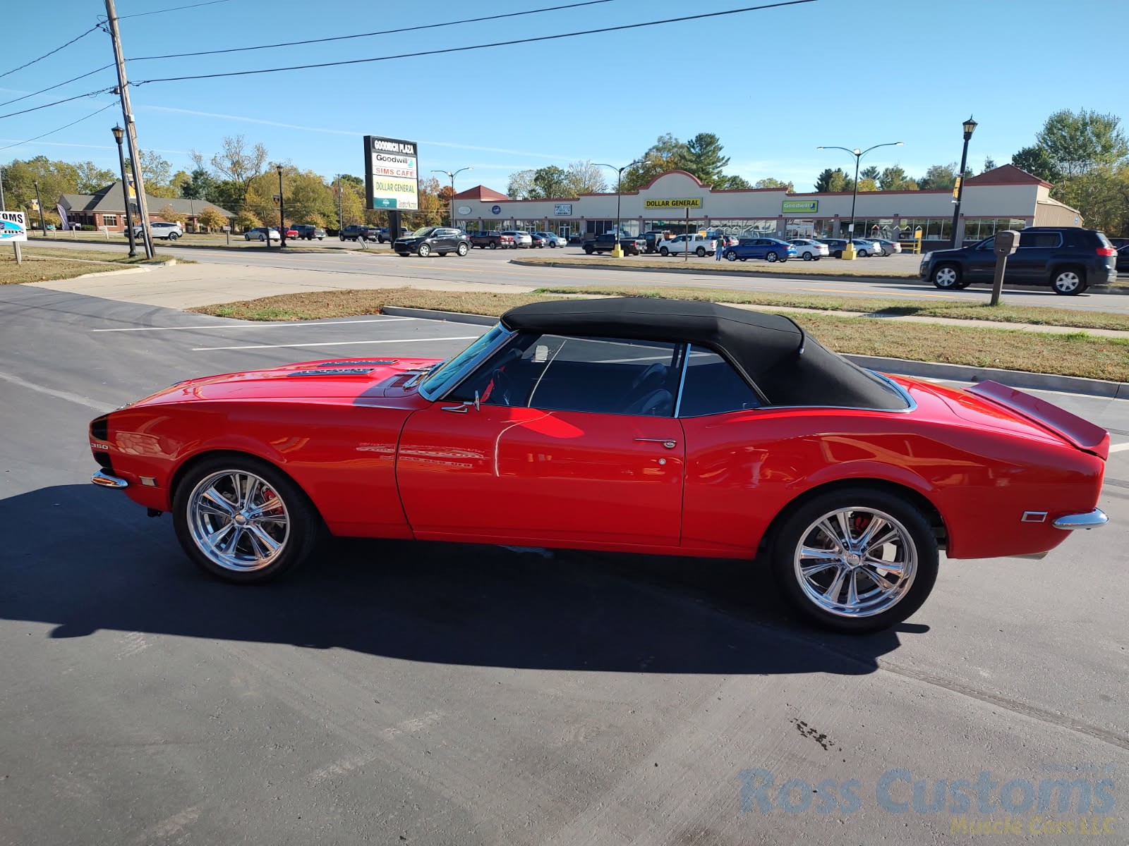 This is a “BAD ASS” 68 Camaro RS/SS Convertible that has had a complete custom build, done in “Show Quality” Torch Red with black bumblebee strip, basecoat clearcoat, sanded and wheeled smooth, slick as glass, new canvas convertible top and new window; which is power, new tinted glass throughout, window stainless and top stainless moldings are original in excellent condition, new weather stripping and window felts, new side view mirrors and door handles, wiper arms look like new, new SS ice cube hood inserts, new grill, headlight doors and grill moldings, updated with Detroit Speed electric headlight doors, re-chromed front bumper, new chin spoiler, new emblems, new side marker bezels, rear deck spoiler, new taillight housings and lens, new backup lights, new SS fuel cap, re-chromed rear bumper.