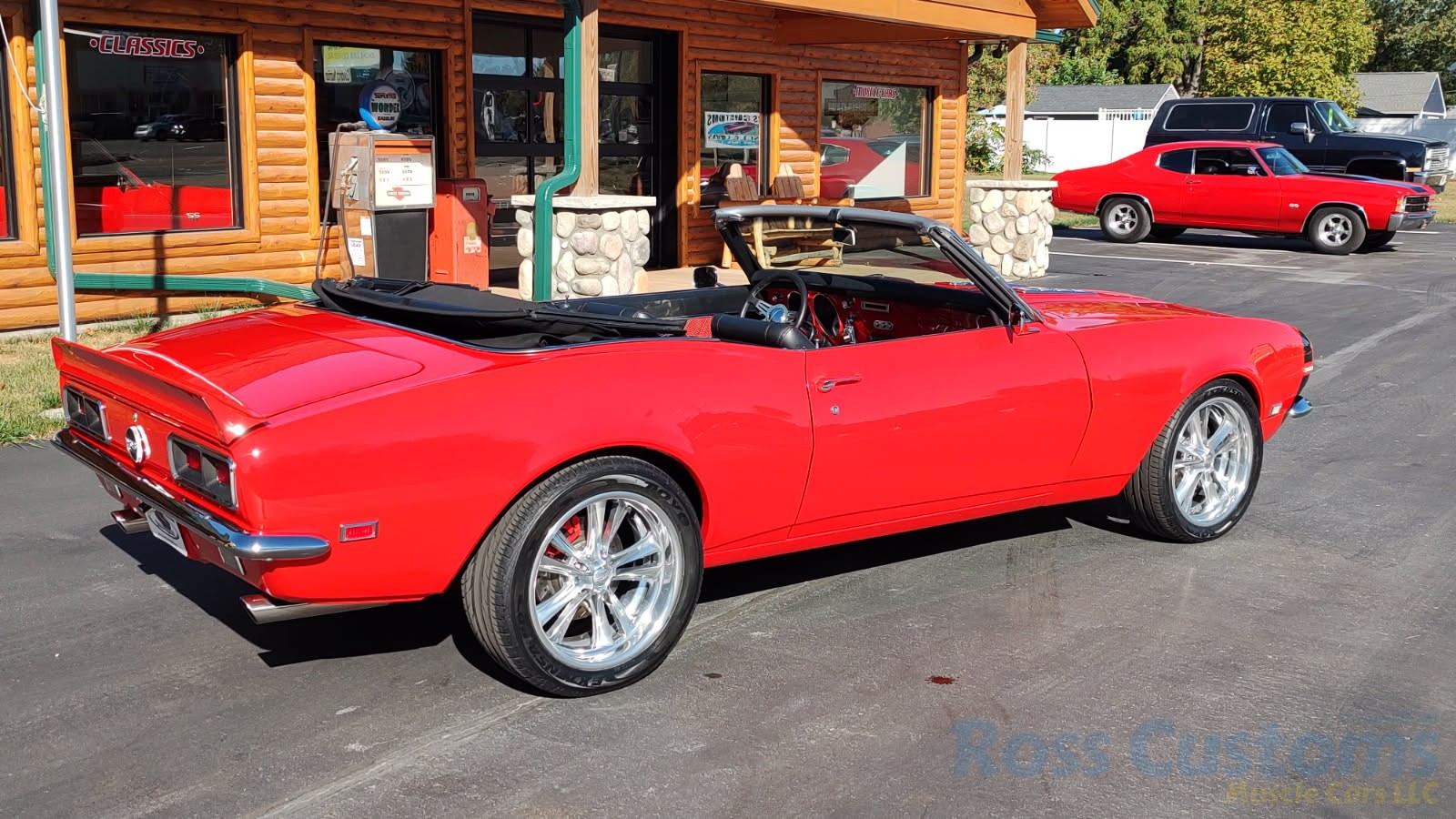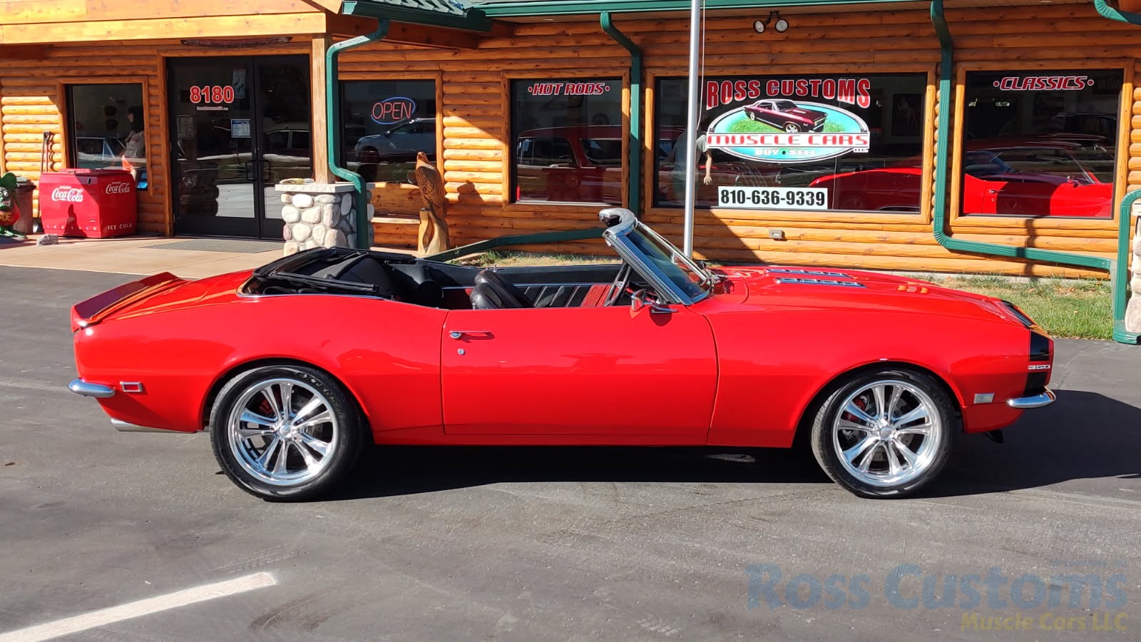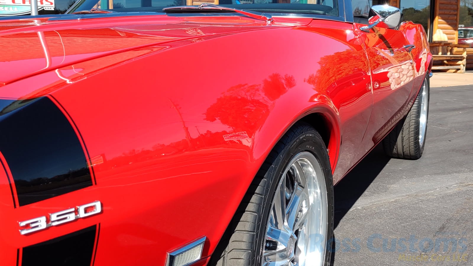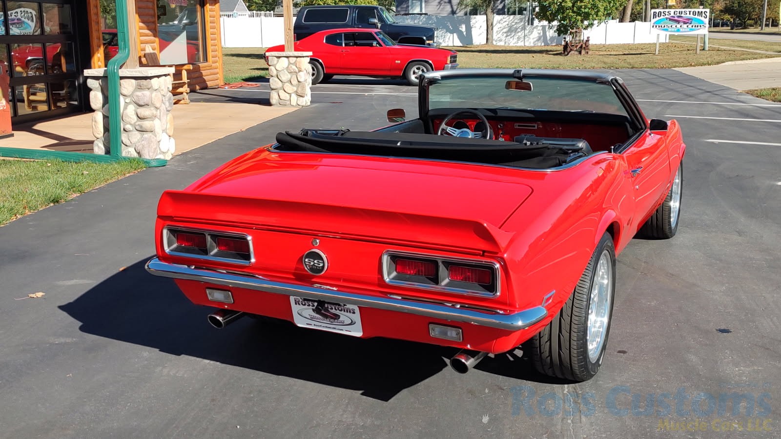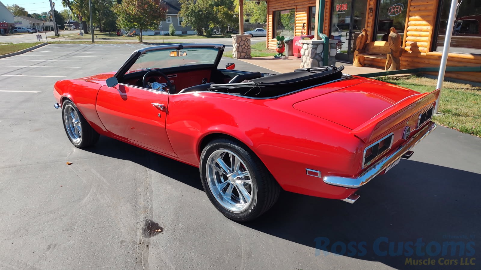 This is a “BAD ASS” 68 Camaro RS/SS Convertible that has had a complete custom build, done in “Show Quality” Torch Red with black bumblebee strip, basecoat clearcoat, sanded and wheeled smooth, slick as glass, new canvas convertible top and new window; which is power, new tinted glass throughout, window stainless and top stainless moldings are original in excellent condition, new weather stripping and window felts, new side view mirrors and door handles, wiper arms look like new, new SS ice cube hood inserts, new grill, headlight doors and grill moldings, updated with Detroit Speed electric headlight doors, re-chromed front bumper, new chin spoiler, new emblems, new side marker bezels, rear deck spoiler, new taillight housings and lens, new backup lights, new SS fuel cap, re-chromed rear bumper.