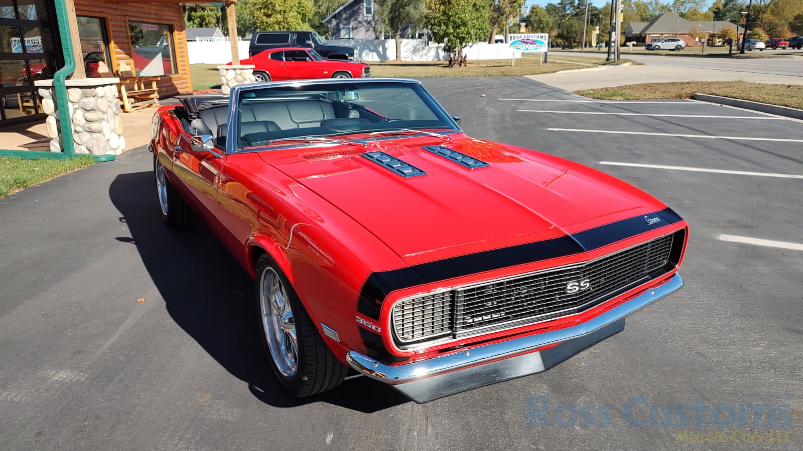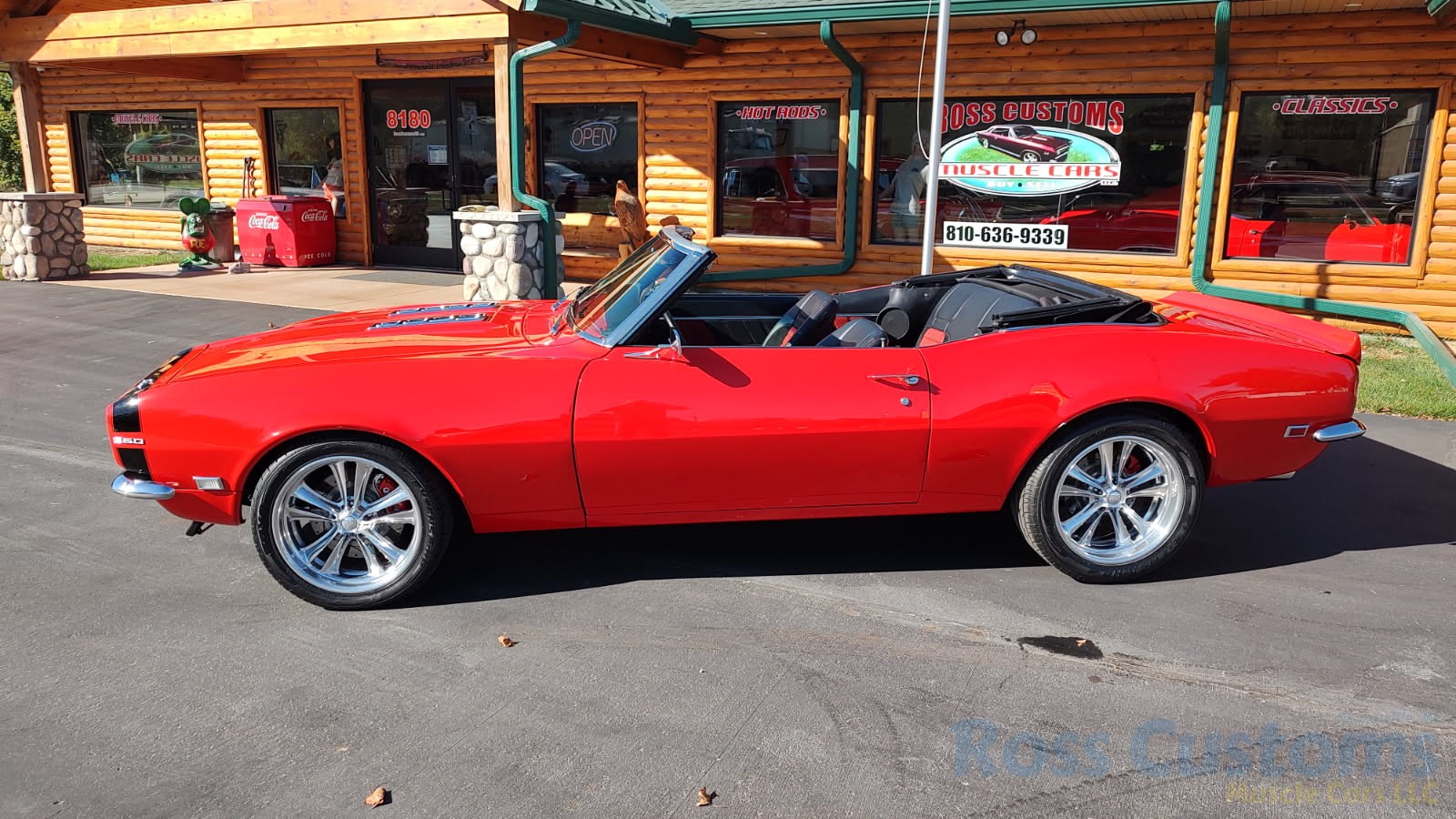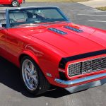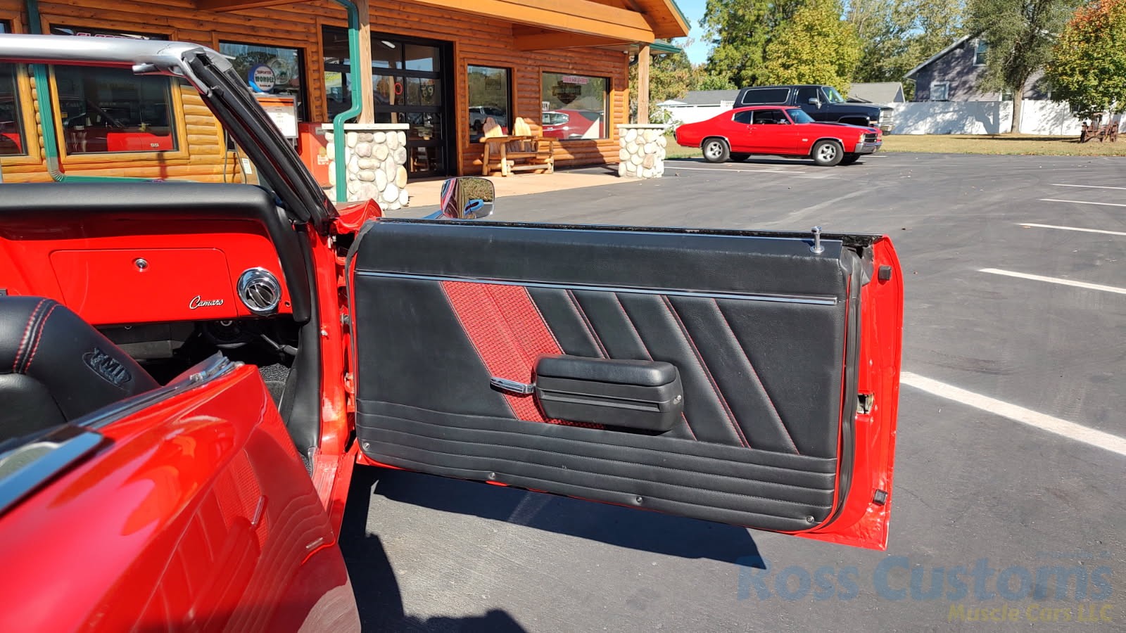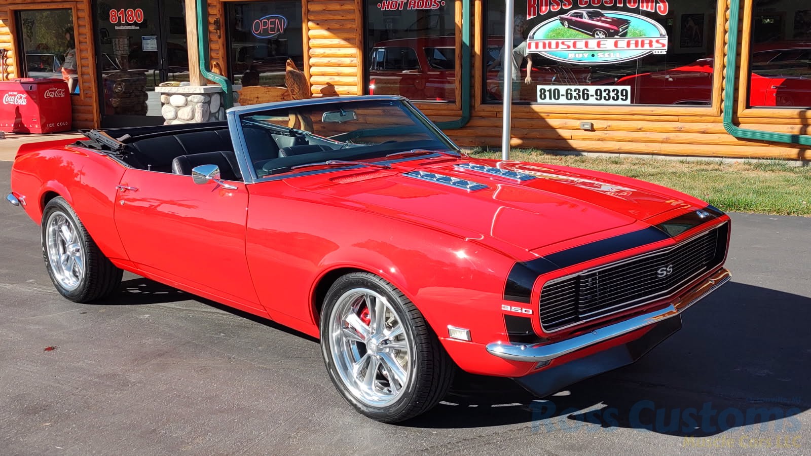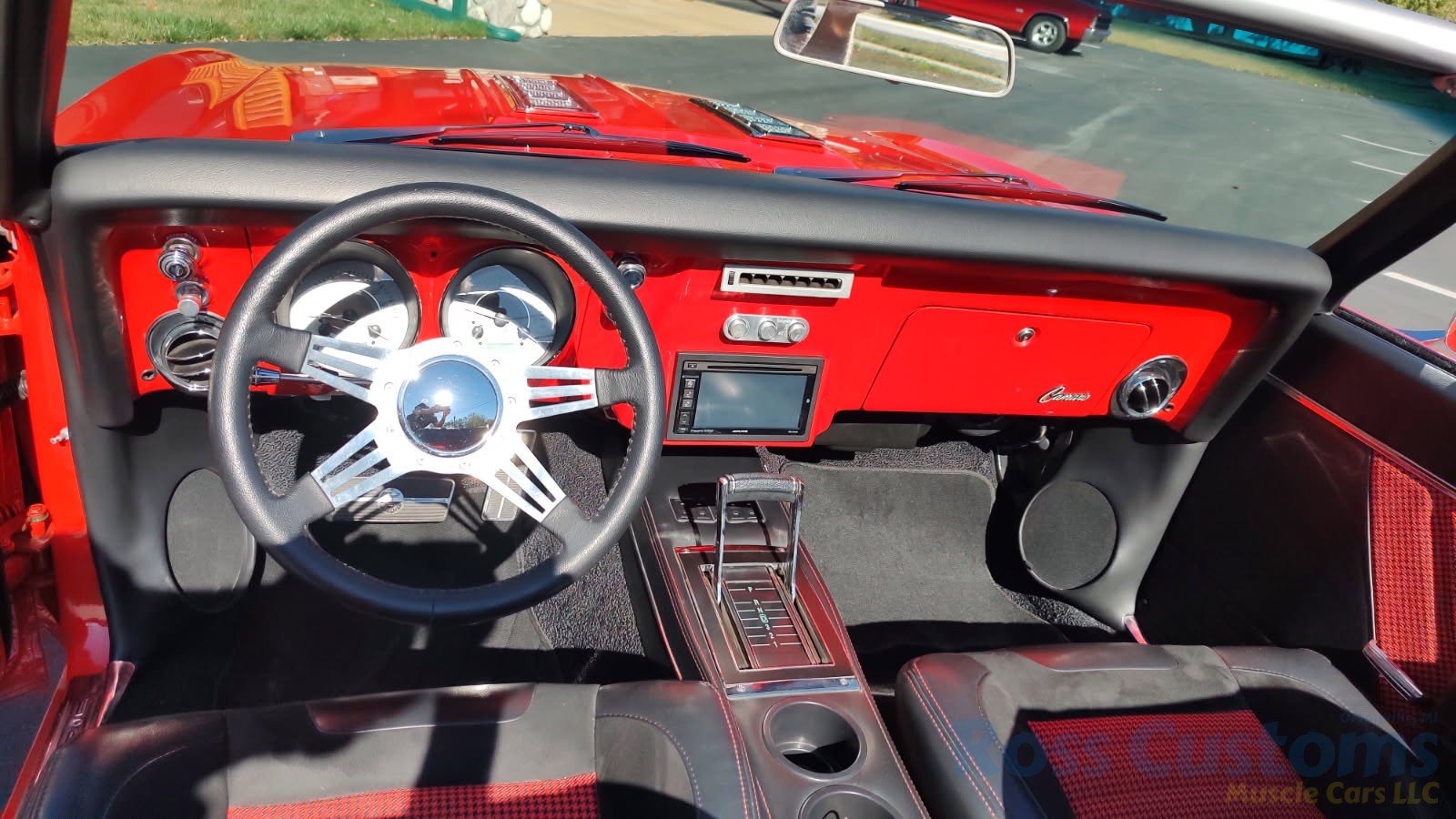 This is a “BAD ASS” 68 Camaro RS/SS Convertible that has had a complete custom build, done in “Show Quality” Torch Red with black bumblebee strip, basecoat clearcoat, sanded and wheeled smooth, slick as glass, new canvas convertible top and new window; which is power, new tinted glass throughout, window stainless and top stainless moldings are original in excellent condition, new weather stripping and window felts, new side view mirrors and door handles, wiper arms look like new, new SS ice cube hood inserts, new grill, headlight doors and grill moldings, updated with Detroit Speed electric headlight doors, re-chromed front bumper, new chin spoiler, new emblems, new side marker bezels, rear deck spoiler, new taillight housings and lens, new backup lights, new SS fuel cap, re-chromed rear bumper.