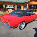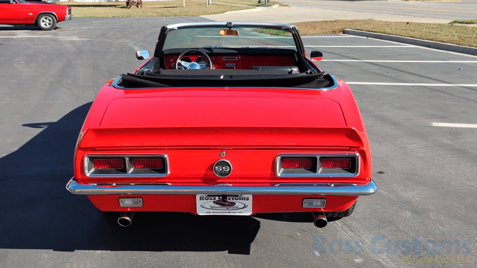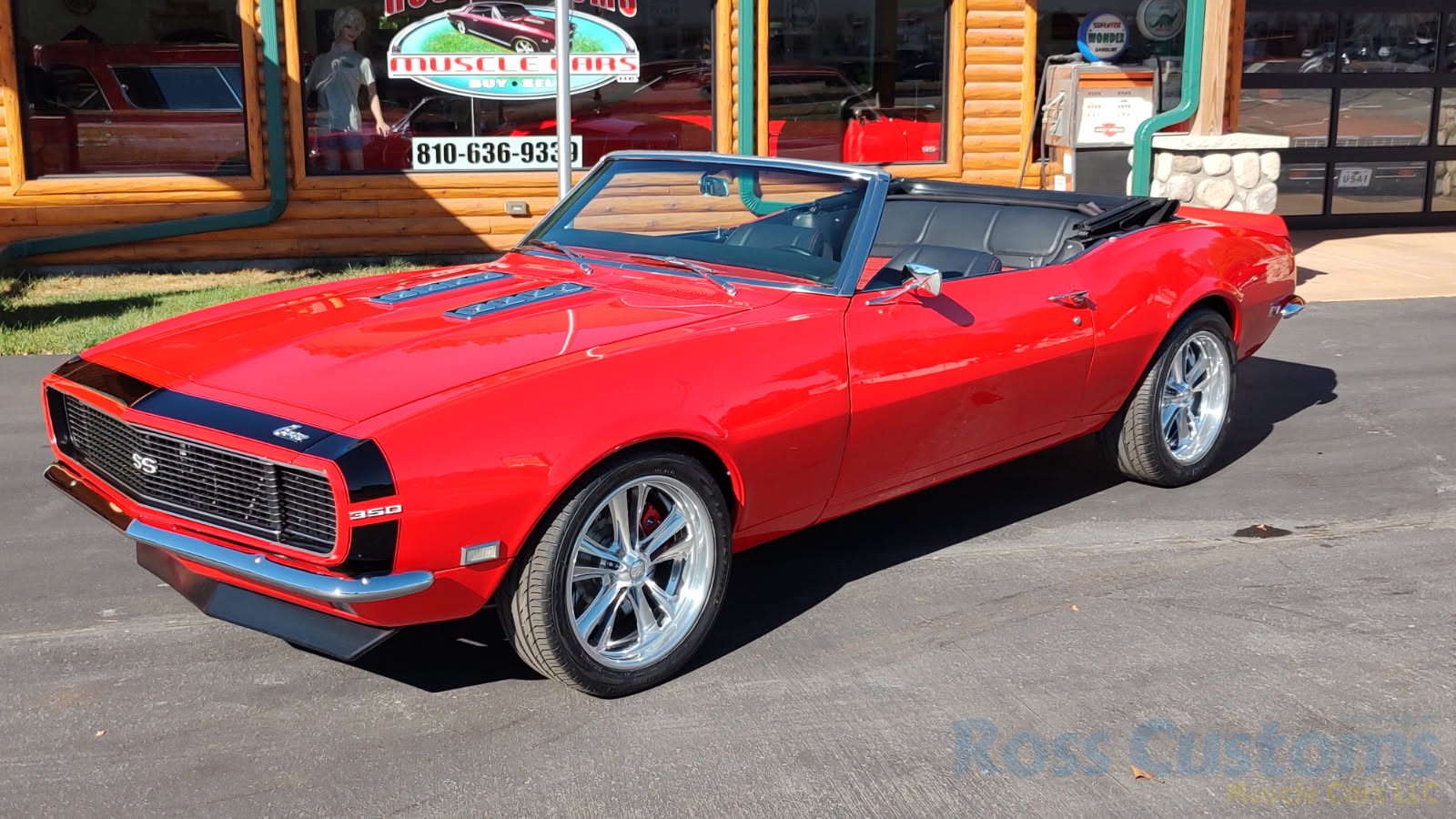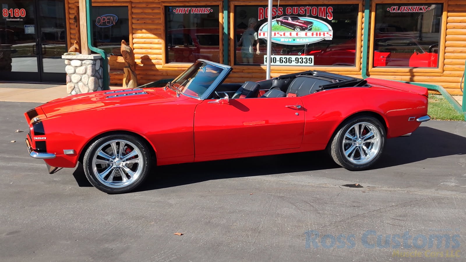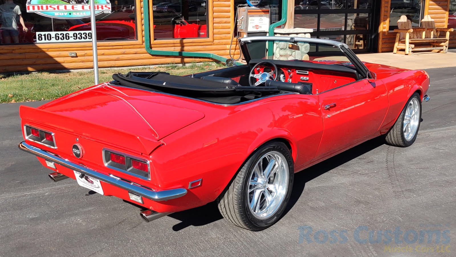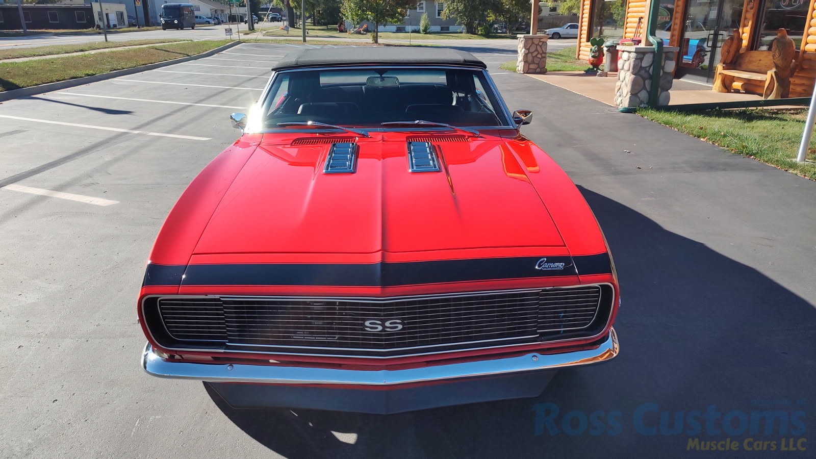 This is a “BAD ASS” 68 Camaro RS/SS Convertible that has had a complete custom build, done in “Show Quality” Torch Red with black bumblebee strip, basecoat clearcoat, sanded and wheeled smooth, slick as glass, new canvas convertible top and new window; which is power, new tinted glass throughout, window stainless and top stainless moldings are original in excellent condition, new weather stripping and window felts, new side view mirrors and door handles, wiper arms look like new, new SS ice cube hood inserts, new grill, headlight doors and grill moldings, updated with Detroit Speed electric headlight doors, re-chromed front bumper, new chin spoiler, new emblems, new side marker bezels, rear deck spoiler, new taillight housings and lens, new backup lights, new SS fuel cap, re-chromed rear bumper.