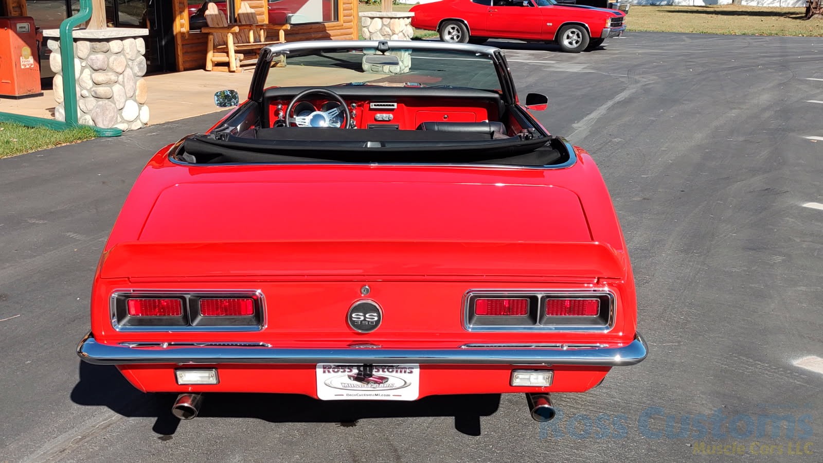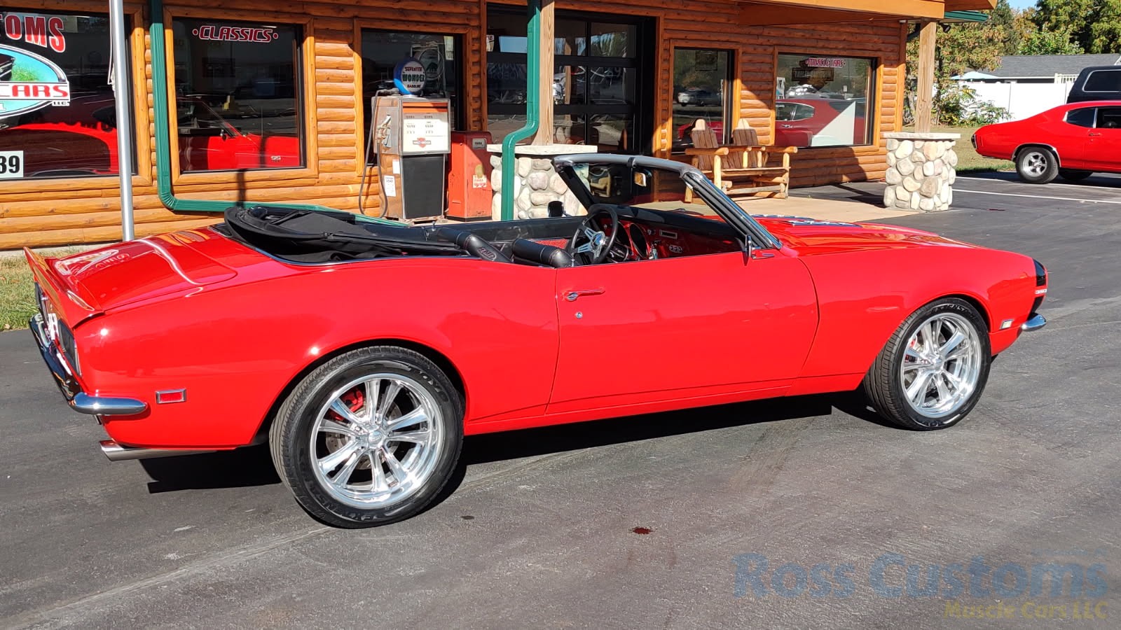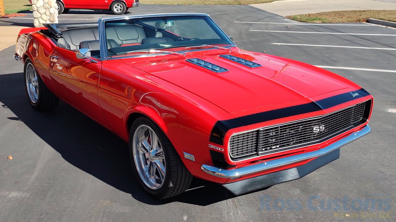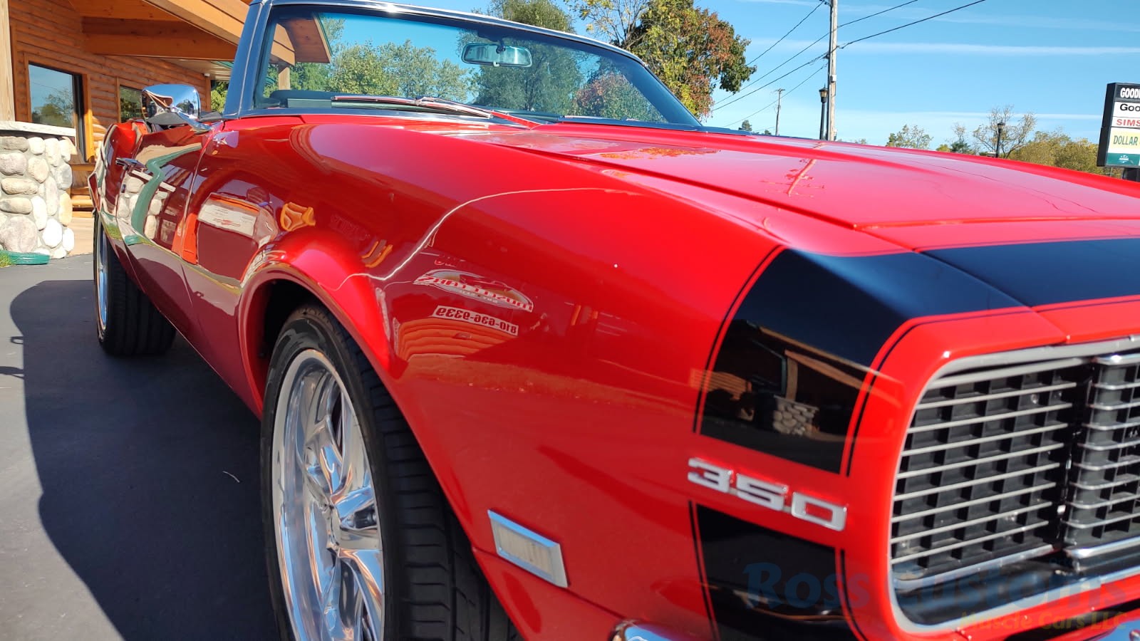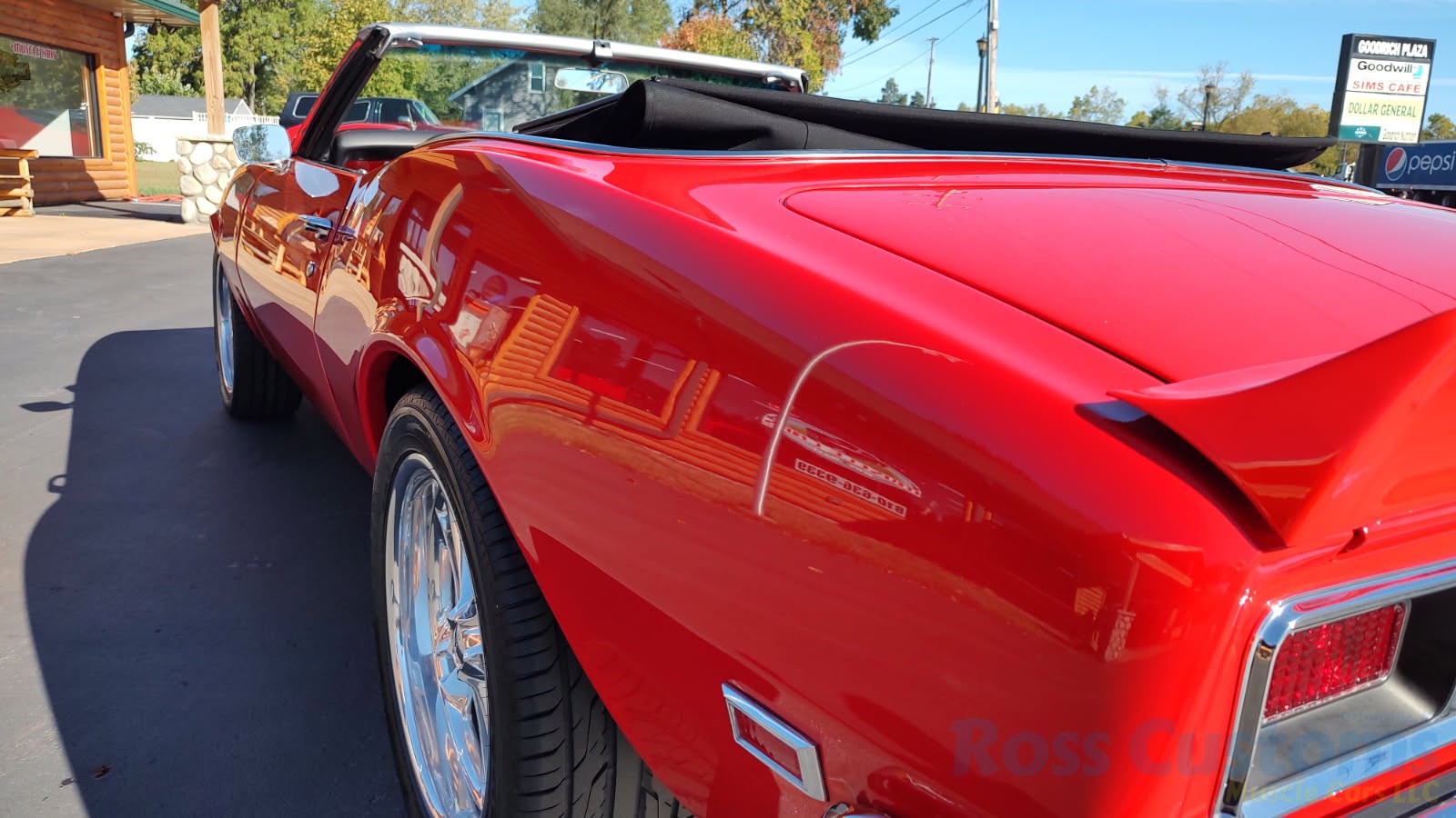 This is a “BAD ASS” 68 Camaro RS/SS Convertible that has had a complete custom build, done in “Show Quality” Torch Red with black bumblebee strip, basecoat clearcoat, sanded and wheeled smooth, slick as glass, new canvas convertible top and new window; which is power, new tinted glass throughout, window stainless and top stainless moldings are original in excellent condition, new weather stripping and window felts, new side view mirrors and door handles, wiper arms look like new, new SS ice cube hood inserts, new grill, headlight doors and grill moldings, updated with Detroit Speed electric headlight doors, re-chromed front bumper, new chin spoiler, new emblems, new side marker bezels, rear deck spoiler, new taillight housings and lens, new backup lights, new SS fuel cap, re-chromed rear bumper.