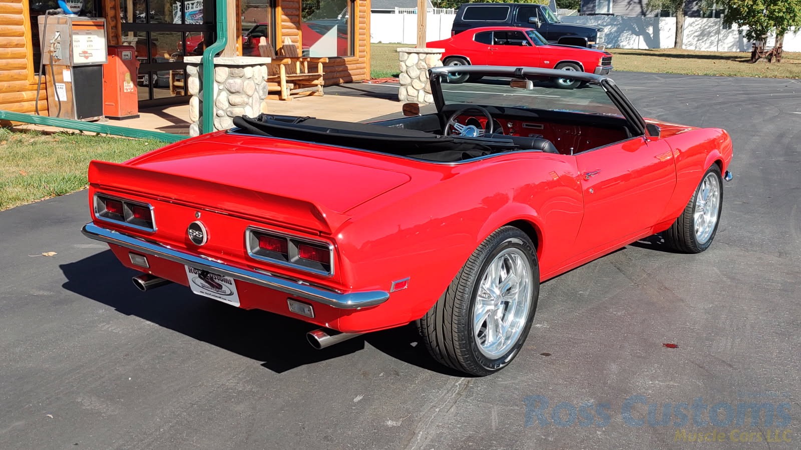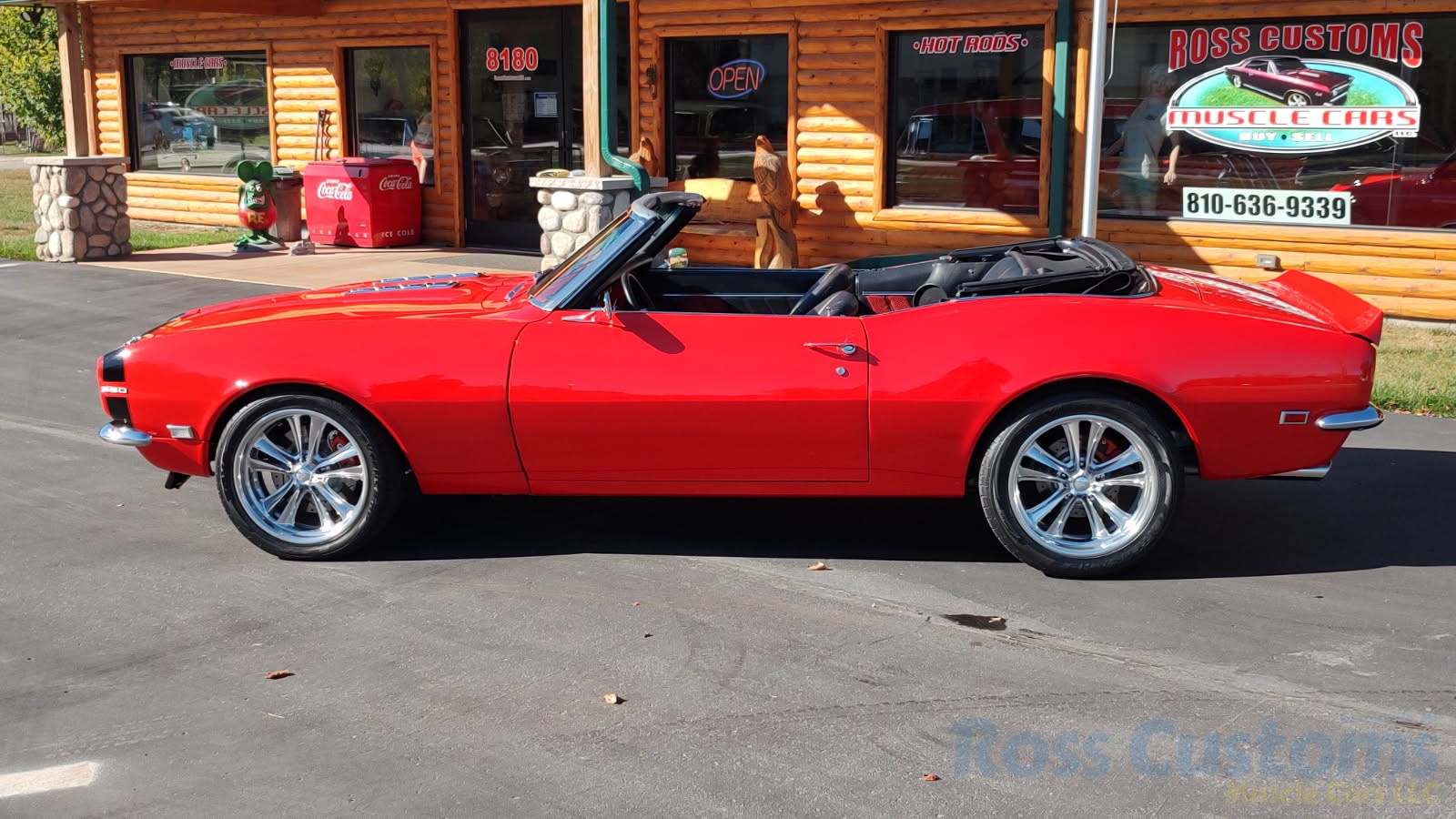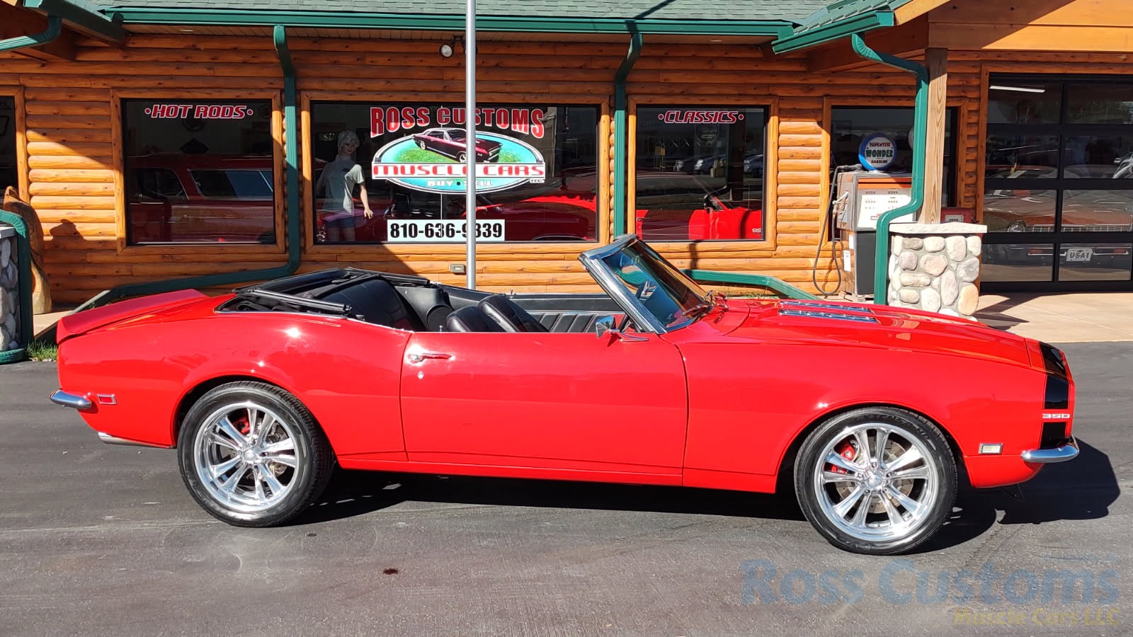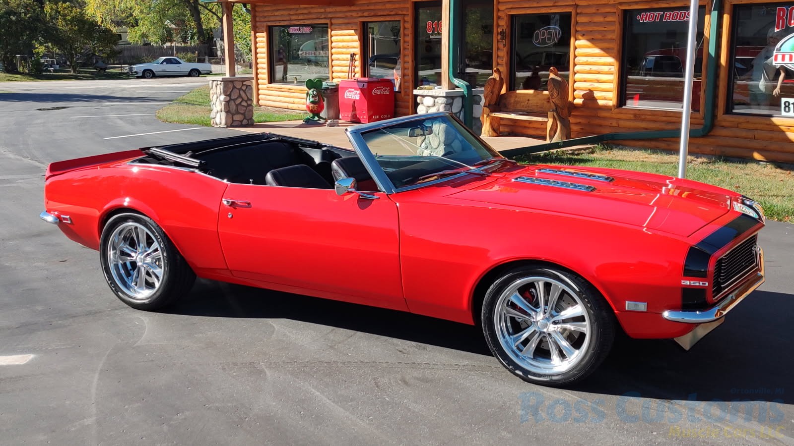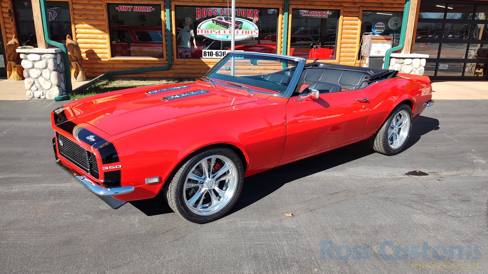 This is a “BAD ASS” 68 Camaro RS/SS Convertible that has had a complete custom build, done in “Show Quality” Torch Red with black bumblebee strip, basecoat clearcoat, sanded and wheeled smooth, slick as glass, new canvas convertible top and new window; which is power, new tinted glass throughout, window stainless and top stainless moldings are original in excellent condition, new weather stripping and window felts, new side view mirrors and door handles, wiper arms look like new, new SS ice cube hood inserts, new grill, headlight doors and grill moldings, updated with Detroit Speed electric headlight doors, re-chromed front bumper, new chin spoiler, new emblems, new side marker bezels, rear deck spoiler, new taillight housings and lens, new backup lights, new SS fuel cap, re-chromed rear bumper.