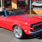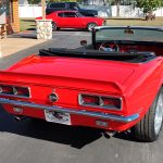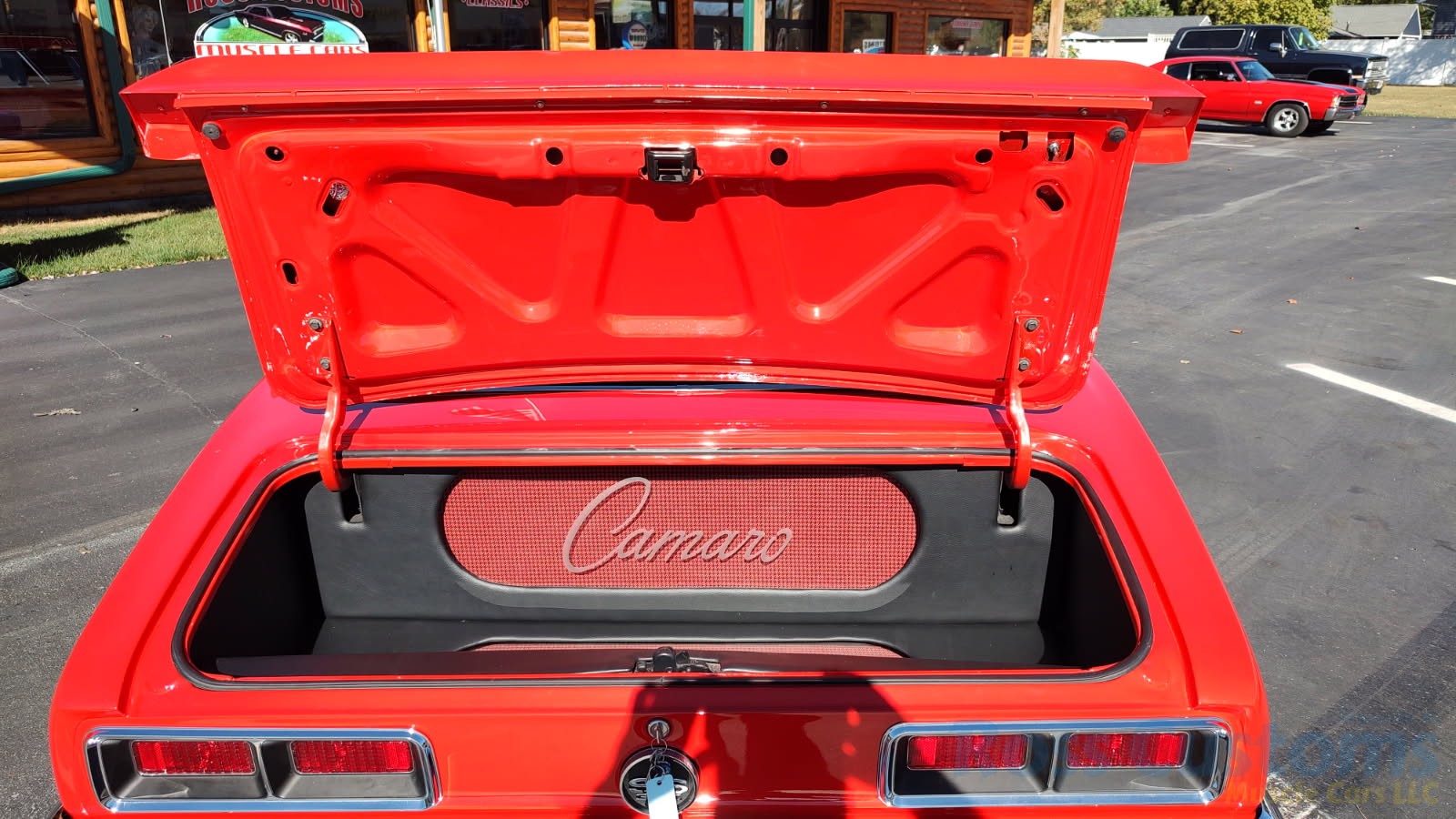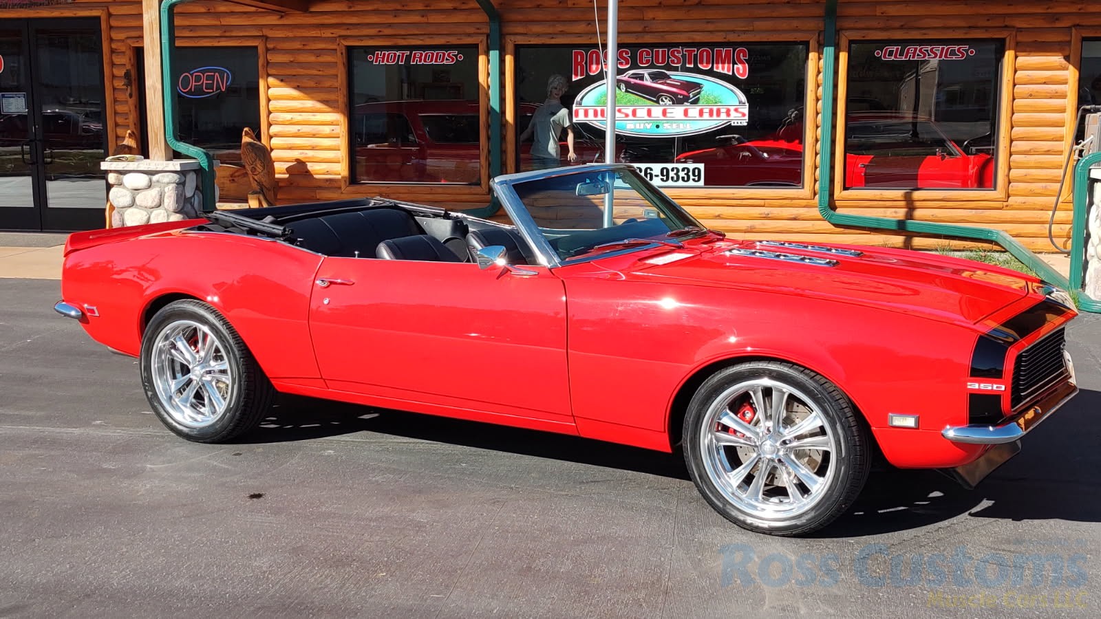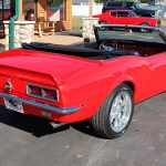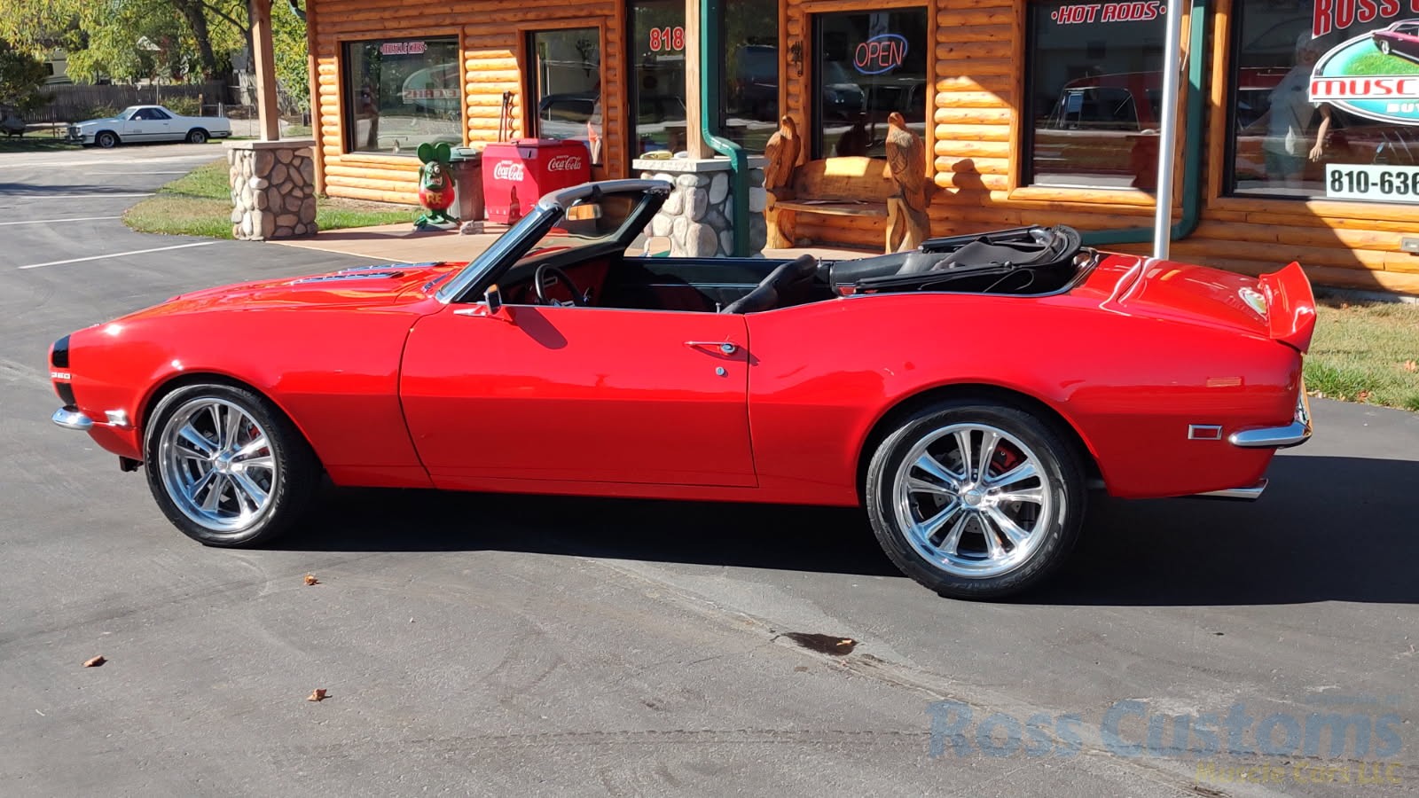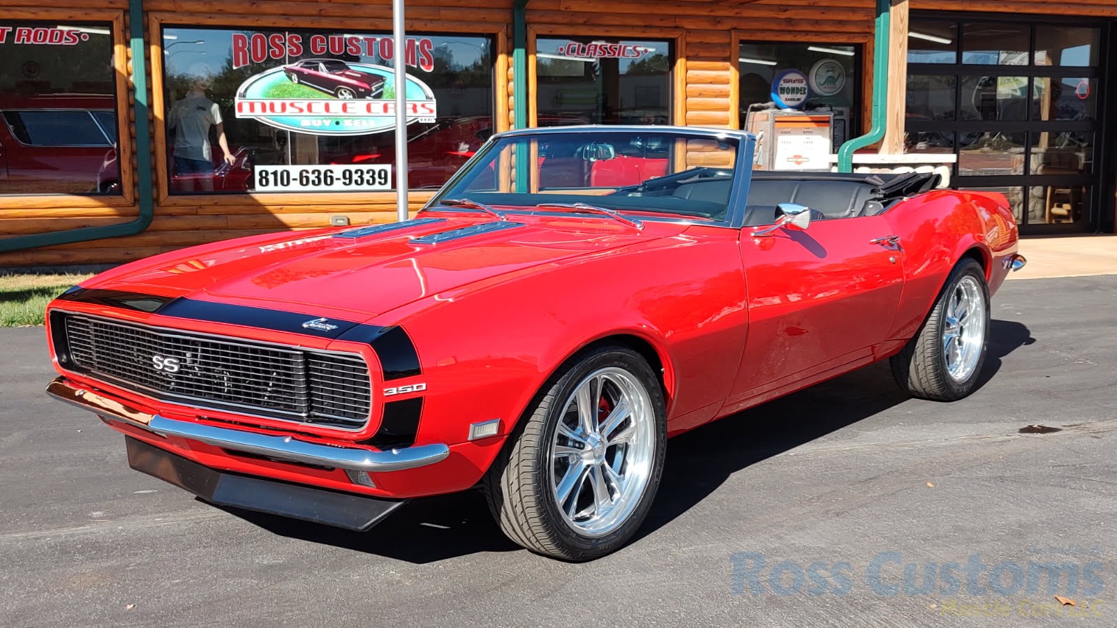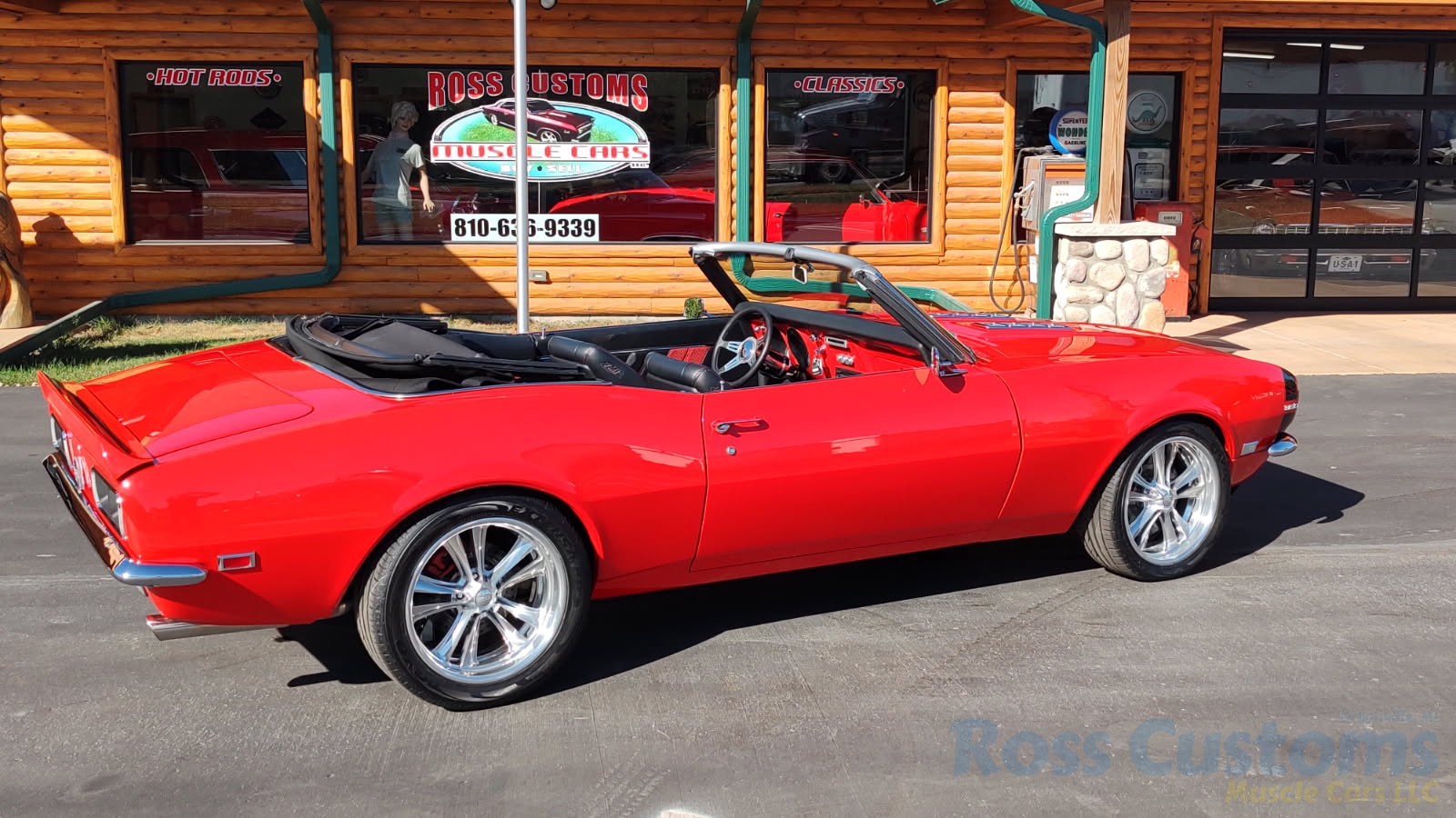This is a “BAD ASS” 68 Camaro RS/SS Convertible that has had a complete custom build, done in “Show Quality” Torch Red with black bumblebee strip, basecoat clearcoat, sanded and wheeled smooth, slick as glass, new canvas convertible top and new window; which is power, new tinted glass throughout, window stainless and top stainless moldings are original in excellent condition, new weather stripping and window felts, new side view mirrors and door handles, wiper arms look like new, new SS ice cube hood inserts, new grill, headlight doors and grill moldings, updated with Detroit Speed electric headlight doors, re-chromed front bumper, new chin spoiler, new emblems, new side marker bezels, rear deck spoiler, new taillight housings and lens, new backup lights, new SS fuel cap, re-chromed rear bumper.
