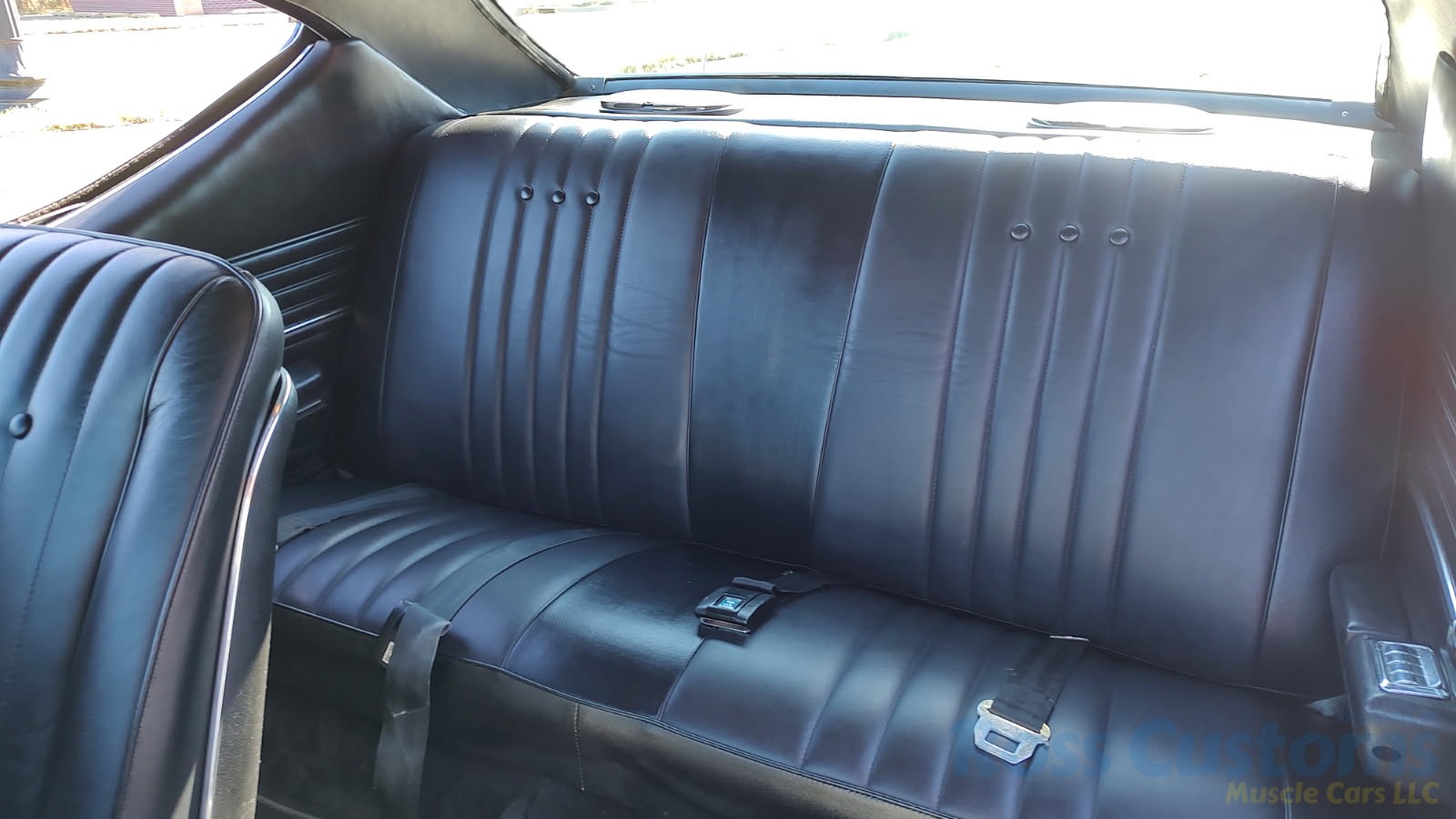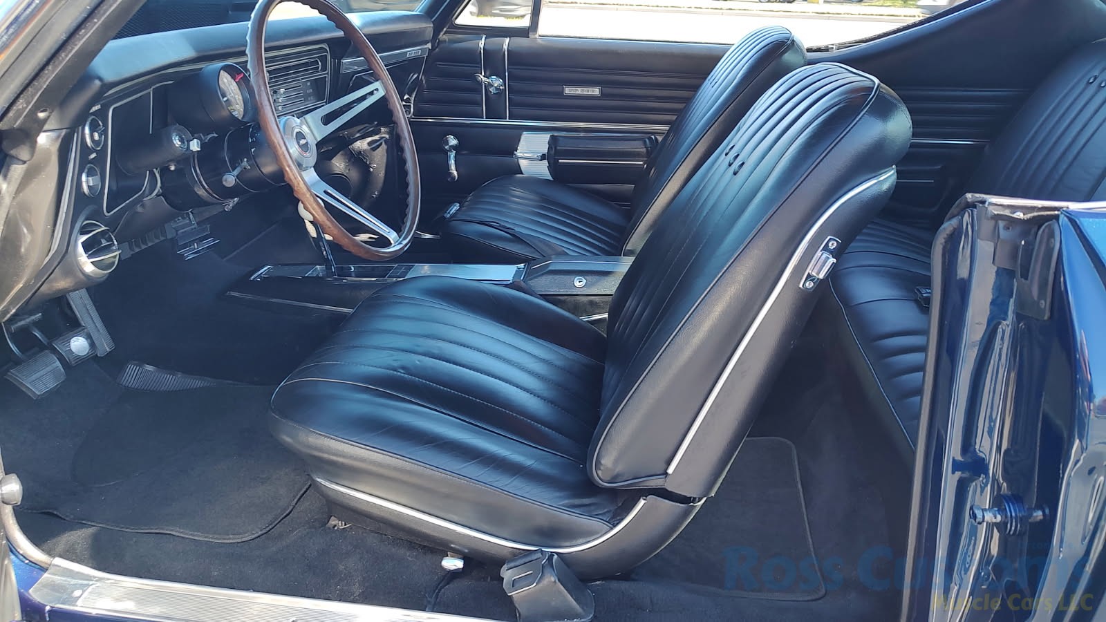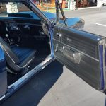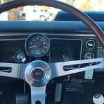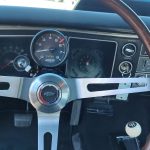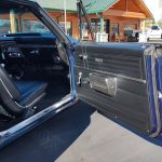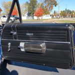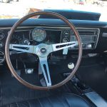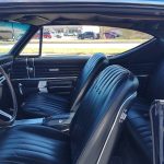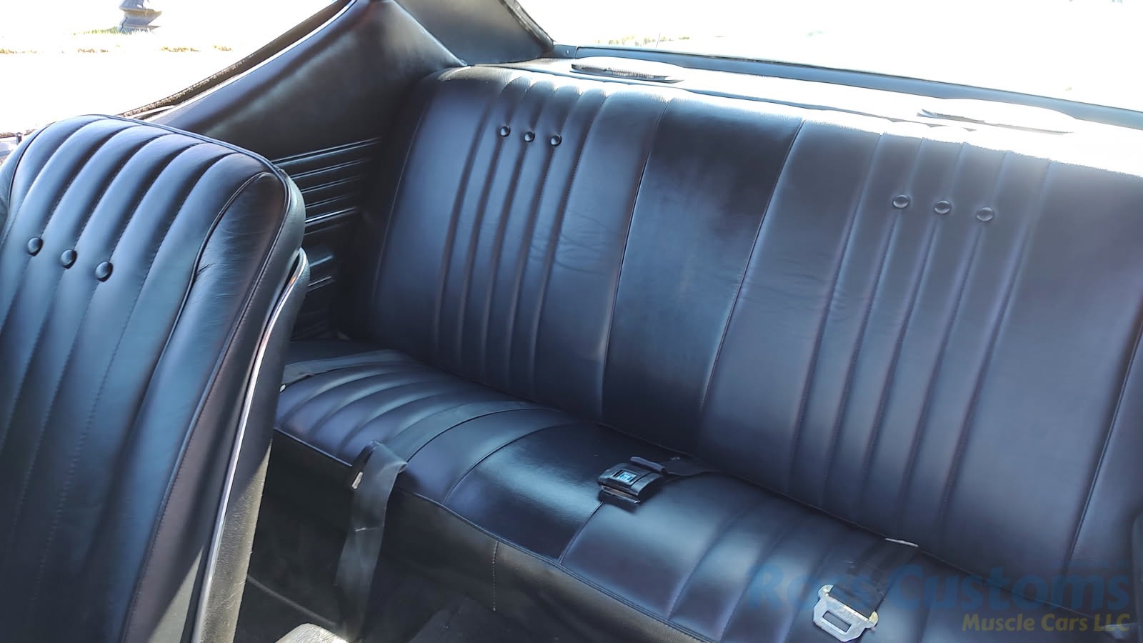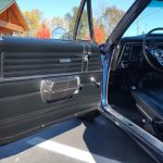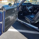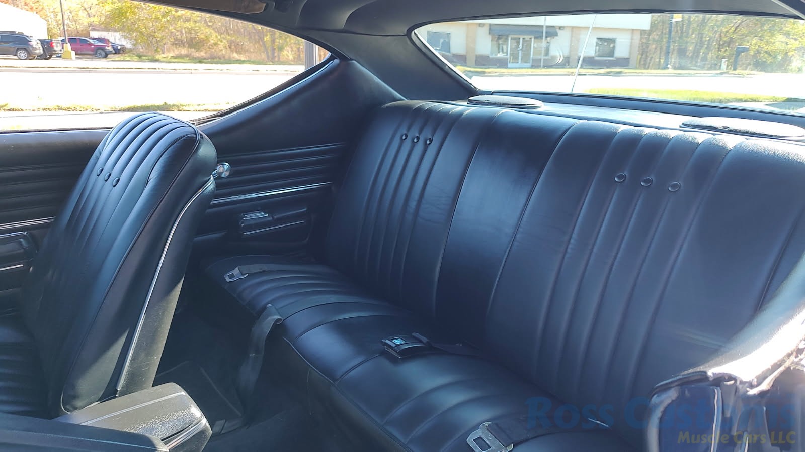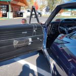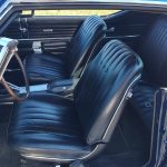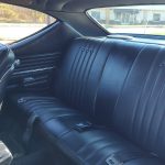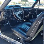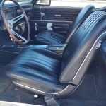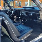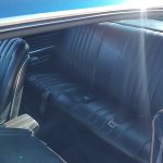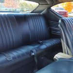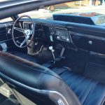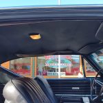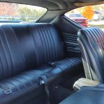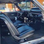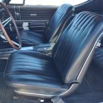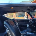Factory black interior, factory dash in very good condition, factory gauge package with roller tach, updated with tach and shift light mounted to column which is more visible, factory AM/FM radio which has been disconnected – has AM/FM/CD stereo with remote nicely mounted in glovebox, front and rear speakers, new headliner, new front and rear door panels, new arm rest and bases, new front and rear seat covers, factory front and rear seatbelts, original center console in very good condition, new carpet, deluxe floor mats and sill plates.