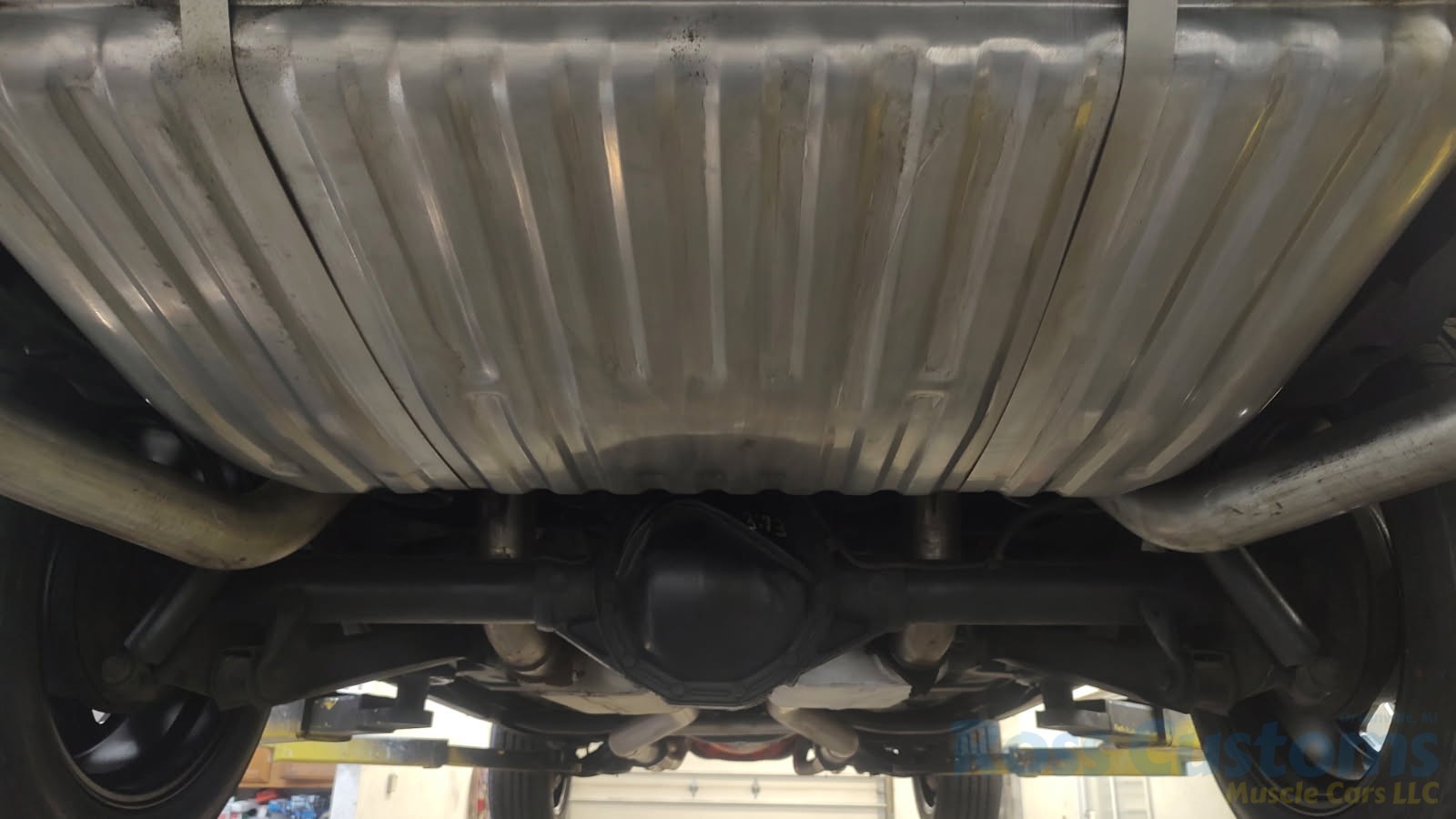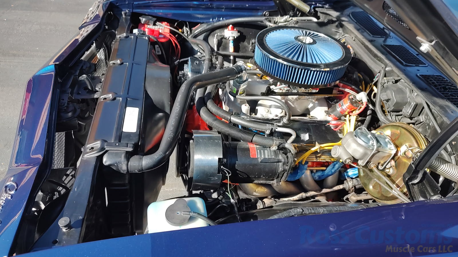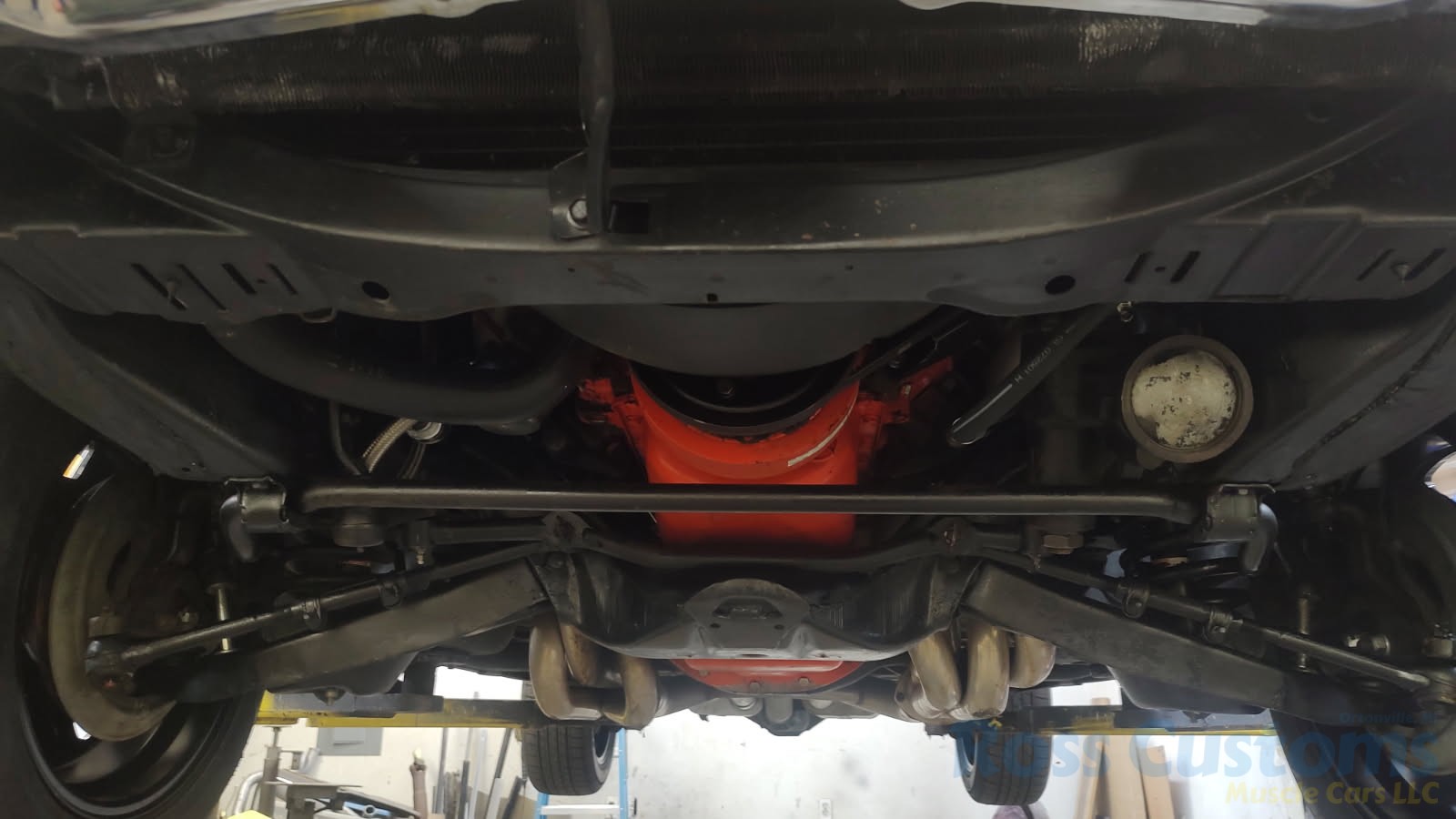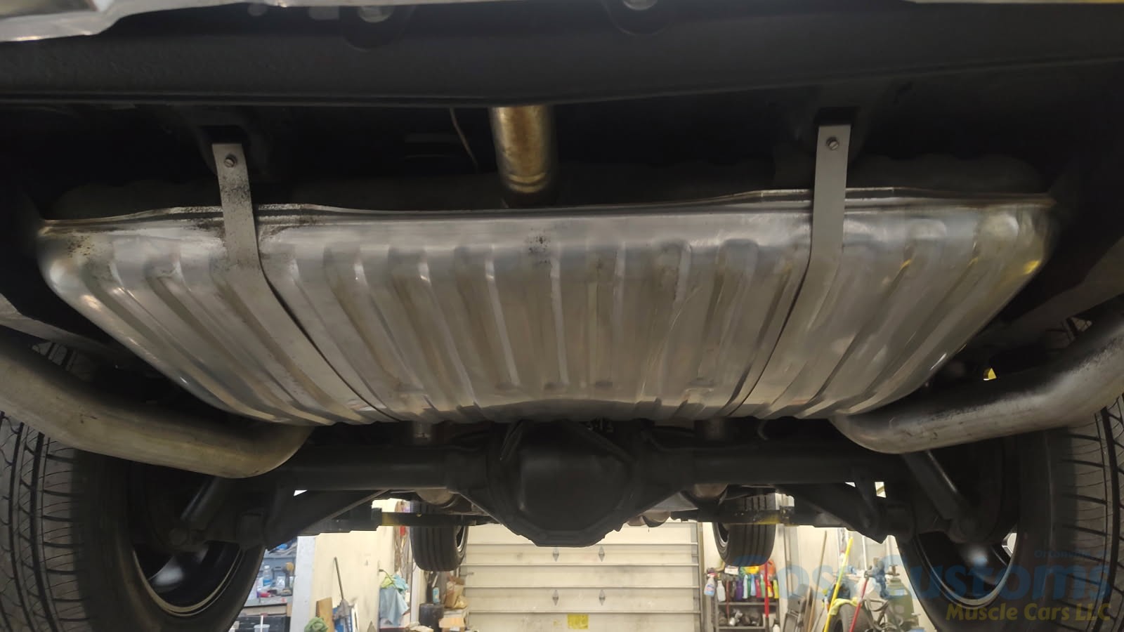 Under the hood the original motor has been replaced with a rebuilt 454 approximately 450 horse, Edelbrock AirGap aluminum intake, Brawler dual feed carb, full MSD ignition with 6AL box and billet distributor, chrome valve covers, K&N breather, updated with 100 amp 1 wire alternator, heavy duty radiator with correct shroud and 7 blade clutch fan, factory AC, power steering, power front disc brakes, set of Hooker ceramic coated long tube headers into 3 inch dual Flowmaster exhaust out the back, this strong running 454 is backed up with a A833 Chrysler Hemi 4 speed with Hurst Competition Plus shifter, 12 bolt posi rear with 373 gear, Hotchkis adjustable upper control arms, boxes lower control arms, Hotchkis front and rear springs, new fuel tank and sending unit.