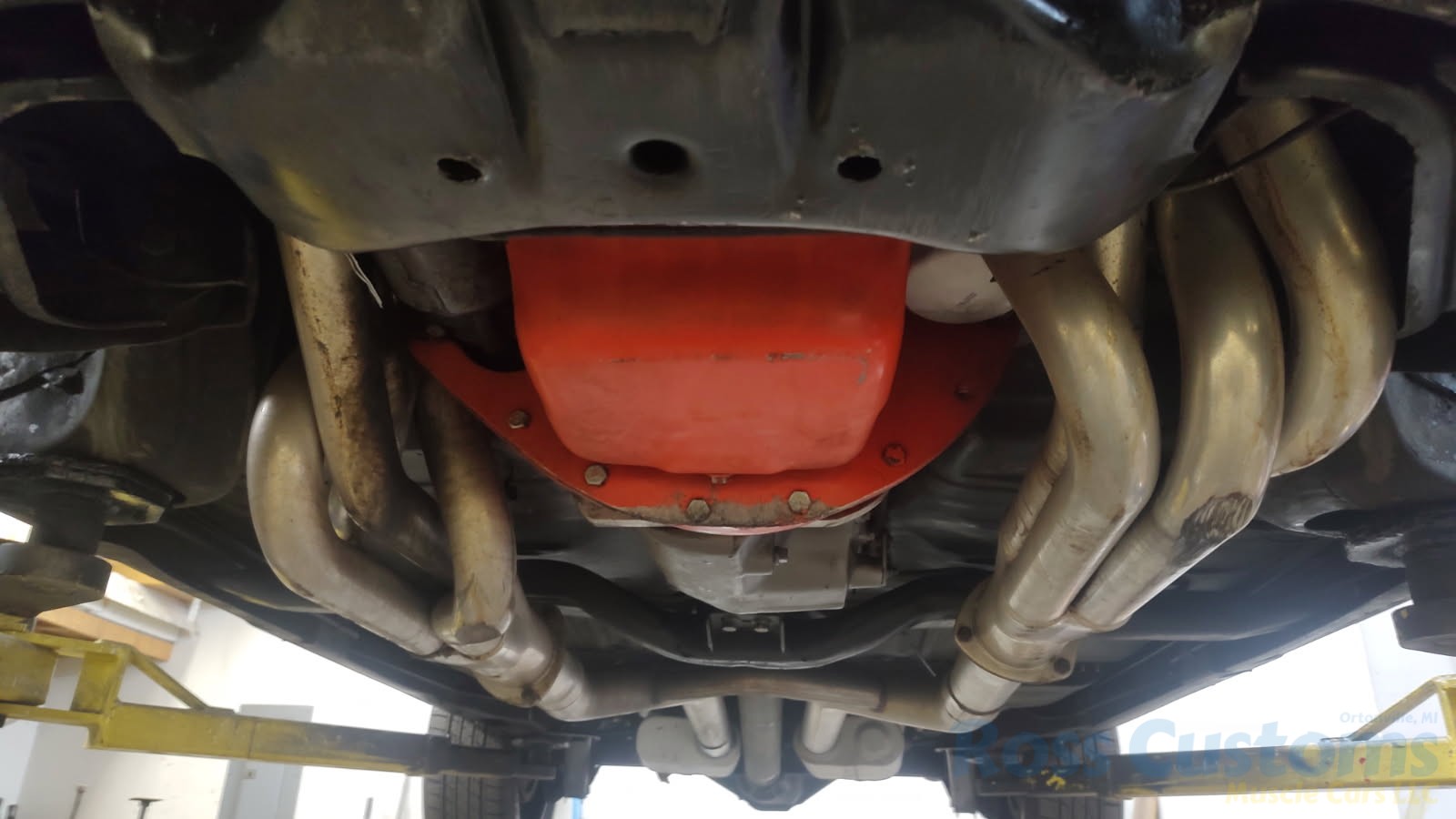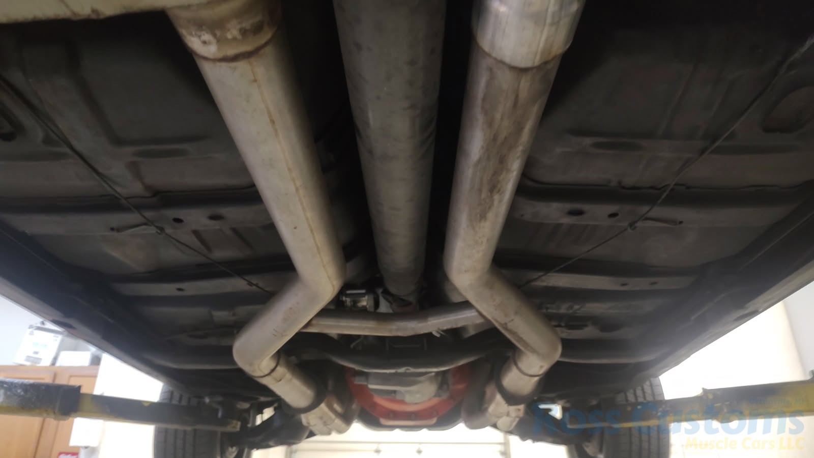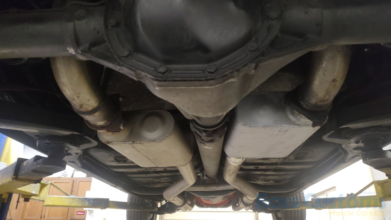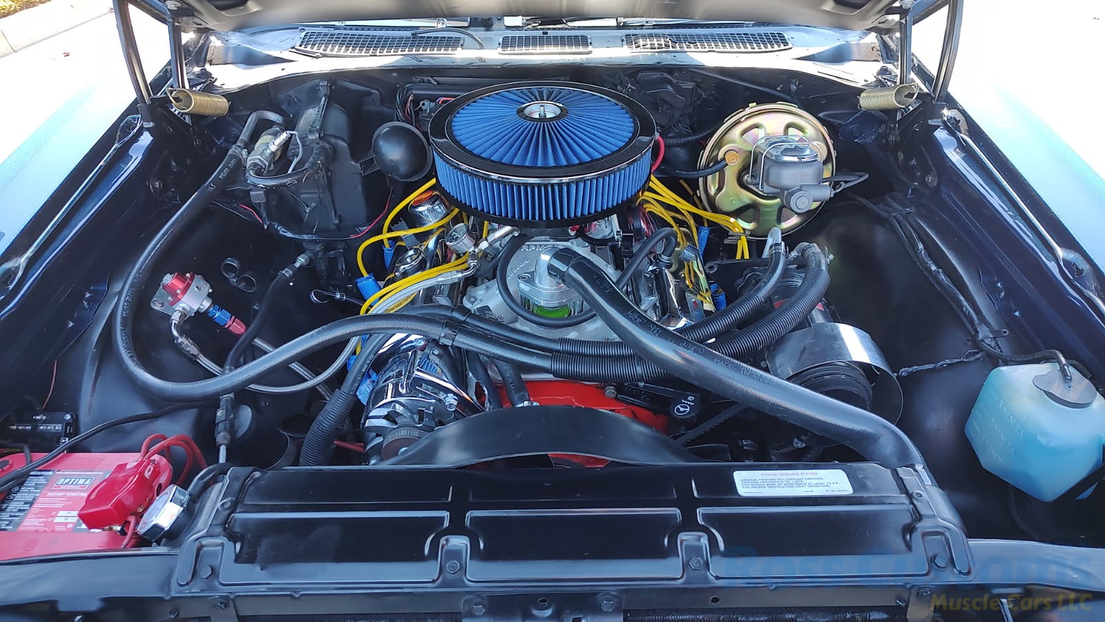Under the hood the original motor has been replaced with a rebuilt 454 approximately 450 horse, Edelbrock AirGap aluminum intake, Brawler dual feed carb, full MSD ignition with 6AL box and billet distributor, chrome valve covers, K&N breather, updated with 100 amp 1 wire alternator, heavy duty radiator with correct shroud and 7 blade clutch fan, factory AC, power steering, power front disc brakes, set of Hooker ceramic coated long tube headers into 3 inch dual Flowmaster exhaust out the back, this strong running 454 is backed up with a A833 Chrysler Hemi 4 speed with Hurst Competition Plus shifter, 12 bolt posi rear with 373 gear, Hotchkis adjustable upper control arms, boxes lower control arms, Hotchkis front and rear springs, new fuel tank and sending unit.
