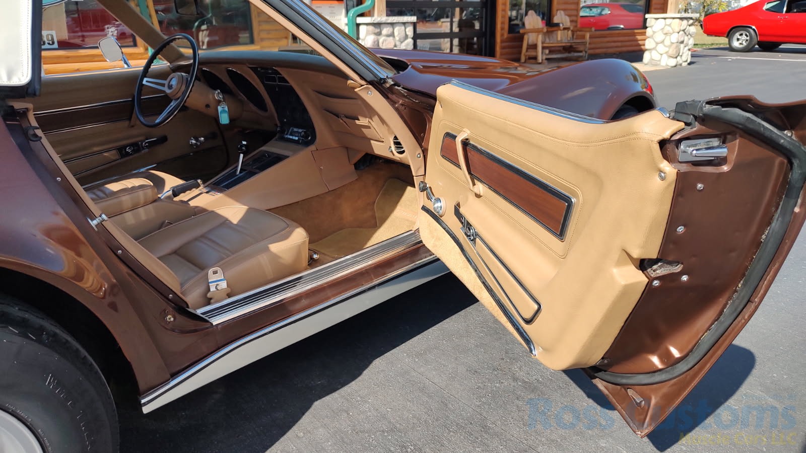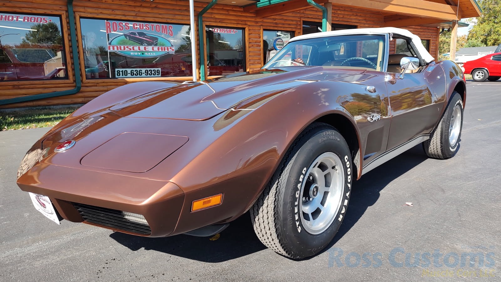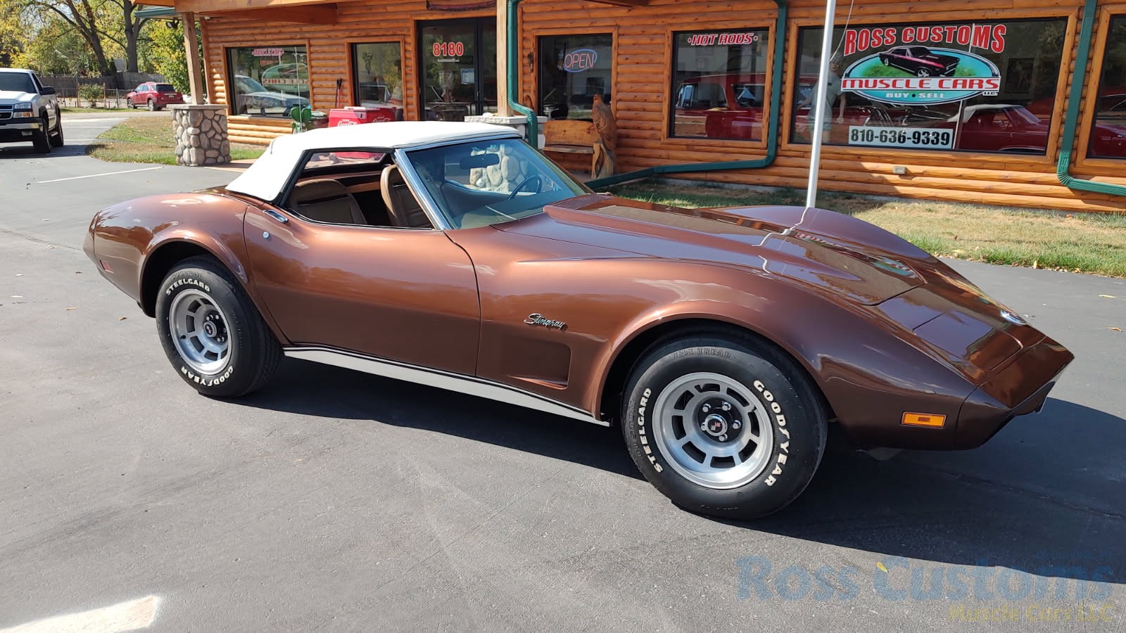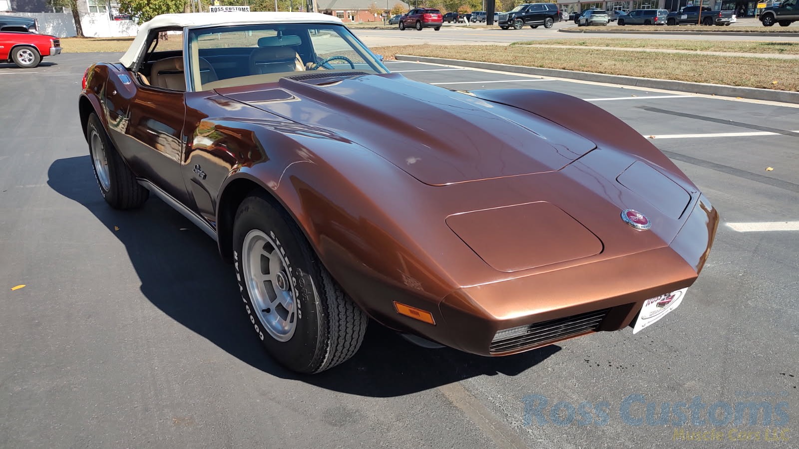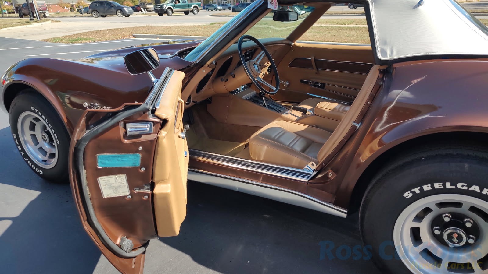 This is a very nice 2 owner 74 Corvette; past owner has owned for 40 years, 52,000 miles, has several NCRS awards, original condition, has had 1 very nice correct NCRS repaint its original factory Coco Brown Metallic, factory hardtop; as well as white convertible top – as seen in photos, convertible top is in excellent condition, original factory glass in excellent condition, original stainless in excellent condition, original window felts in excellent condition, weather stripping appears be have been replaced, original side view mirror in excellent condition, original emblems; as well as rocker moldings and taillights.