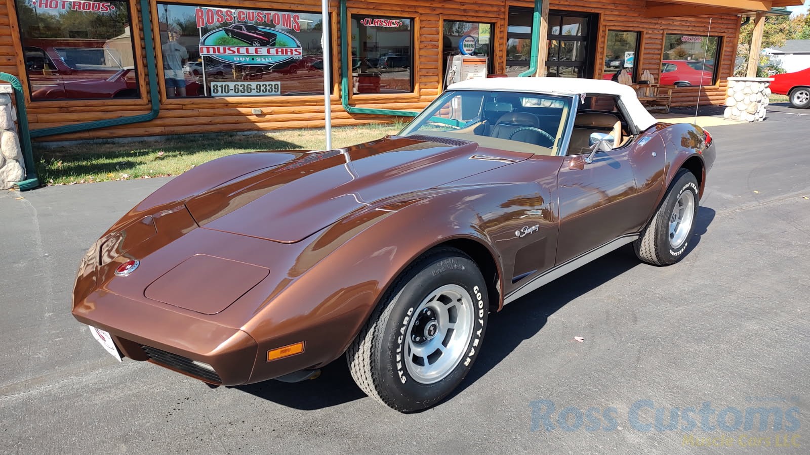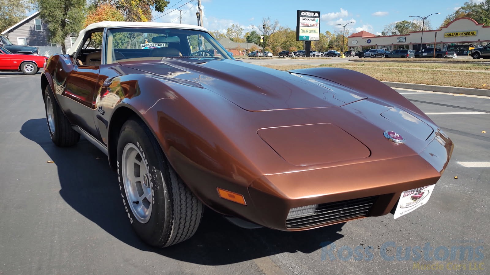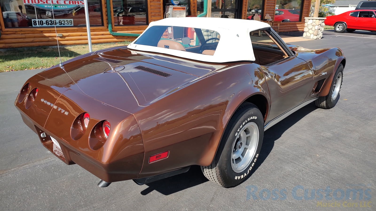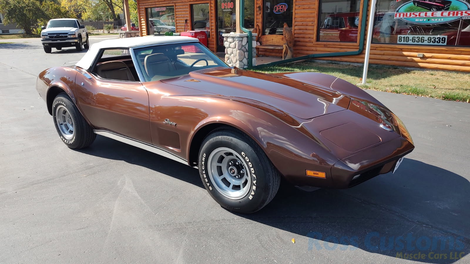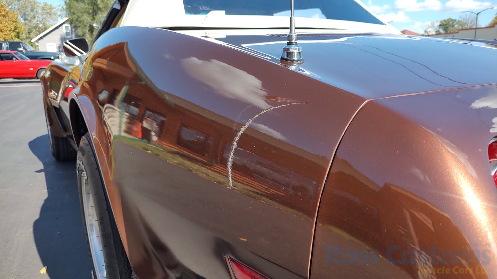 This is a very nice 2 owner 74 Corvette; past owner has owned for 40 years, 52,000 miles, has several NCRS awards, original condition, has had 1 very nice correct NCRS repaint its original factory Coco Brown Metallic, factory hardtop; as well as white convertible top – as seen in photos, convertible top is in excellent condition, original factory glass in excellent condition, original stainless in excellent condition, original window felts in excellent condition, weather stripping appears be have been replaced, original side view mirror in excellent condition, original emblems; as well as rocker moldings and taillights.