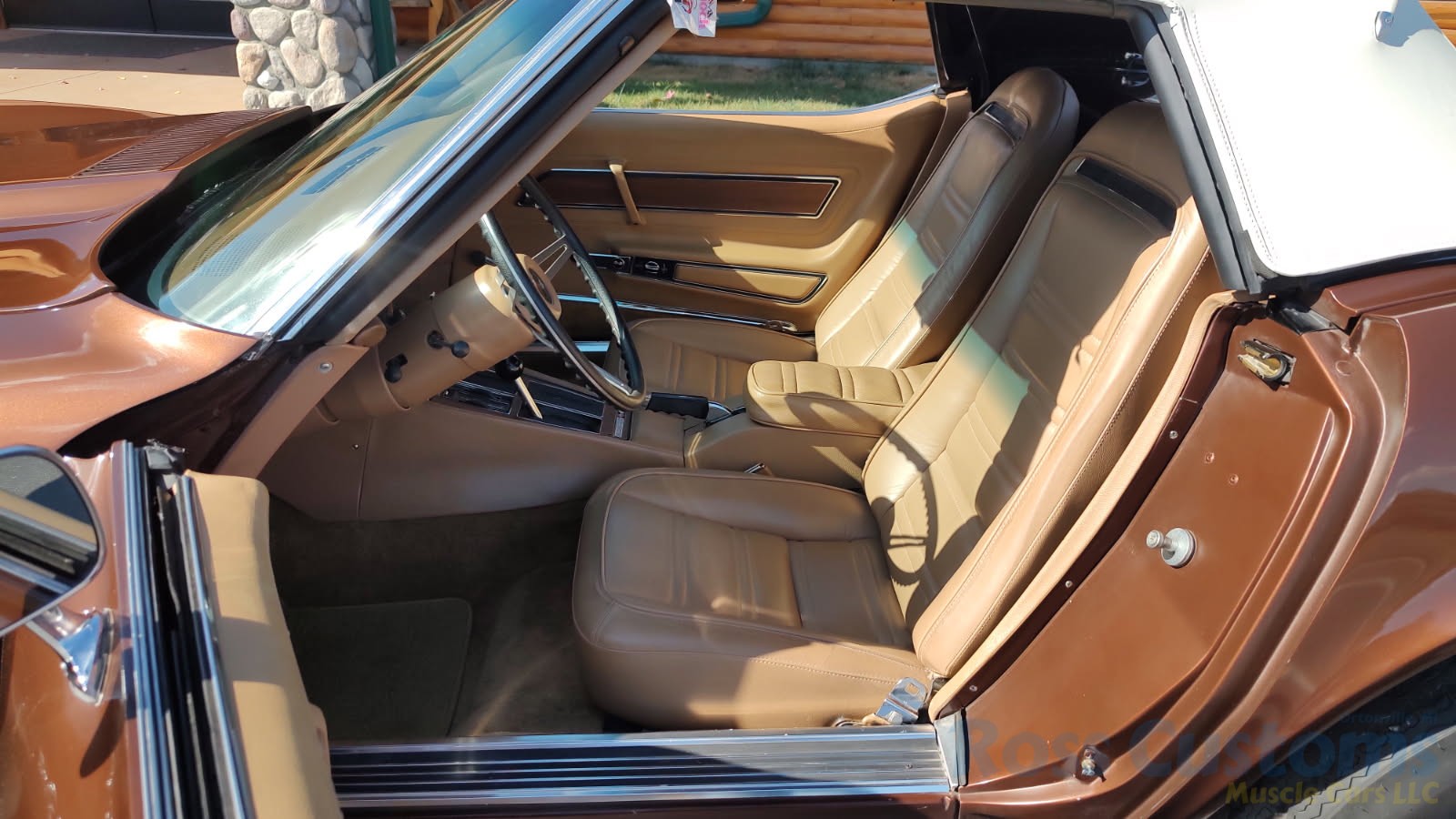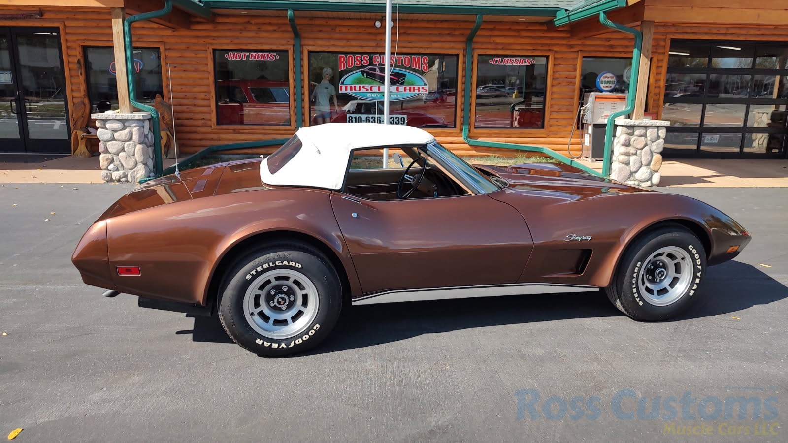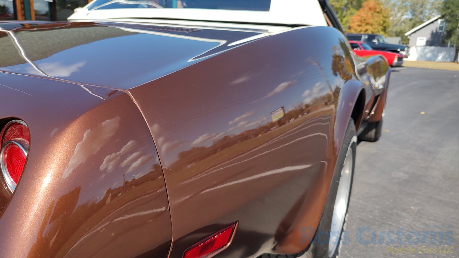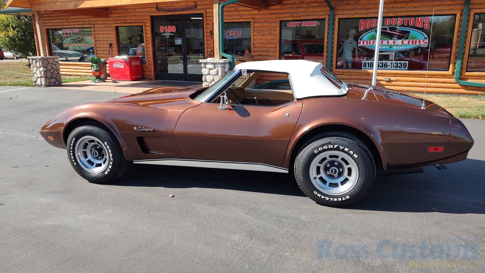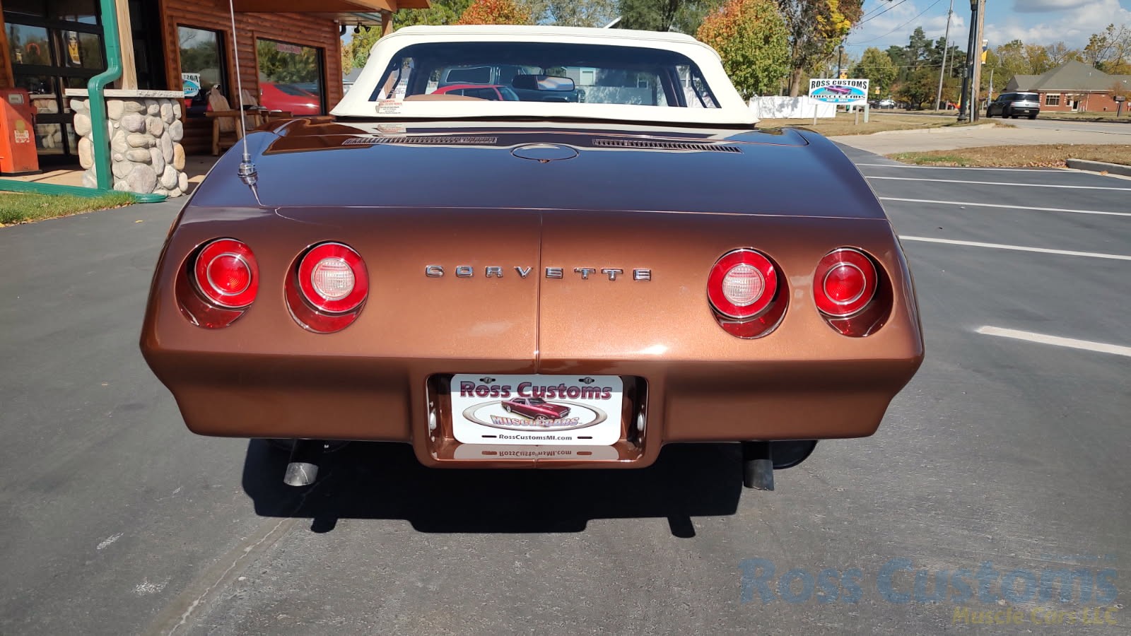 This is a very nice 2 owner 74 Corvette; past owner has owned for 40 years, 52,000 miles, has several NCRS awards, original condition, has had 1 very nice correct NCRS repaint its original factory Coco Brown Metallic, factory hardtop; as well as white convertible top – as seen in photos, convertible top is in excellent condition, original factory glass in excellent condition, original stainless in excellent condition, original window felts in excellent condition, weather stripping appears be have been replaced, original side view mirror in excellent condition, original emblems; as well as rocker moldings and taillights.
