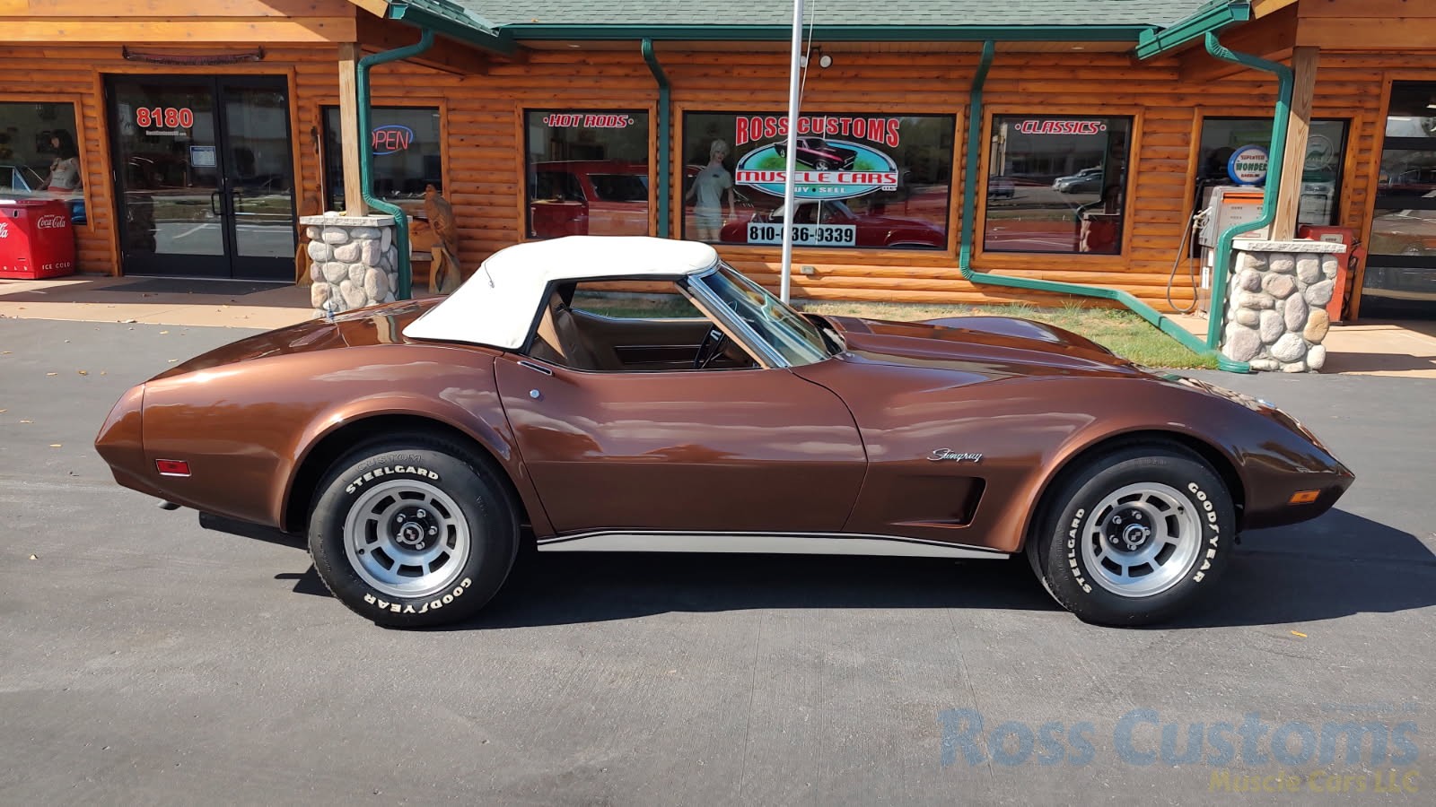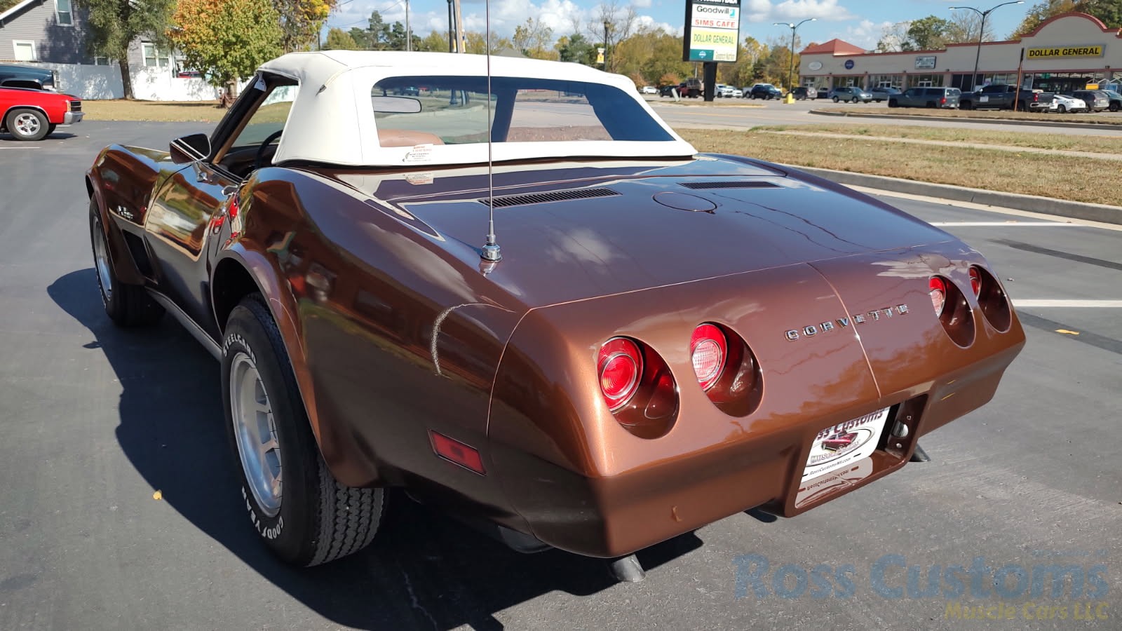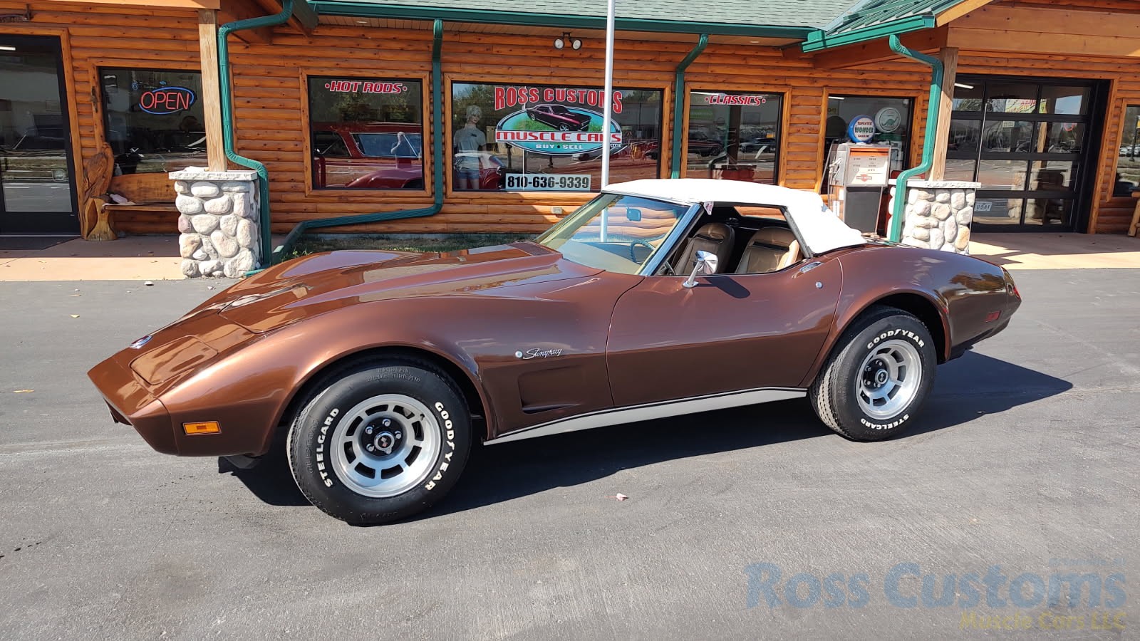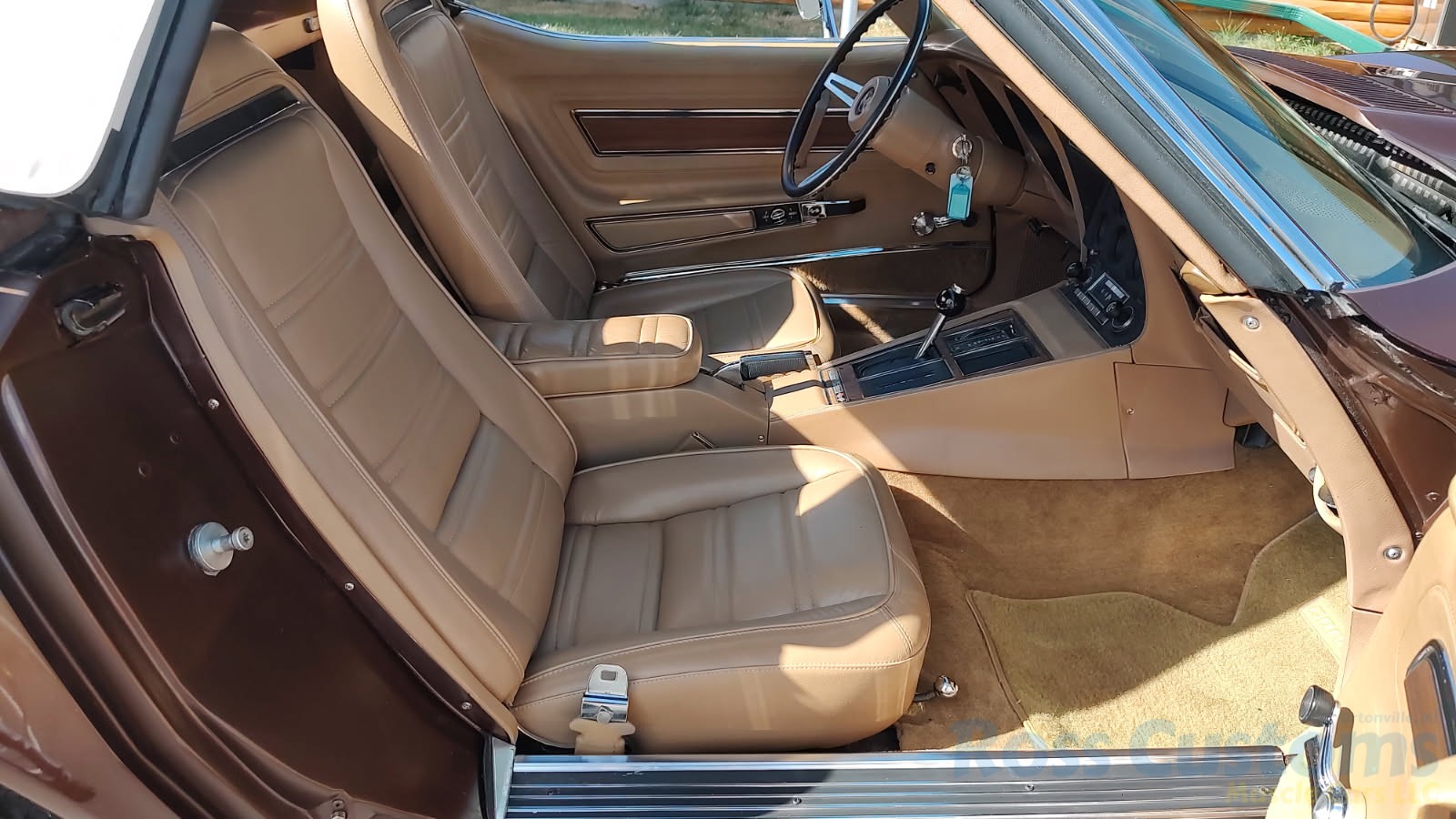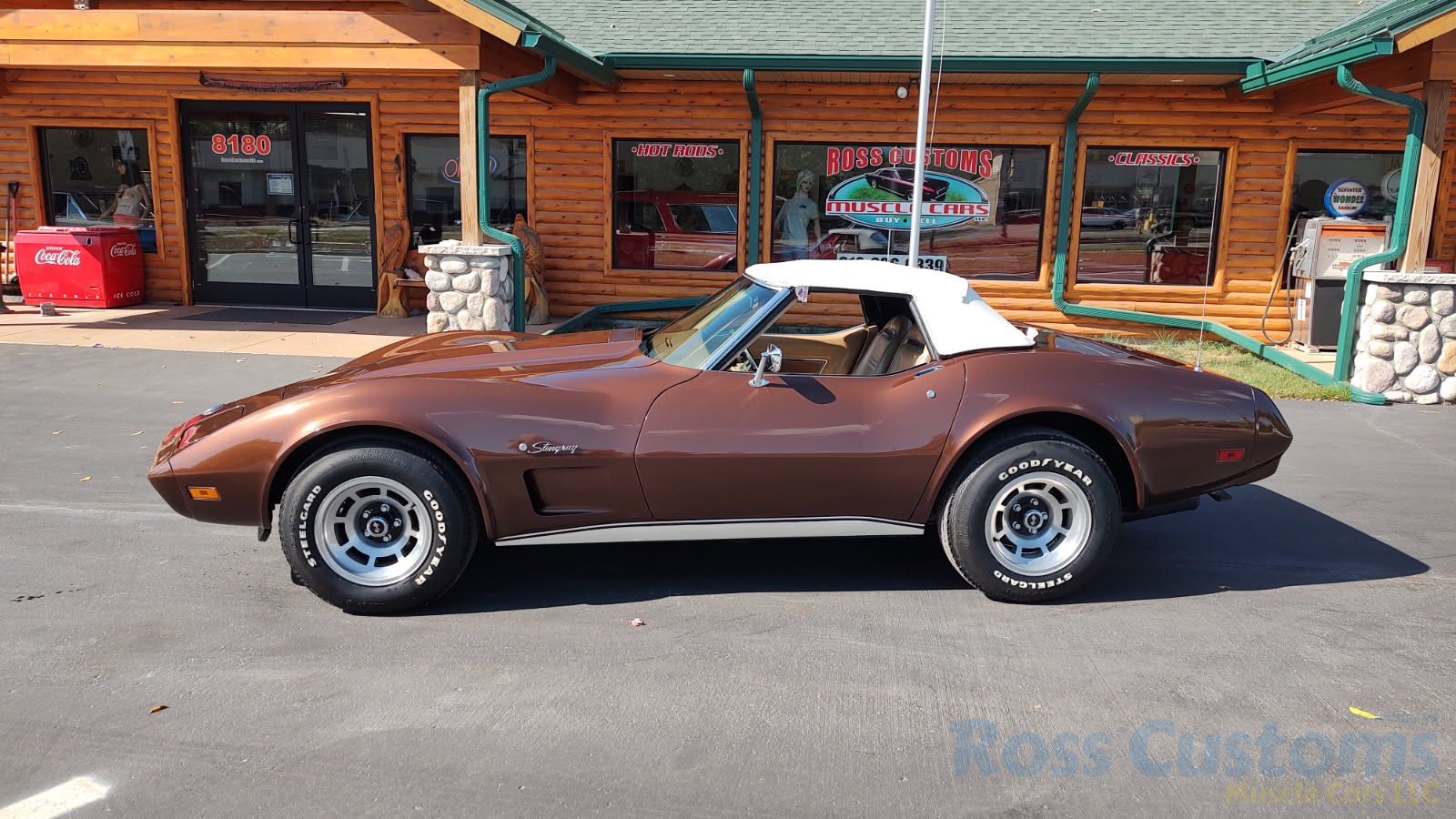 This is a very nice 2 owner 74 Corvette; past owner has owned for 40 years, 52,000 miles, has several NCRS awards, original condition, has had 1 very nice correct NCRS repaint its original factory Coco Brown Metallic, factory hardtop; as well as white convertible top – as seen in photos, convertible top is in excellent condition, original factory glass in excellent condition, original stainless in excellent condition, original window felts in excellent condition, weather stripping appears be have been replaced, original side view mirror in excellent condition, original emblems; as well as rocker moldings and taillights.