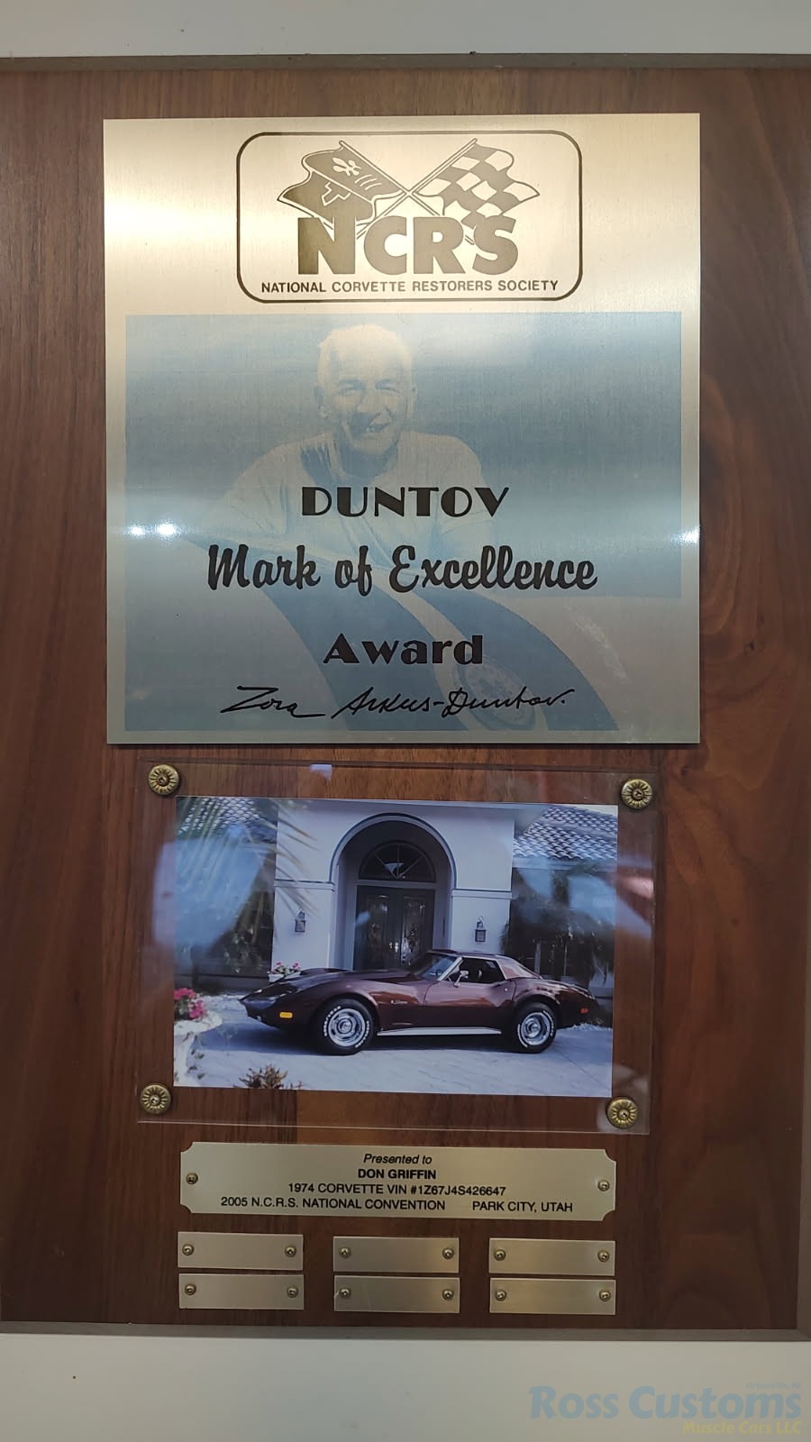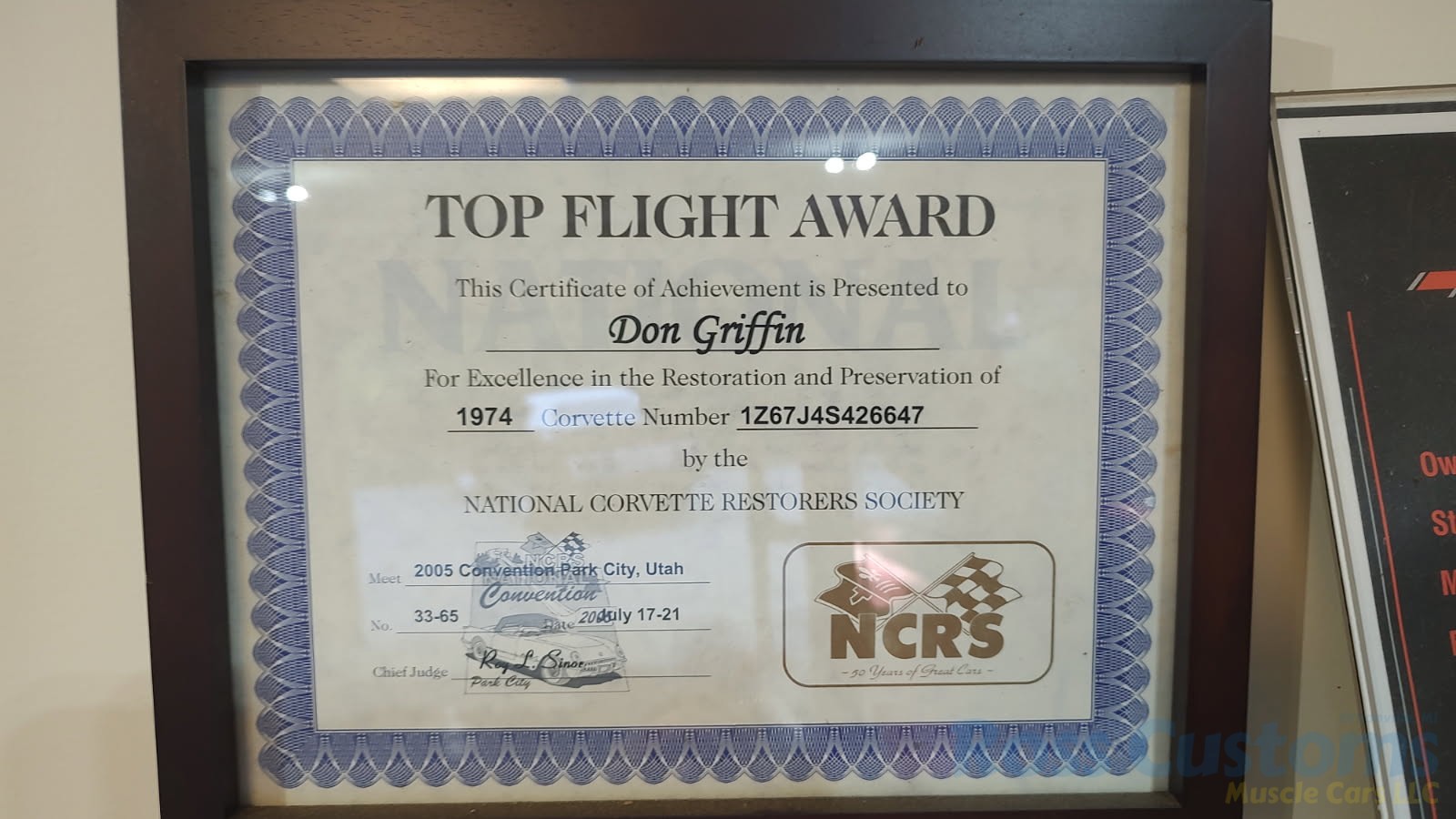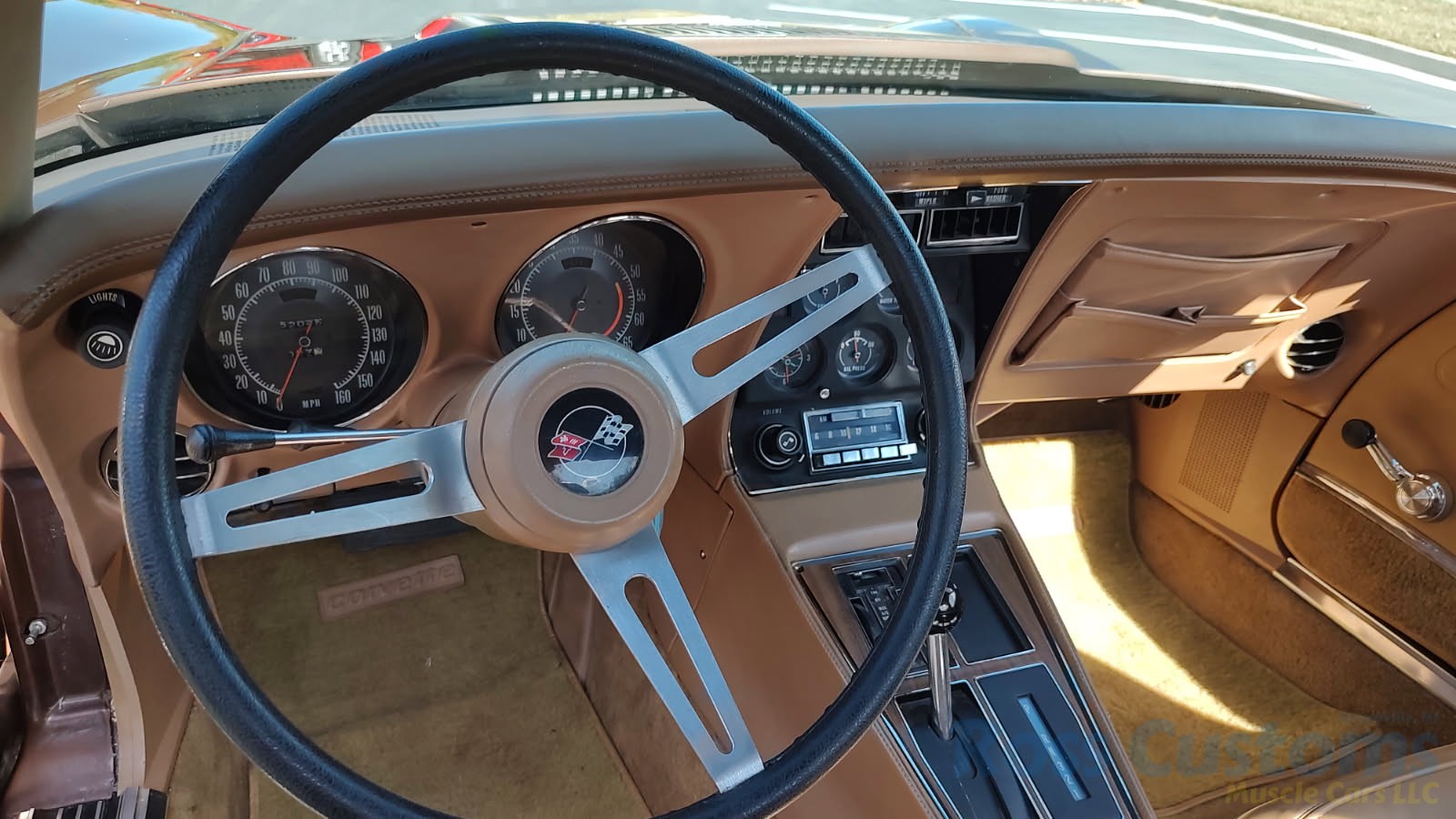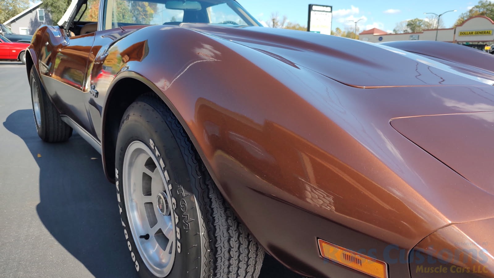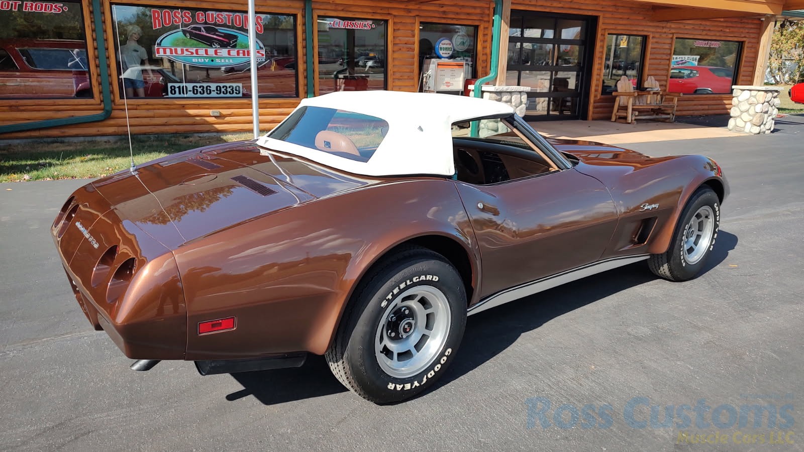 This is a very nice 2 owner 74 Corvette; past owner has owned for 40 years, 52,000 miles, has several NCRS awards, original condition, has had 1 very nice correct NCRS repaint its original factory Coco Brown Metallic, factory hardtop; as well as white convertible top – as seen in photos, convertible top is in excellent condition, original factory glass in excellent condition, original stainless in excellent condition, original window felts in excellent condition, weather stripping appears be have been replaced, original side view mirror in excellent condition, original emblems; as well as rocker moldings and taillights.