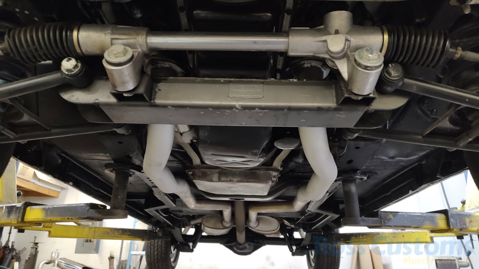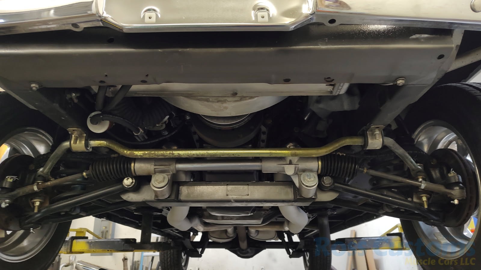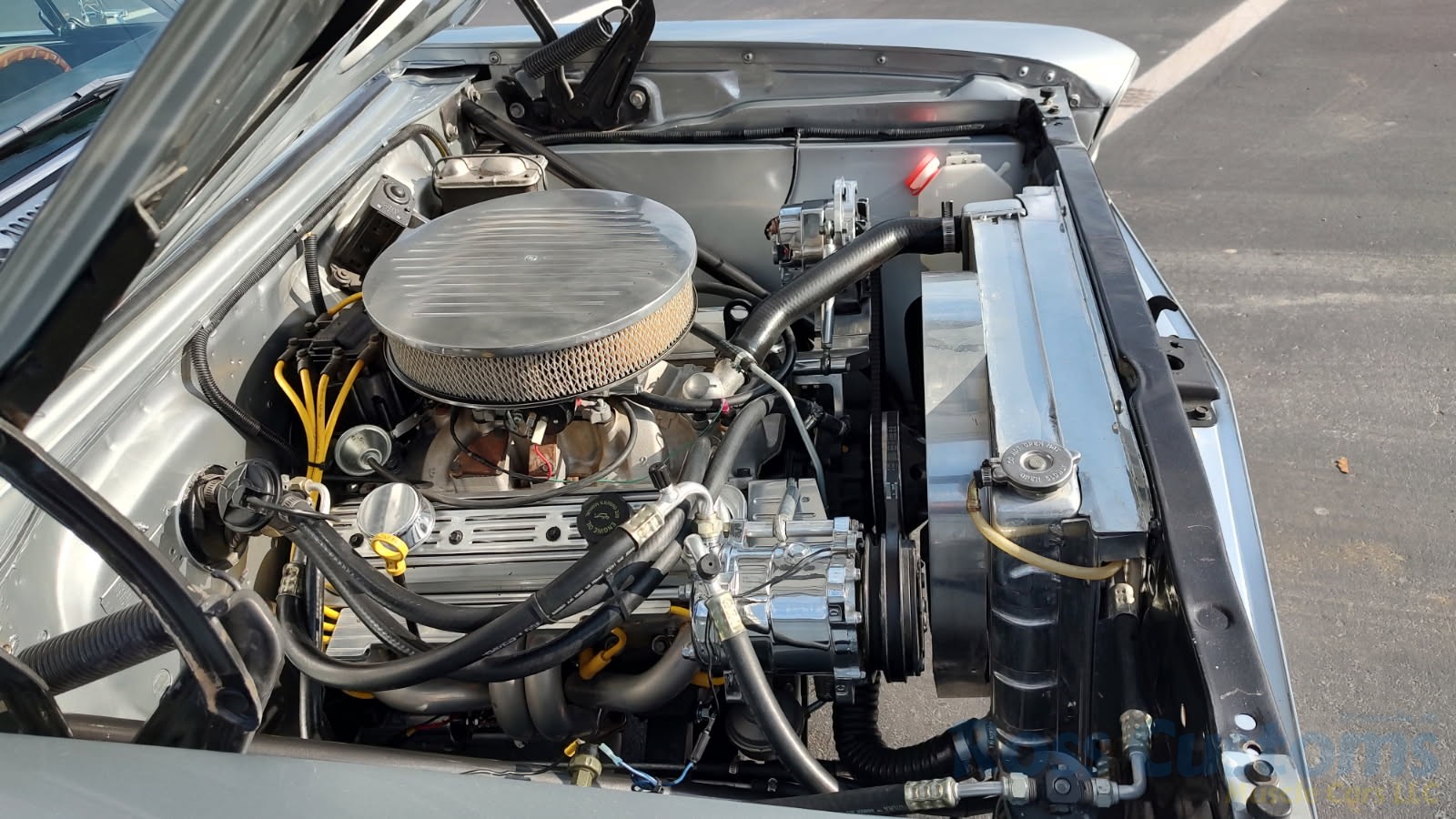 Under the hood we have a GM Crate ZZ4 with aluminum heads, factory bowtie aluminum intake, Holley 4 barrel carb with electric choke, updated with electronic ignition, billet aluminum air cleaner, alternator and AC compressor brackets, billet aluminum pulleys, chrome AC compressor, chrome alternator, nicely updated with heavy duty aluminum radiator with custom shroud, has been updated with Heidts front clip kit, rack and pinion steering, tubular upper and lower A-Arms, front sway bar, disc brakes, set of ceramic coated headers into 2 1/2 inch dual exhaust out the back in stock location, this strong running 350 is backed up with a 350 turbo trans, 10 bolt limited slip rear, new fuel tank and sending unit.
