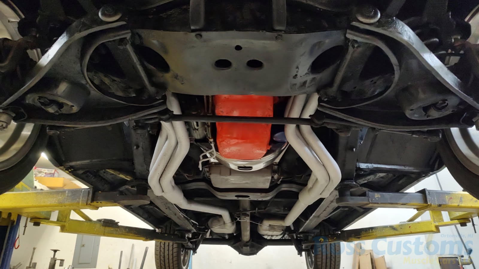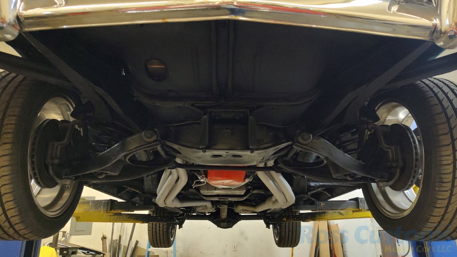 Under the hood the original motor has been replaced with a late model 350, 4 barrel, Holley 4 barrel carb with electric choke, updated with electronic ignition, Chevrolet performance valve covers and air cleaner, Vintage AC and heat, updated with 100 amp 1 wire alternator, heavy duty aluminum radiator with custom shroud and 7 blade clutch fan, also has auxiliary electric fan, updated with power steering, power front disc brakes, this strong running 350 is backed up with a 350 turbo trans, set of long tube headers into dual exhaust out the back, updated with 10 bolt S10 rear.