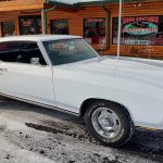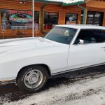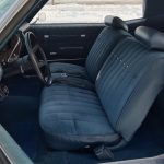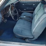Under the hood we have a professionally built era correct 4 bolt main 402, 350 horse, steel crank, forged pistons, H-beam rods, 781 oval port cylinder heads have been reworked, factory cast manifold, updated ignition, 750 CFM quadrajet 4 barrel carb with electric choke, heavy duty aluminum radiator with correct shroud and 7 blade clutch fan, factory AC – which has been updated with a late model compressor, factory power disc brakes, power steering, nicely updated with tubular upper and lower A-Arms, new steering gear box, factory exhaust manifolds into dual exhaust out the back in stock location, this strong running 402 is backed up with a 700R4 overdrive automatic trans, 10 bolt posi rear with 342 gear, F41 rear suspension – which includes rear sway bar.