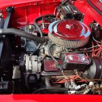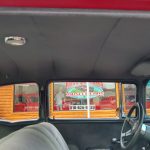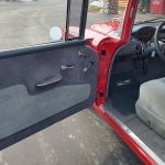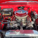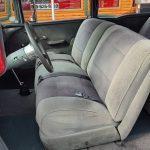 Under the hood we have a GM Crate ZZ 350 with fast burn cylinder heads, GM Bowtie aluminum intake, Edelbrock 4 barrel carb with electric choke, electronic ignition, chrome valve covers and breather, GM serpentine pulley system, high output alternator, GM AC compressor, updated with power steering, heavy duty aluminum radiator with electric fan, nicely updated with power front disc brakes, front suspension has been gone through, updated with 2 inch drop spindles and front sway bar, set of Doug’s long tube headers into 2 1/2 inch dual Flowmaster exhaust out the back with dual chrome tips, this strong running 350 is backed up with a 700R4 automatic overdrive trans, stock type rear end with posi.