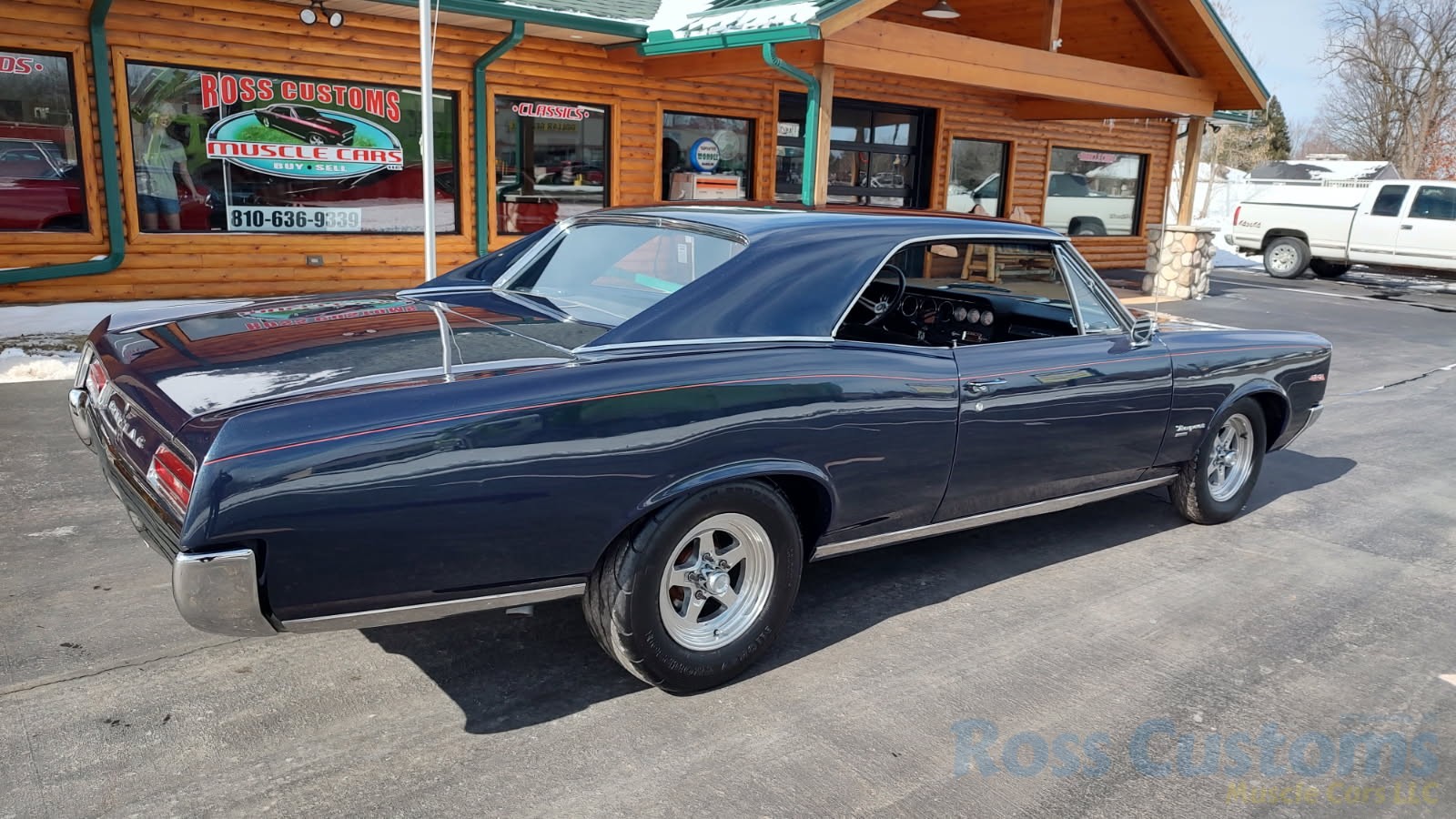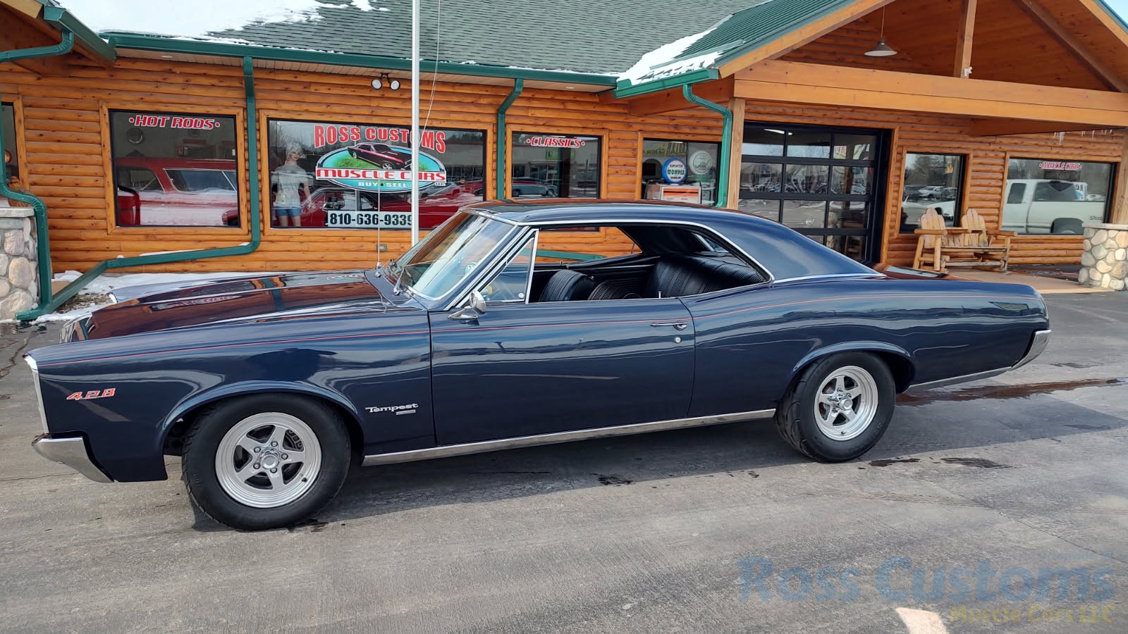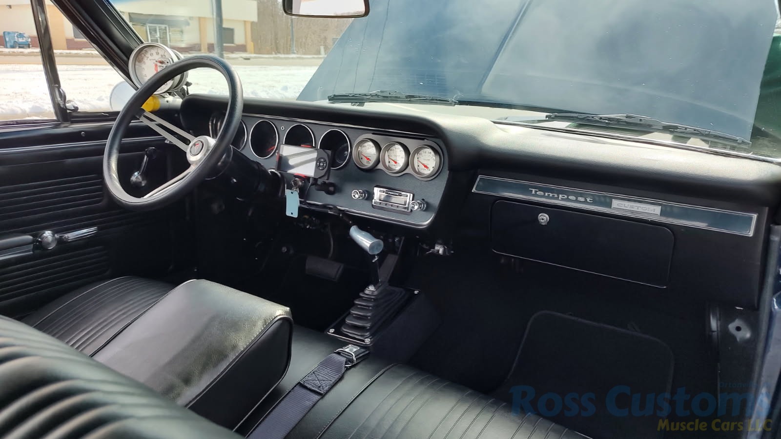 This is a slick 67 Tempest that has undergone a very nice custom build, done in Midnight Blue Metallic, basecoat cleartcoat, sanded and wheeled smooth, at time of build had new tinted windshield; all other glass is factory original in very good condition, window stainless moldings are all original in very good condition, new weather stripping and window felts, new side view mirrors, new emblems, grills, grill molding and headlight bezels, re-chromed front bumper, original rocker moldings in excellent condition, original deck lid and quarter eye brow moldings in excellent condition, original taillights in good condition, rear bumper has also been re-chromed.