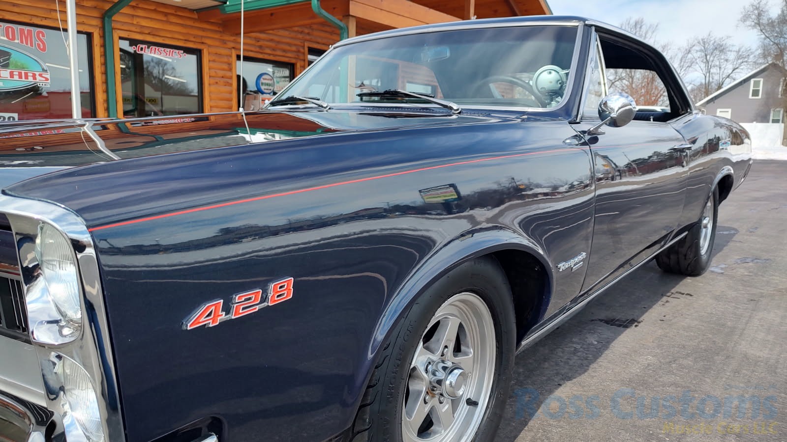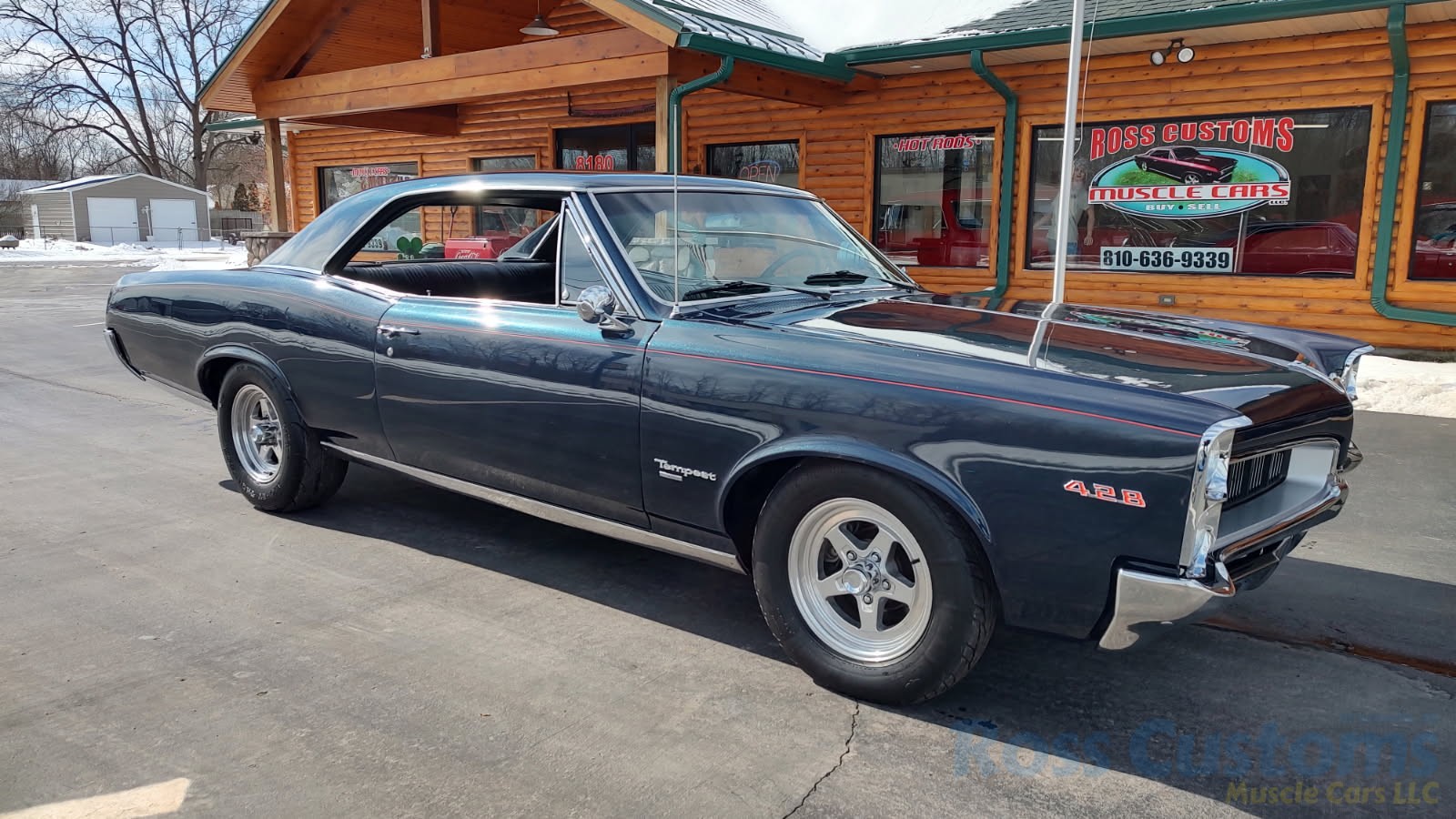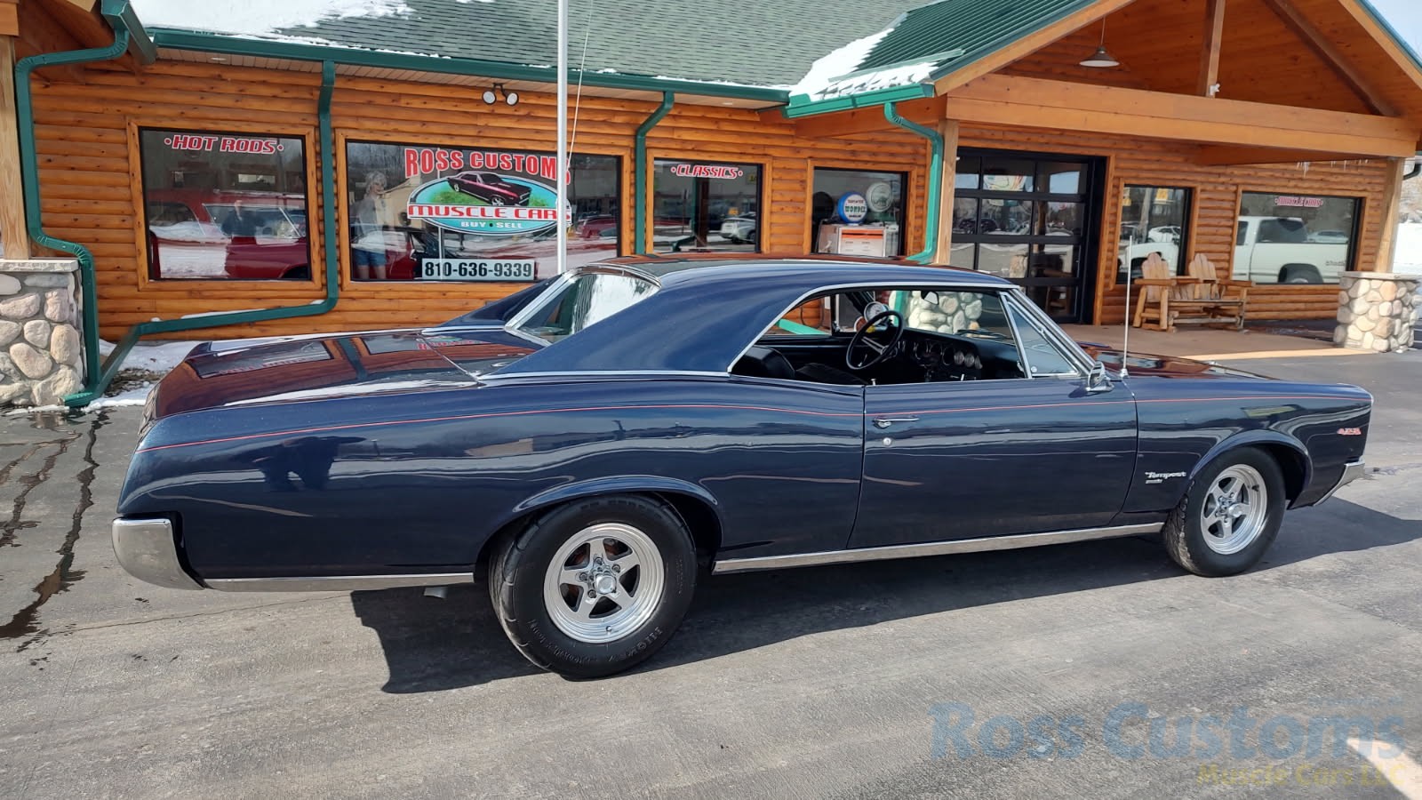 This is a slick 67 Tempest that has undergone a very nice custom build, done in Midnight Blue Metallic, basecoat cleartcoat, sanded and wheeled smooth, at time of build had new tinted windshield; all other glass is factory original in very good condition, window stainless moldings are all original in very good condition, new weather stripping and window felts, new side view mirrors, new emblems, grills, grill molding and headlight bezels, re-chromed front bumper, original rocker moldings in excellent condition, original deck lid and quarter eye brow moldings in excellent condition, original taillights in good condition, rear bumper has also been re-chromed.