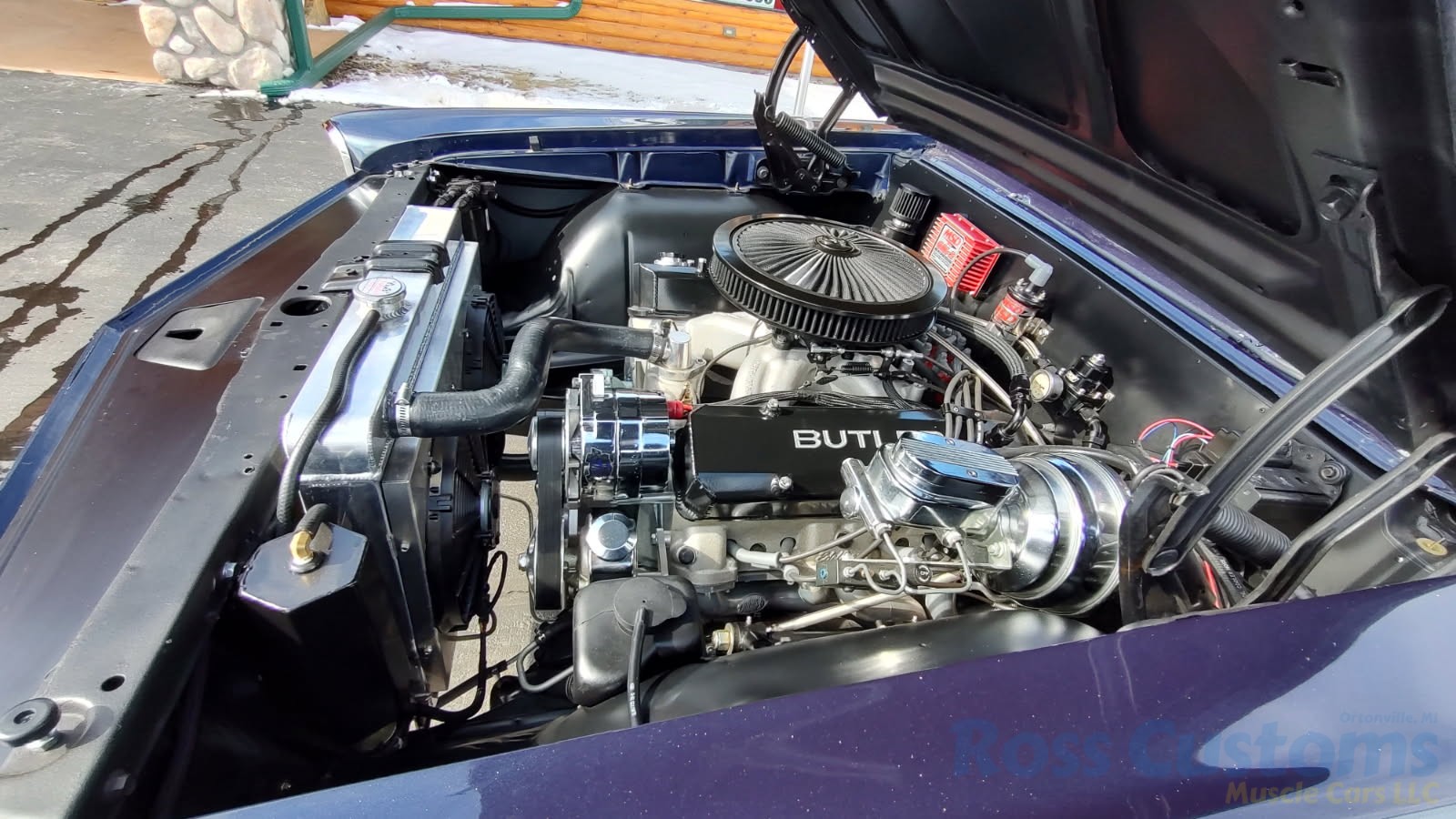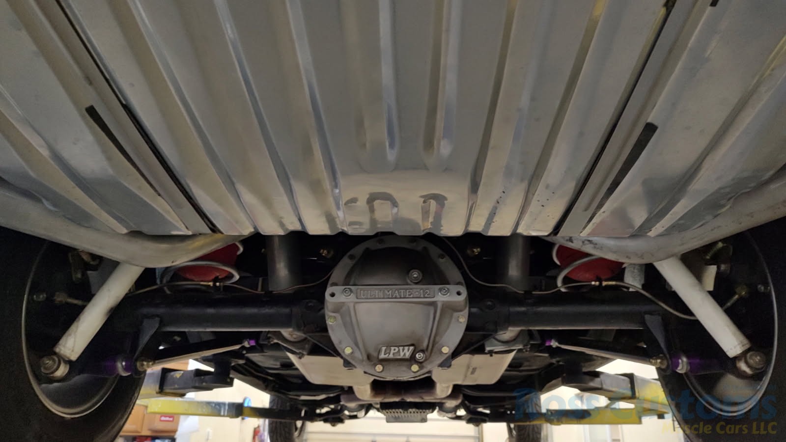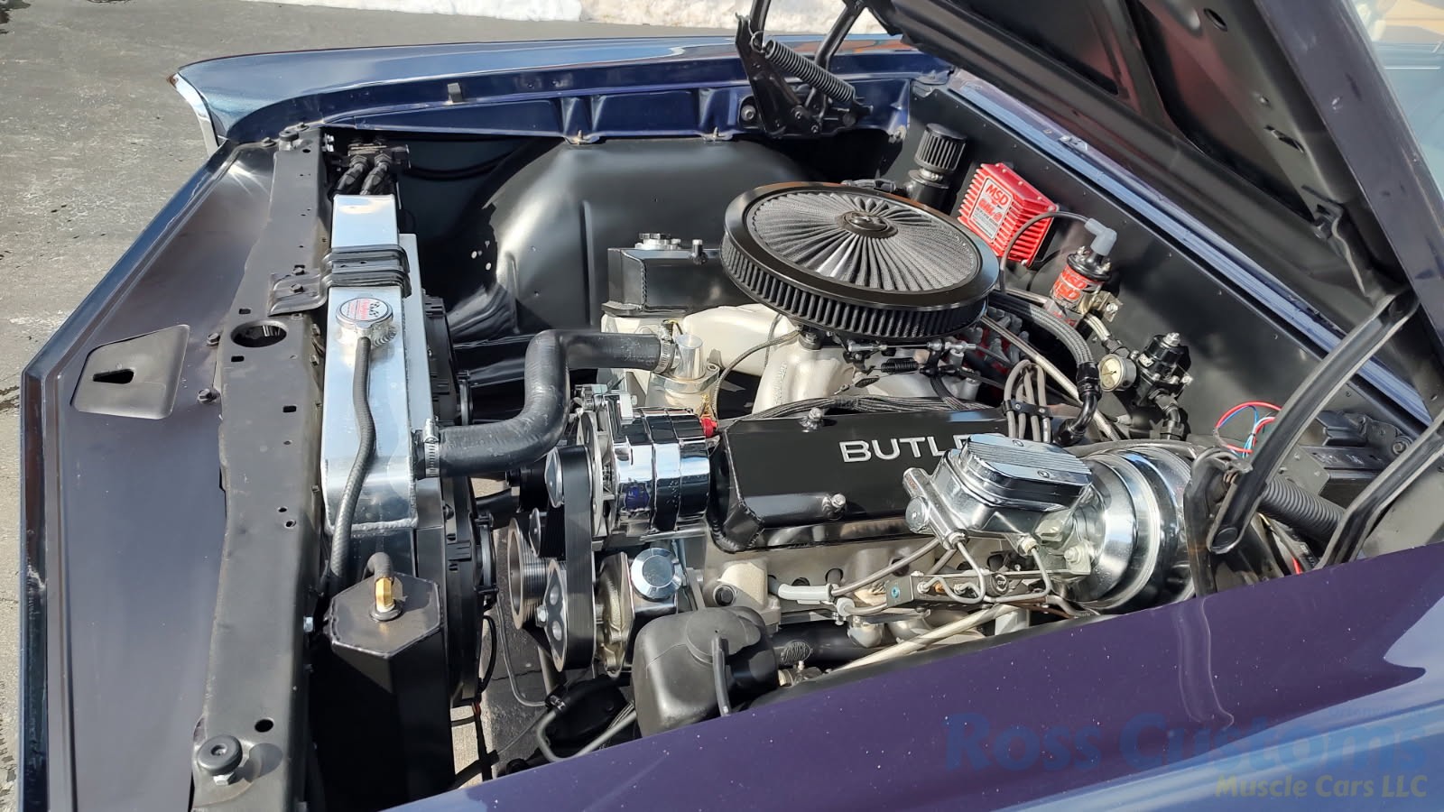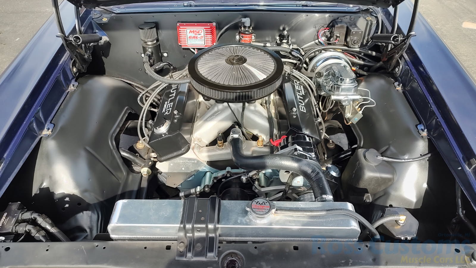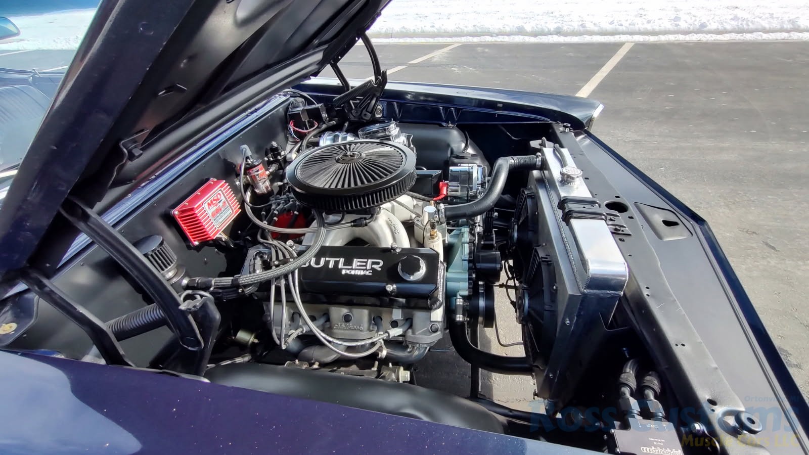 Under the hood we have a professionally built 428, bored and stroked to 461 ci, Butler Performance package, Eagle rotating assembly, forged internals, Edelbrock aluminum cylinder heads, solid roller cam, roller rockers, Kauffman intake manifold, Fitech fuel injection, K&N breather, Butler Performance valve covers, full MSD ignition, serpentine pulley system, Meziere water pump, 1 wire high output alternator, chrome power steering pump, heavy duty aluminum radiator with dual electric fans, billet recovery tank, power 4 wheel disc brakes with slotted rotors, 4 piston calipers up front, front suspension has been updated with tubular upper and lower control arms, performance lowering coils, 1 1/4 front sway bar, custom set of ceramic coated Doug’s long tube headers into 3 inch stainless exhaust with X-pipe and Flowmaster mufflers out the back in stock location, this strong running 461 is backed up with a professionally built 400 turbo trans, 12 bolt posi rear with 390 gear, performance axels, performance springs and shocks; also has airbags, tubular control arms and frame braces, rear disc brakes, new fuel tank with in tank pump for the fuel injection.