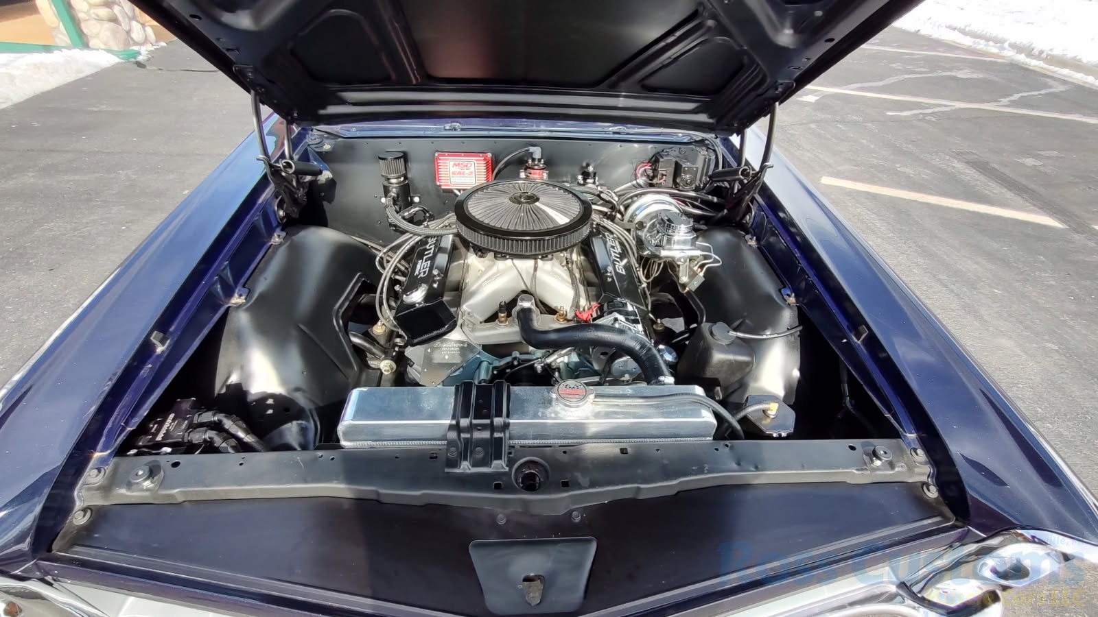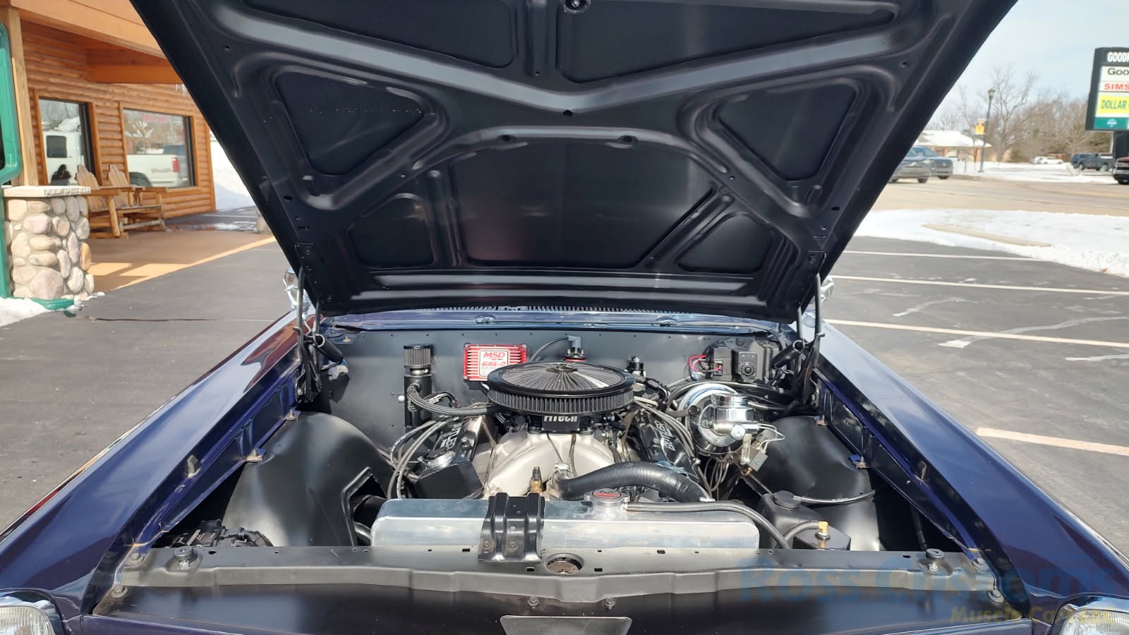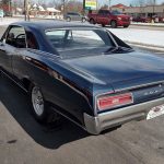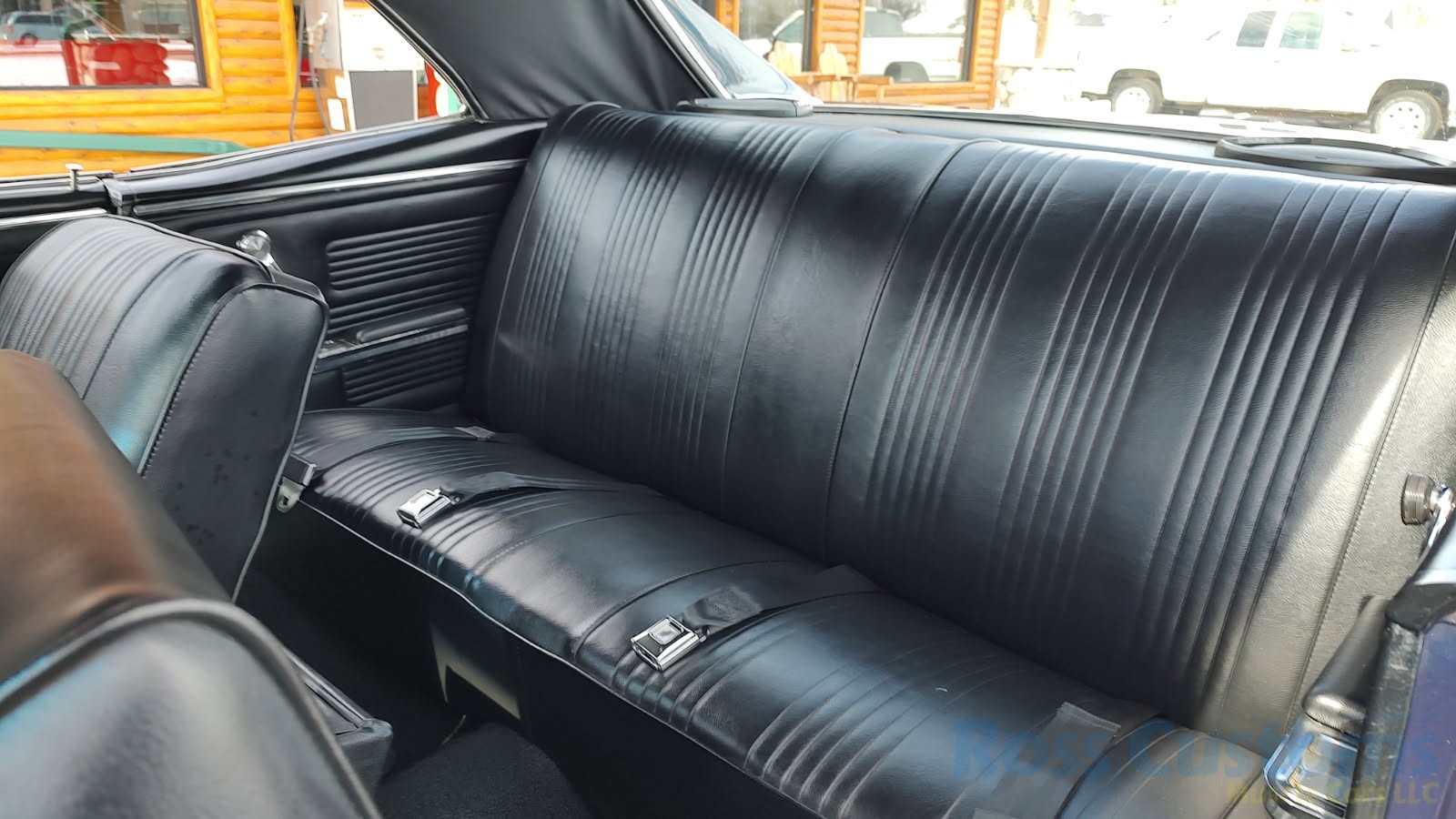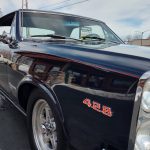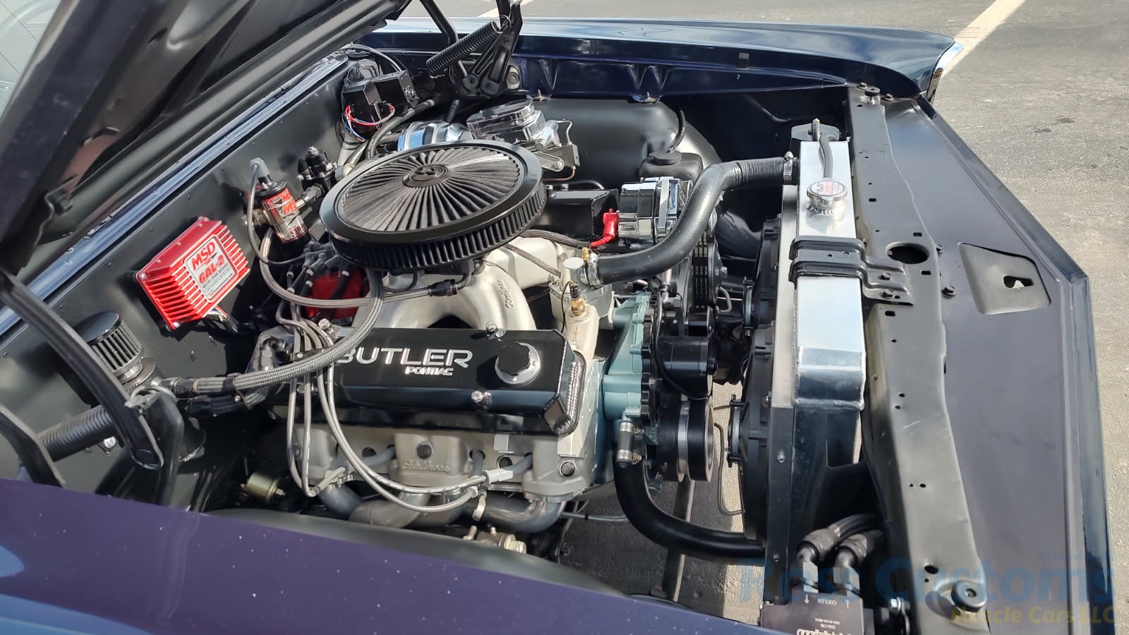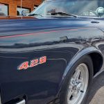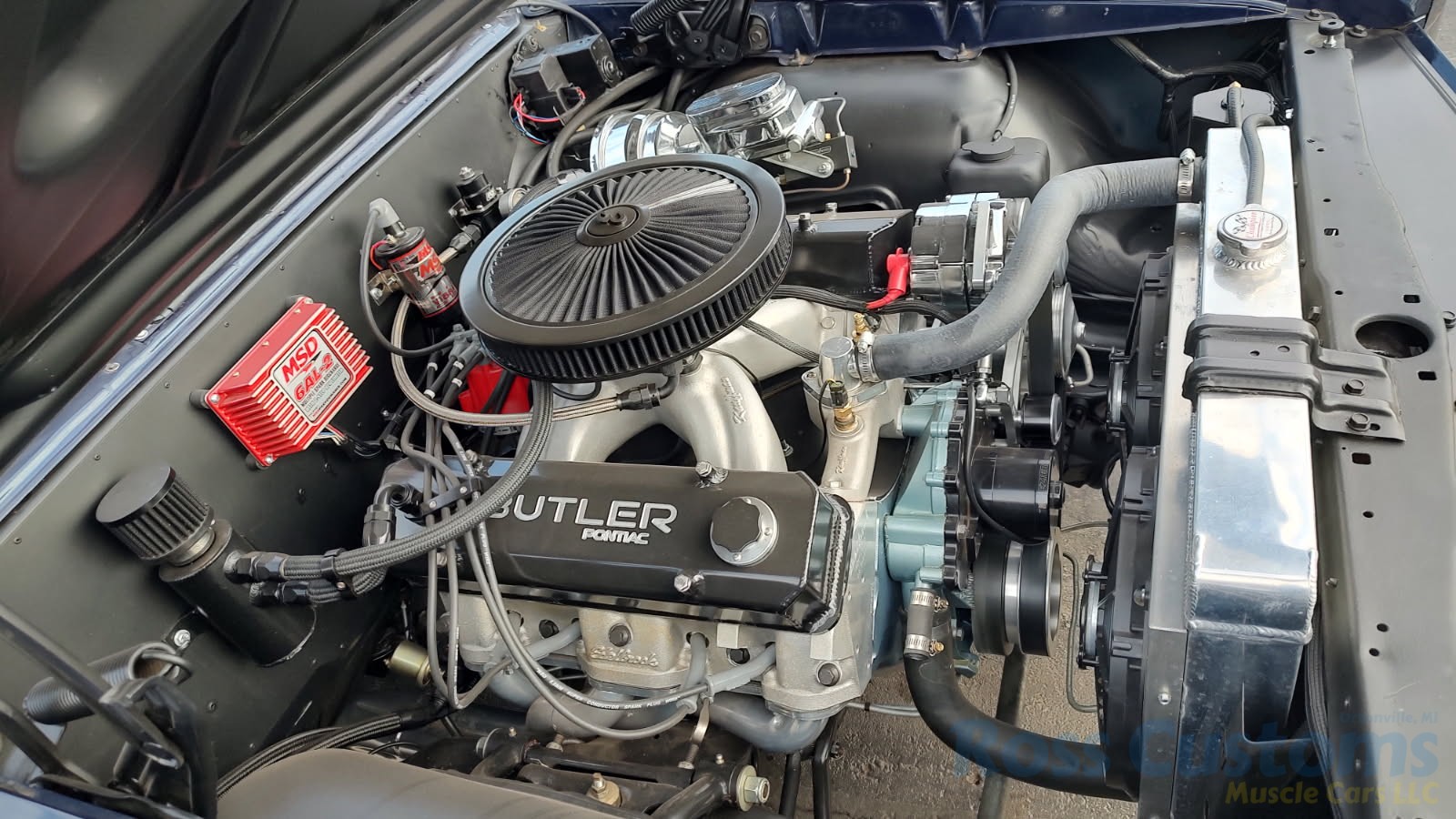 Under the hood we have a professionally built 428, bored and stroked to 461 ci, Butler Performance package, Eagle rotating assembly, forged internals, Edelbrock aluminum cylinder heads, solid roller cam, roller rockers, Kauffman intake manifold, Fitech fuel injection, K&N breather, Butler Performance valve covers, full MSD ignition, serpentine pulley system, Meziere water pump, 1 wire high output alternator, chrome power steering pump, heavy duty aluminum radiator with dual electric fans, billet recovery tank, power 4 wheel disc brakes with slotted rotors, 4 piston calipers up front, front suspension has been updated with tubular upper and lower control arms, performance lowering coils, 1 1/4 front sway bar, custom set of ceramic coated Doug’s long tube headers into 3 inch stainless exhaust with X-pipe and Flowmaster mufflers out the back in stock location, this strong running 461 is backed up with a professionally built 400 turbo trans, 12 bolt posi rear with 390 gear, performance axels, performance springs and shocks; also has airbags, tubular control arms and frame braces, rear disc brakes, new fuel tank with in tank pump for the fuel injection.