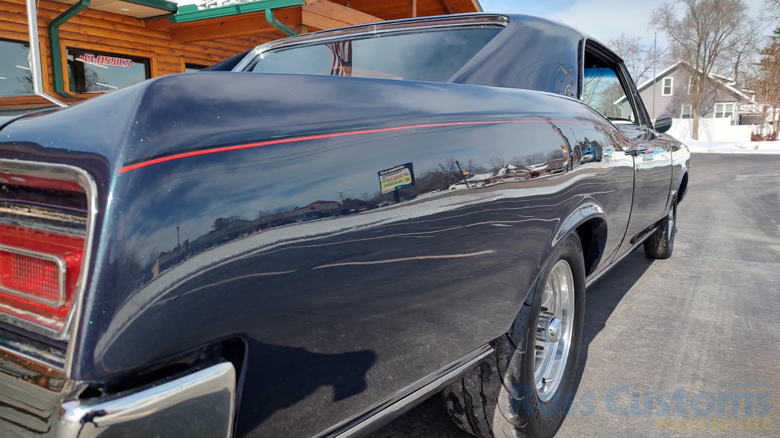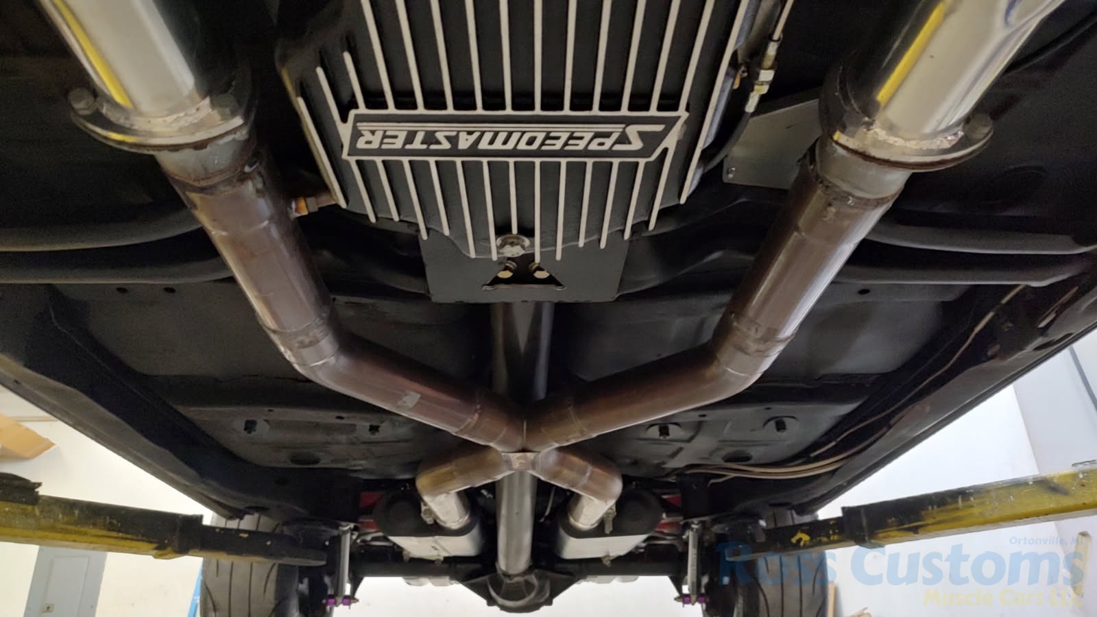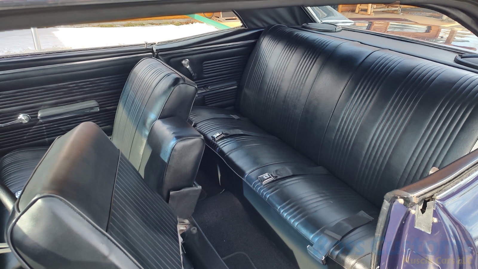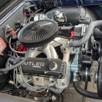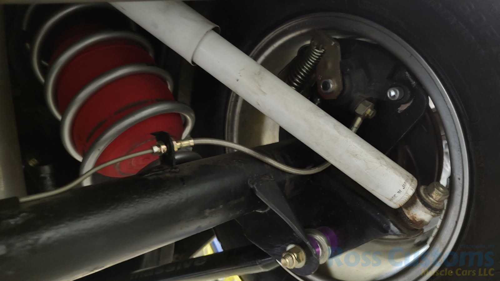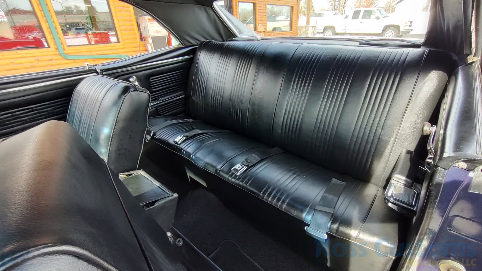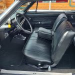 Under the hood we have a professionally built 428, bored and stroked to 461 ci, Butler Performance package, Eagle rotating assembly, forged internals, Edelbrock aluminum cylinder heads, solid roller cam, roller rockers, Kauffman intake manifold, Fitech fuel injection, K&N breather, Butler Performance valve covers, full MSD ignition, serpentine pulley system, Meziere water pump, 1 wire high output alternator, chrome power steering pump, heavy duty aluminum radiator with dual electric fans, billet recovery tank, power 4 wheel disc brakes with slotted rotors, 4 piston calipers up front, front suspension has been updated with tubular upper and lower control arms, performance lowering coils, 1 1/4 front sway bar, custom set of ceramic coated Doug’s long tube headers into 3 inch stainless exhaust with X-pipe and Flowmaster mufflers out the back in stock location, this strong running 461 is backed up with a professionally built 400 turbo trans, 12 bolt posi rear with 390 gear, performance axels, performance springs and shocks; also has airbags, tubular control arms and frame braces, rear disc brakes, new fuel tank with in tank pump for the fuel injection.