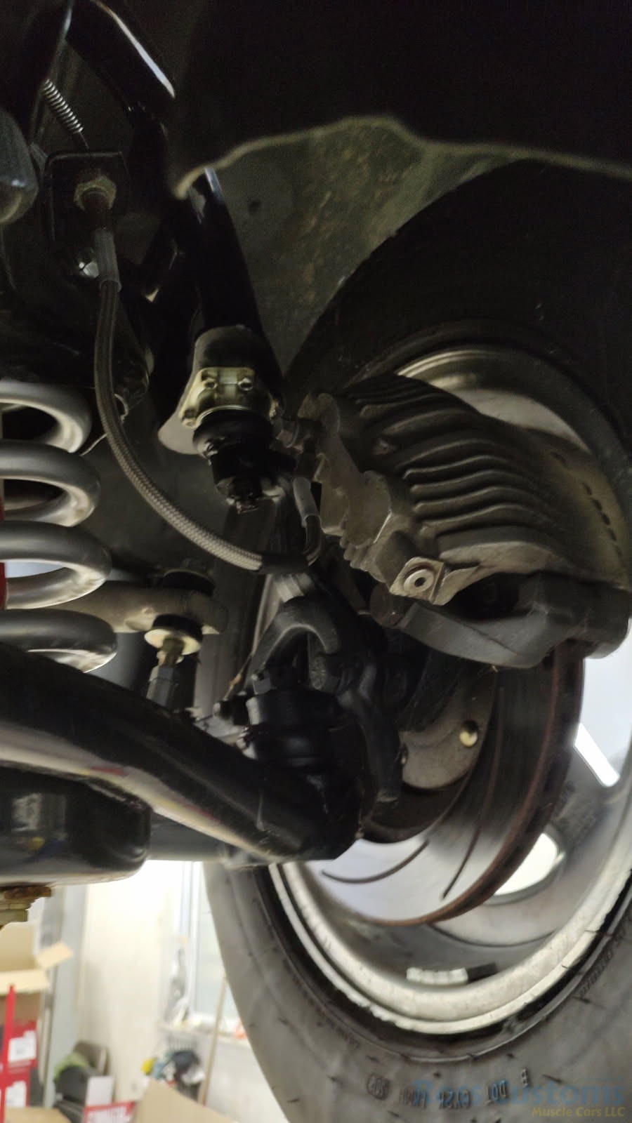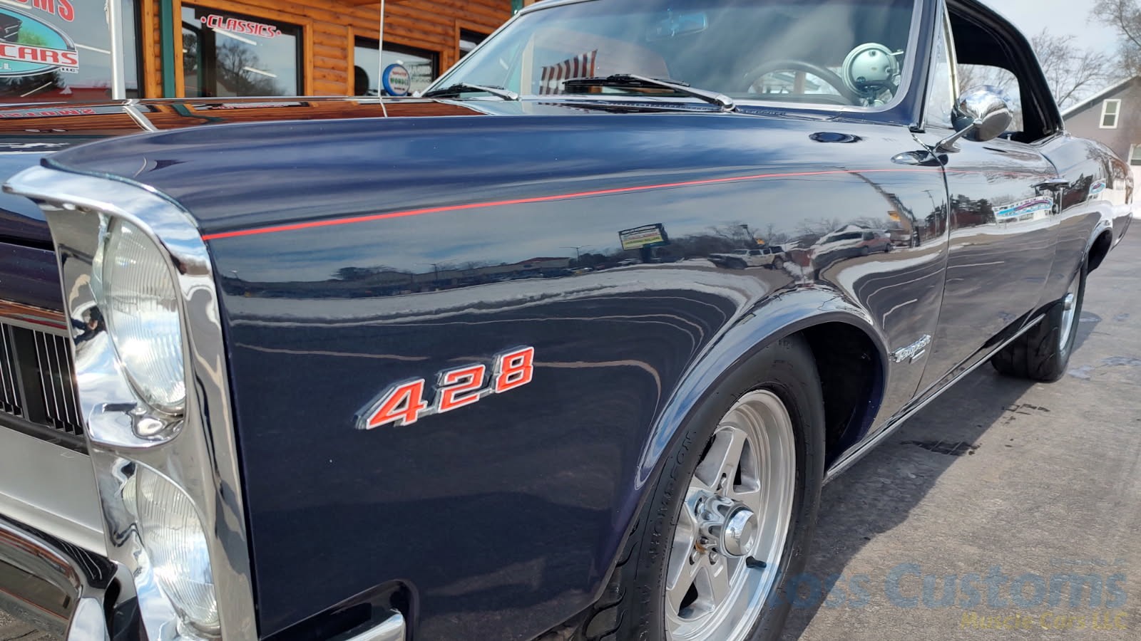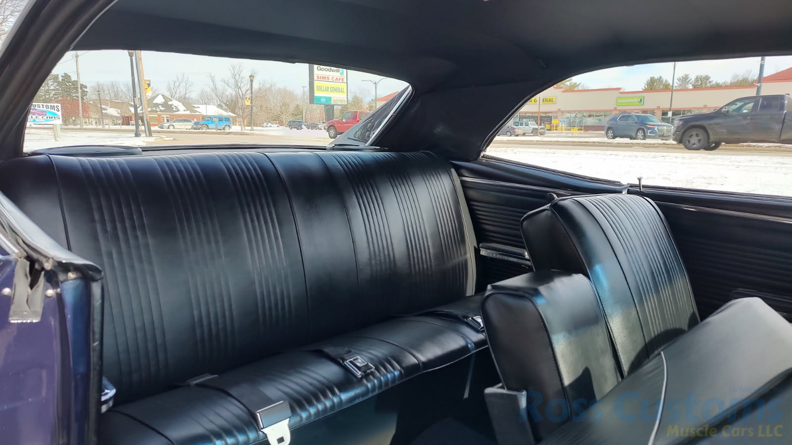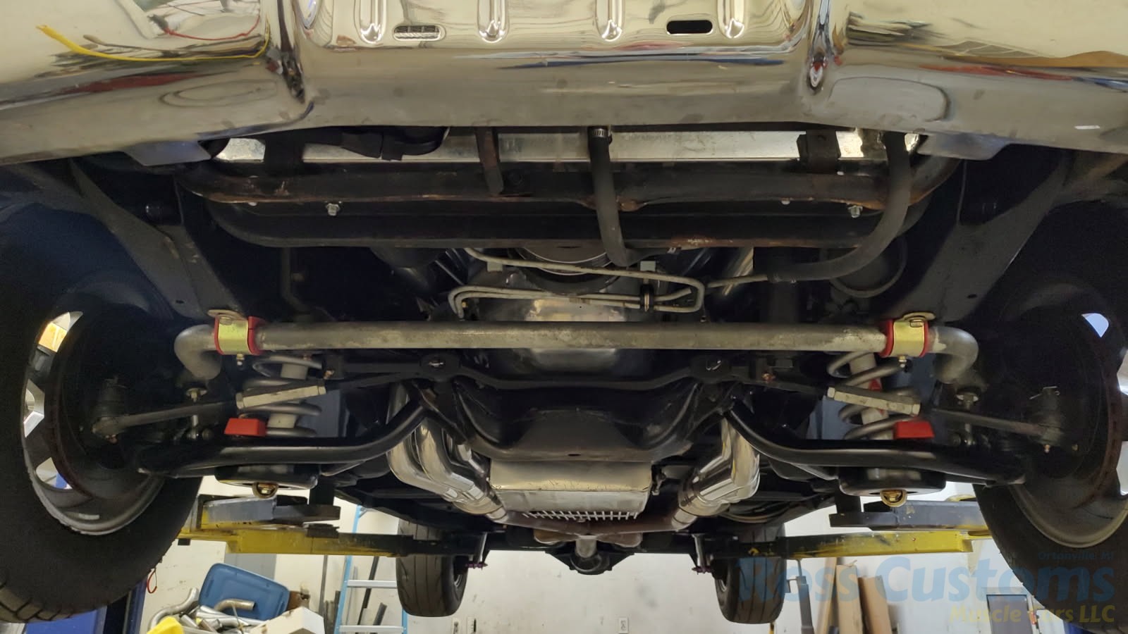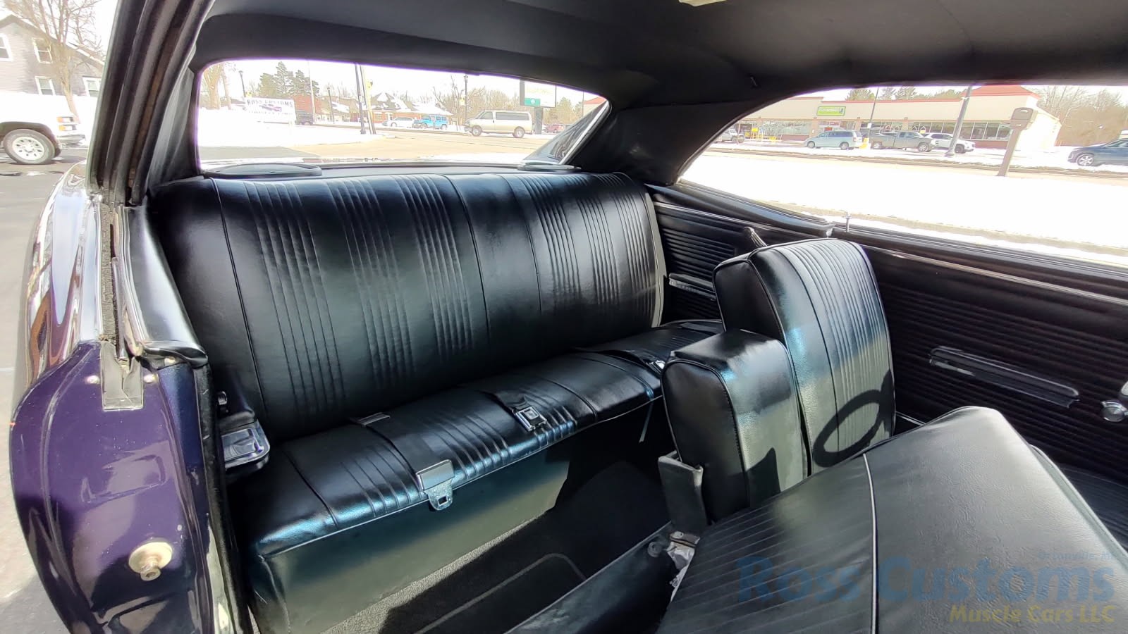 Under the hood we have a professionally built 428, bored and stroked to 461 ci, Butler Performance package, Eagle rotating assembly, forged internals, Edelbrock aluminum cylinder heads, solid roller cam, roller rockers, Kauffman intake manifold, Fitech fuel injection, K&N breather, Butler Performance valve covers, full MSD ignition, serpentine pulley system, Meziere water pump, 1 wire high output alternator, chrome power steering pump, heavy duty aluminum radiator with dual electric fans, billet recovery tank, power 4 wheel disc brakes with slotted rotors, 4 piston calipers up front, front suspension has been updated with tubular upper and lower control arms, performance lowering coils, 1 1/4 front sway bar, custom set of ceramic coated Doug’s long tube headers into 3 inch stainless exhaust with X-pipe and Flowmaster mufflers out the back in stock location, this strong running 461 is backed up with a professionally built 400 turbo trans, 12 bolt posi rear with 390 gear, performance axels, performance springs and shocks; also has airbags, tubular control arms and frame braces, rear disc brakes, new fuel tank with in tank pump for the fuel injection.