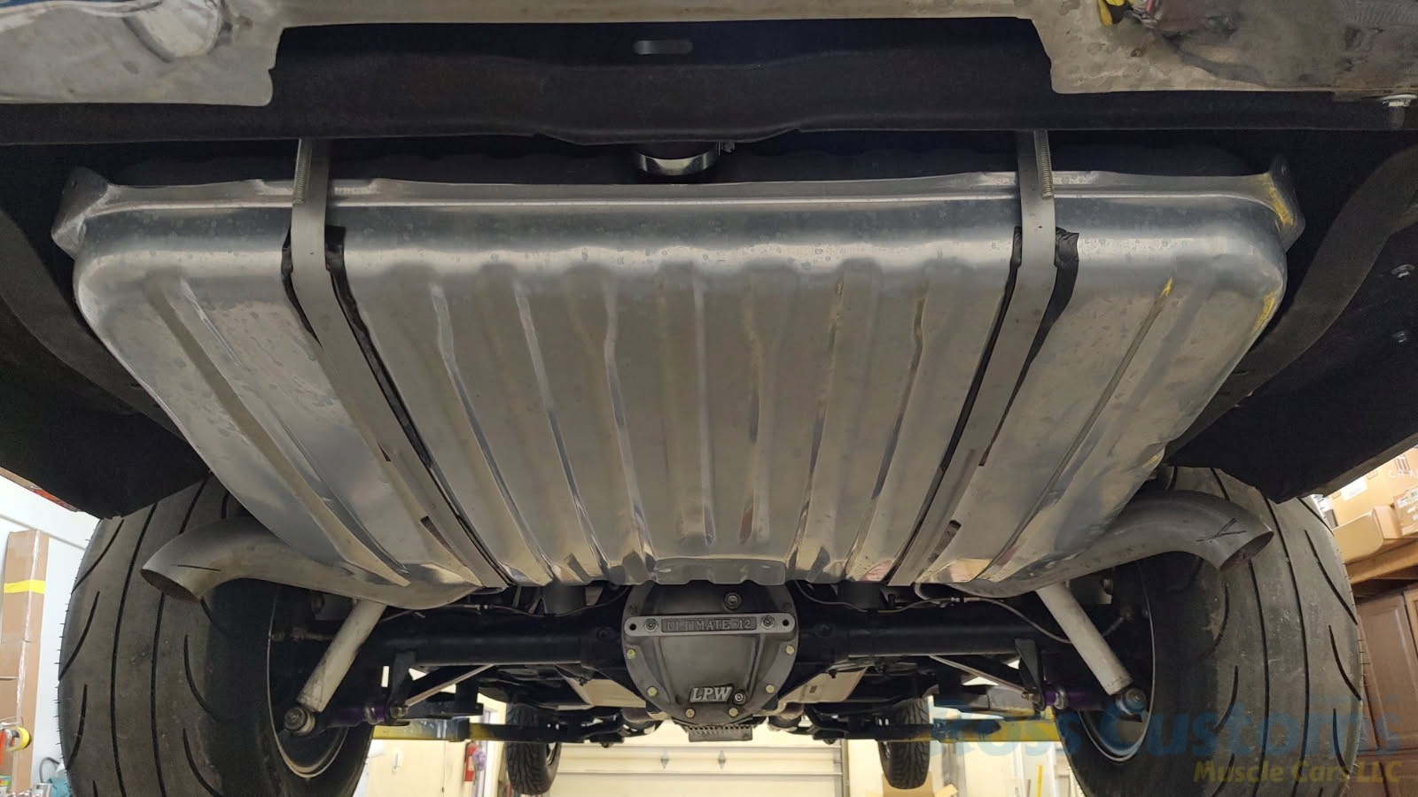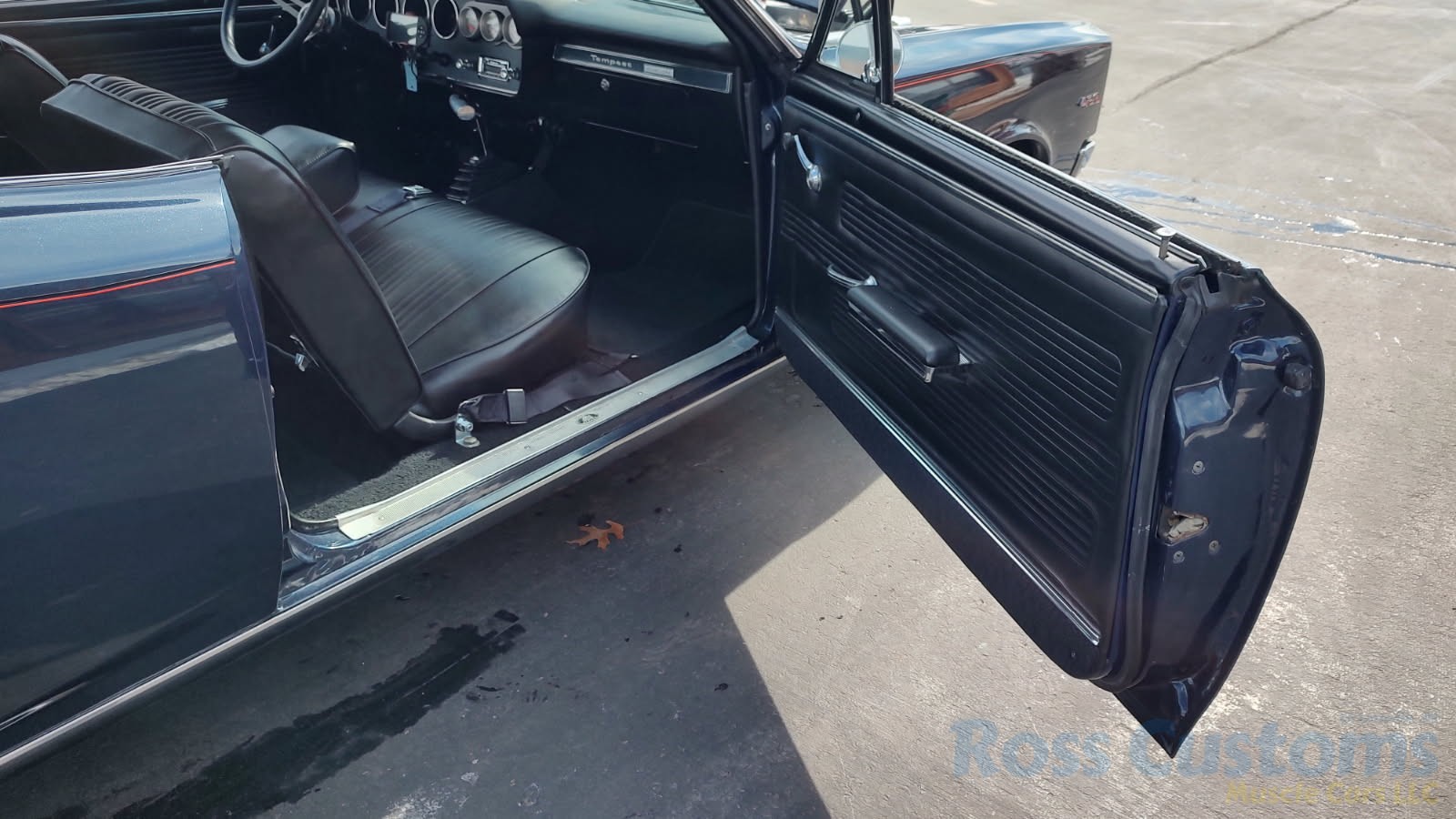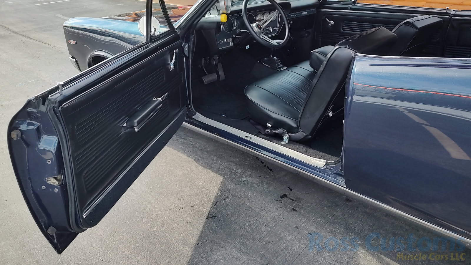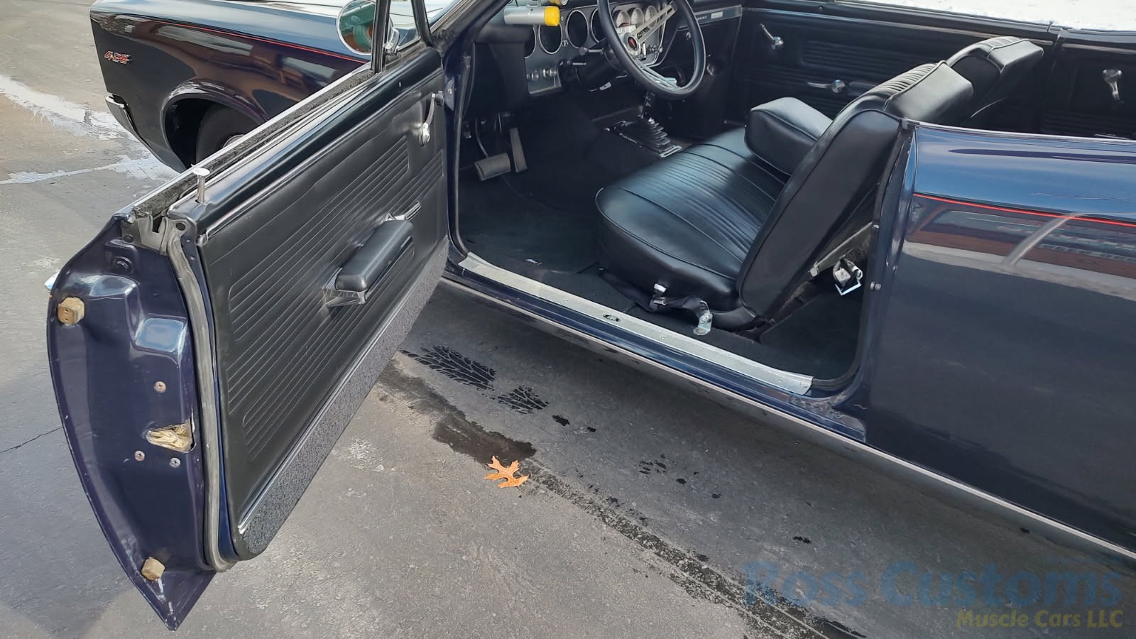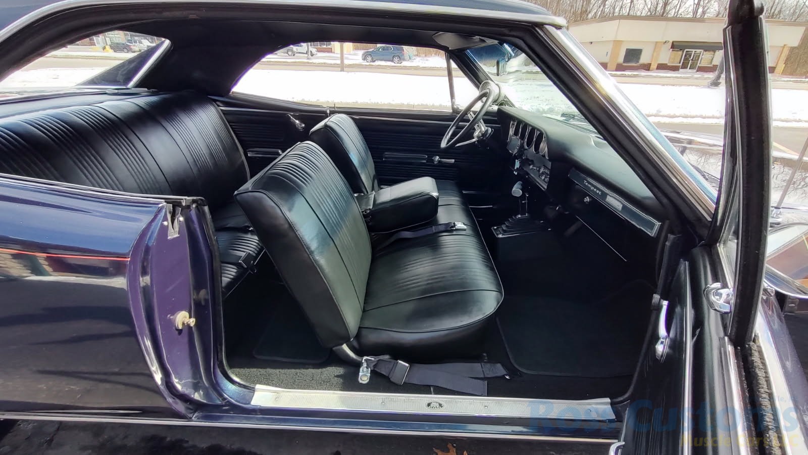Under the hood we have a professionally built 428, bored and stroked to 461 ci, Butler Performance package, Eagle rotating assembly, forged internals, Edelbrock aluminum cylinder heads, solid roller cam, roller rockers, Kauffman intake manifold, Fitech fuel injection, K&N breather, Butler Performance valve covers, full MSD ignition, serpentine pulley system, Meziere water pump, 1 wire high output alternator, chrome power steering pump, heavy duty aluminum radiator with dual electric fans, billet recovery tank, power 4 wheel disc brakes with slotted rotors, 4 piston calipers up front, front suspension has been updated with tubular upper and lower control arms, performance lowering coils, 1 1/4 front sway bar, custom set of ceramic coated Doug’s long tube headers into 3 inch stainless exhaust with X-pipe and Flowmaster mufflers out the back in stock location, this strong running 461 is backed up with a professionally built 400 turbo trans, 12 bolt posi rear with 390 gear, performance axels, performance springs and shocks; also has airbags, tubular control arms and frame braces, rear disc brakes, new fuel tank with in tank pump for the fuel injection.