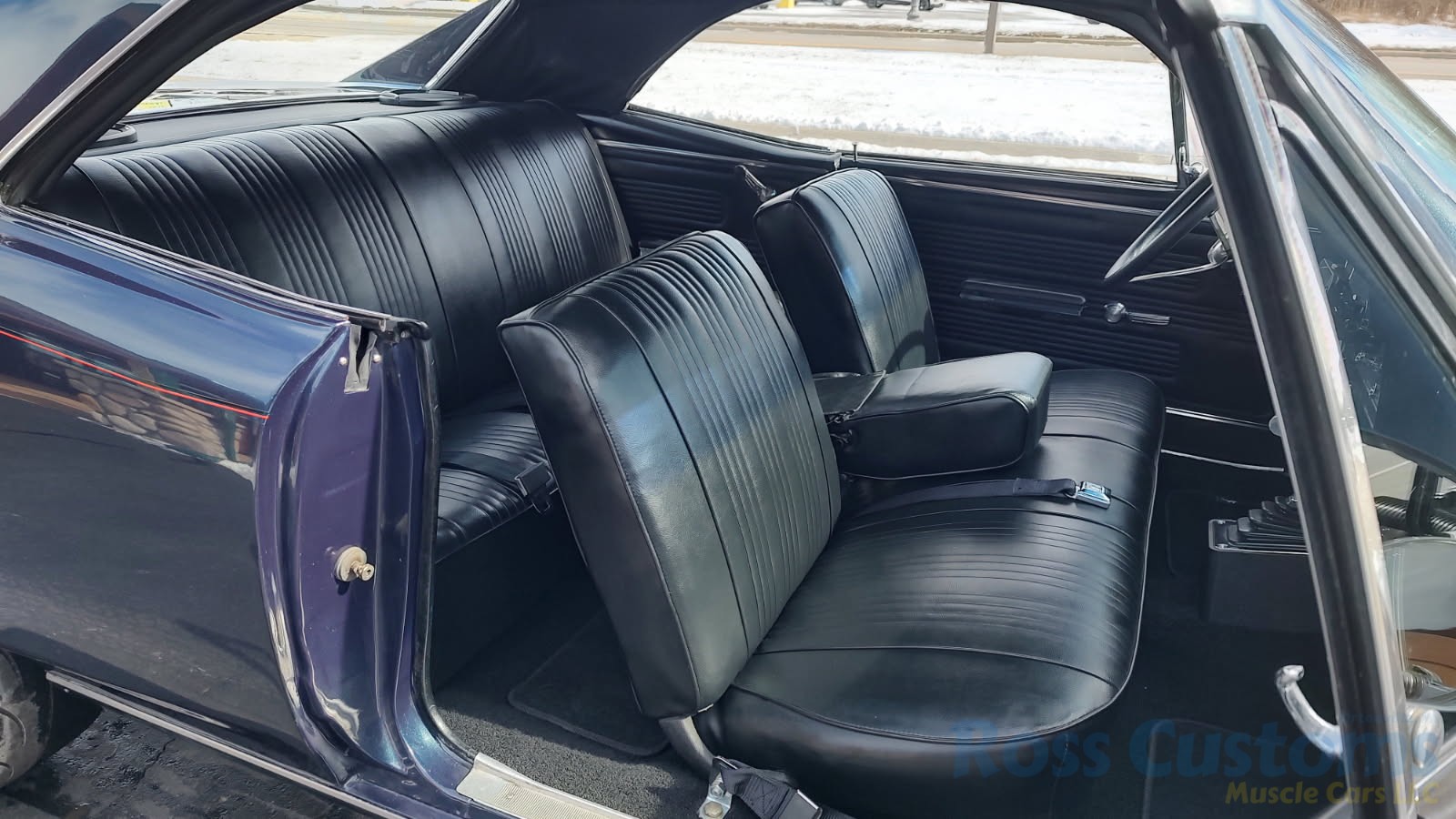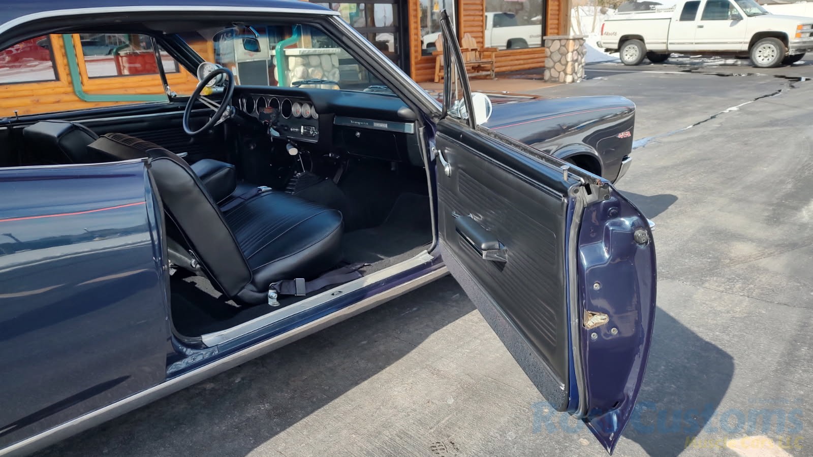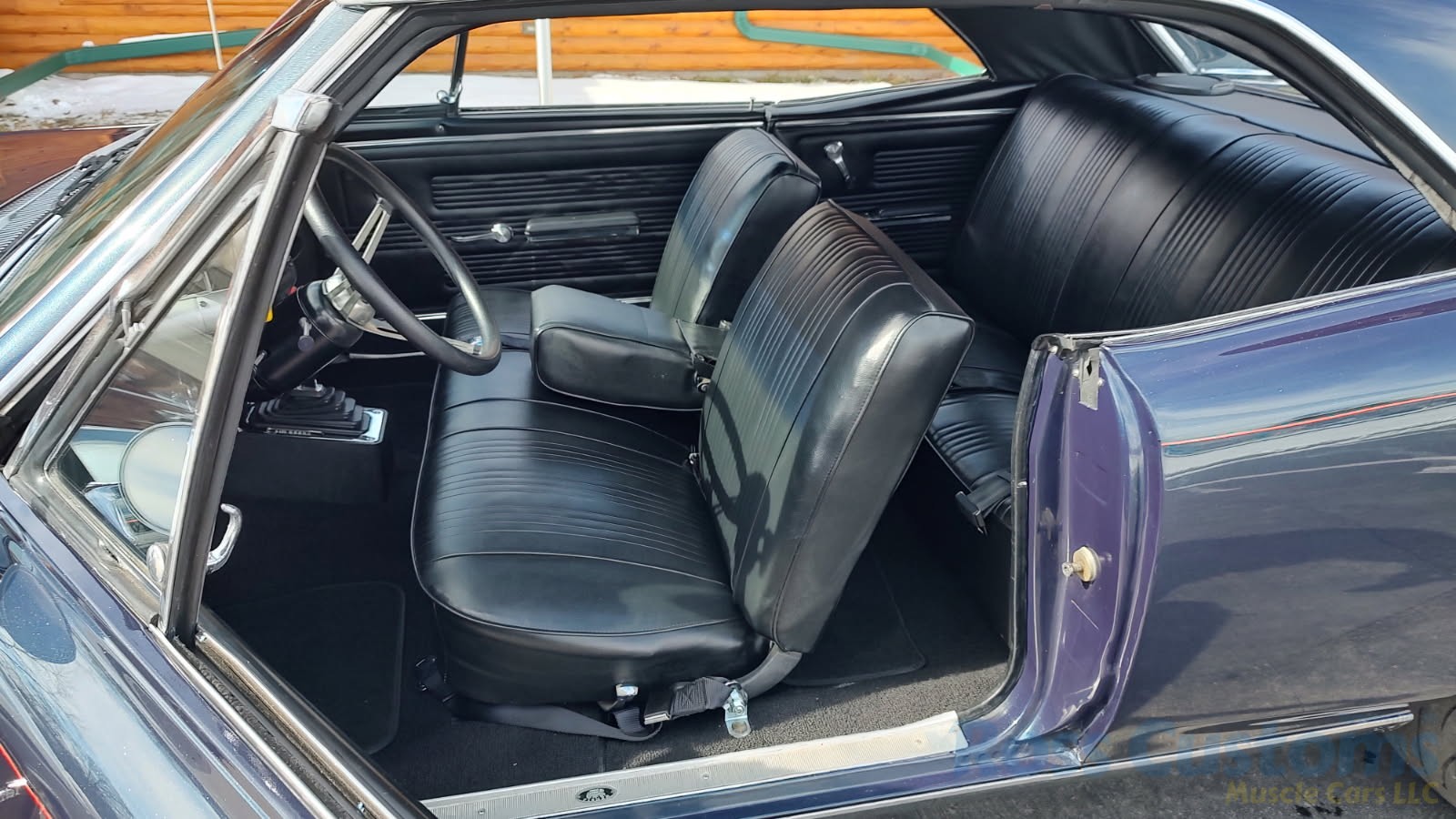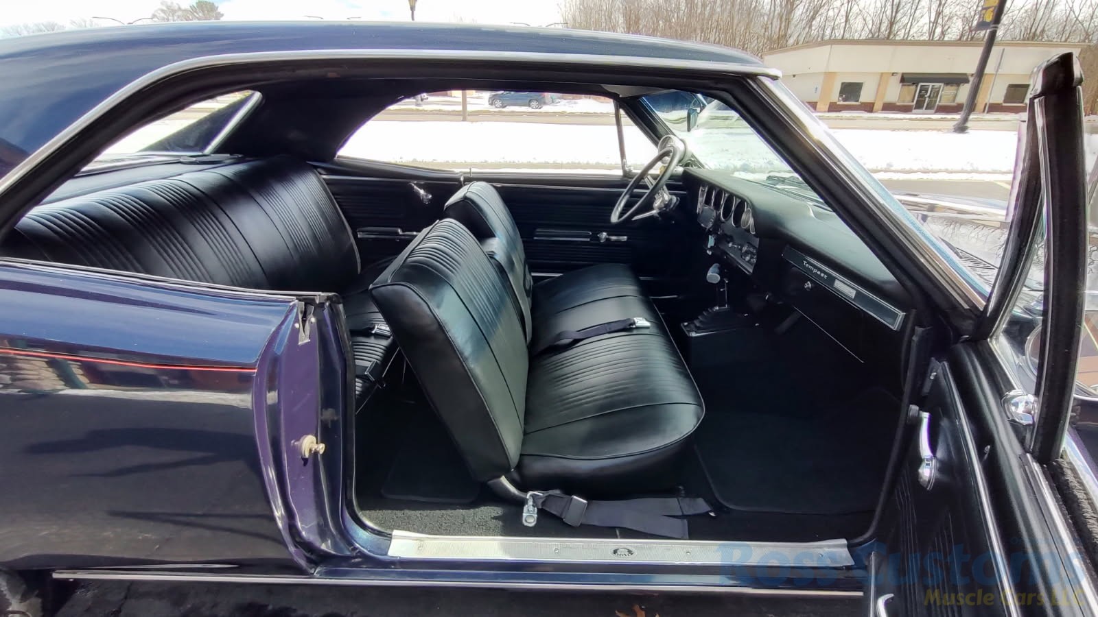 Black interior, rewired with up to date wiring throughout, new dash bezel with custom Auto Meter gauges, tach with shift light, direct-fit AM/FM stereo with IPOD capability, amp and kicker, custom kick panel speakers and rear deck speakers, updated with IDIDIT tilt steering column, 3 spoke sport wheel, control screen for Fitech fuel injection, new dash pad, new headliner and visors, front and rear door panels have been replaced; as well as arm rest and bases, front and rear seats have also been reupholstered, rare GTO front bench seat with fold-down arm rest, updated with front and rear seat belts, nicely outfitted with a TCI performance shifter, new carpet and floor mats.