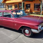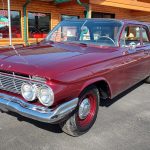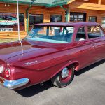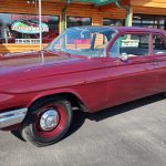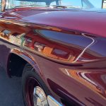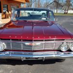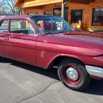 This is a very cool 61 Chevrolet Biscayne, clean Texas car that has had a complete frame off nut and bolt restoration, done in very slick Burgundy Metallic basecoat clearcoat, sanded and wheeled smooth, at time of restoration had new windshield and side glass, back glass is factory original, new window rubbers, weather striping and window felts, new side view mirror, new door handles, grill and headlight bezels are original in excellent condition, front bumper has been re-chromed, new deck lid emblem, taillight housings are original in excellent condition, new taillight lens, rear bumper has also been re-chromed.