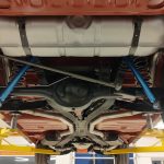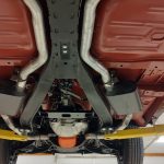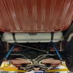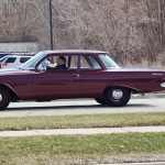Rides on a set of 15 inch steel wheels with dog dish hub caps, new radial tires all around.