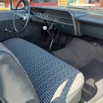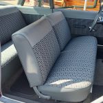 2 tone gray factory type interior, all garnish moldings and dash have been refinished, dash bezel and trim have been reconditioned, original gauges in good working condition, speedo showing 77,000 miles, original steering wheel in excellent condition, new wiring, new visors and headliner, front and rear door panels were custom made using factory materials, new window cranks and handles, new front arm rest, front and rear seats were also reupholstered, new carpet, floor mats and still plates, original type 4 speed shifter.