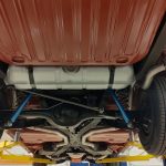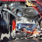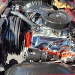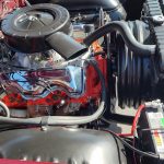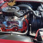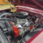 Under the hood we have a rebuilt 409, factory Winters aluminum intake, nicely outfitted with Edelbrock 4 barrel carb with electric choke, factory type ignition, chrome valve covers, factory breather, rebuilt generator, nicely updated with aluminum original appearing radiator, correct shroud and fan, front suspension has been gone through; as well as brake system, factory exhaust manifolds into 2 1/2 inch dual Flowmaster exhaust out the back in stock location, this strong running 409 is backed up with its original 4 speed trans; which has been gone through, new clutch and pressure plate, factory rear; which was rebuilt, new fuel tank and sending unit.