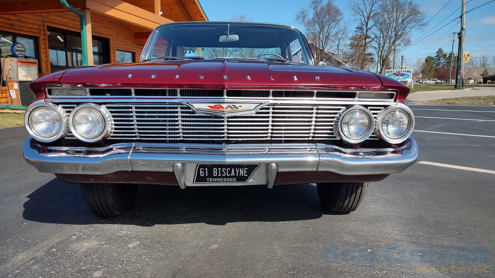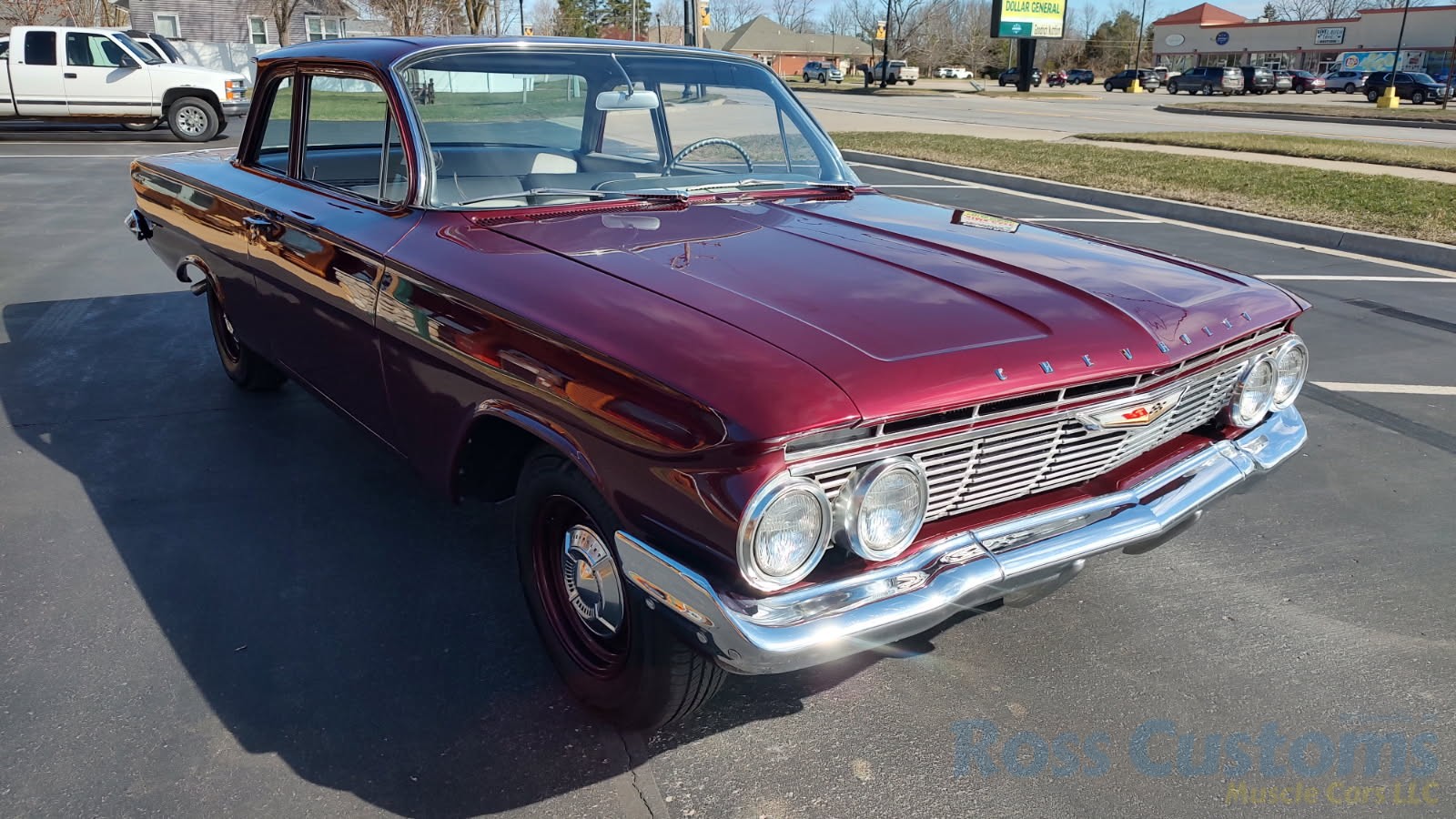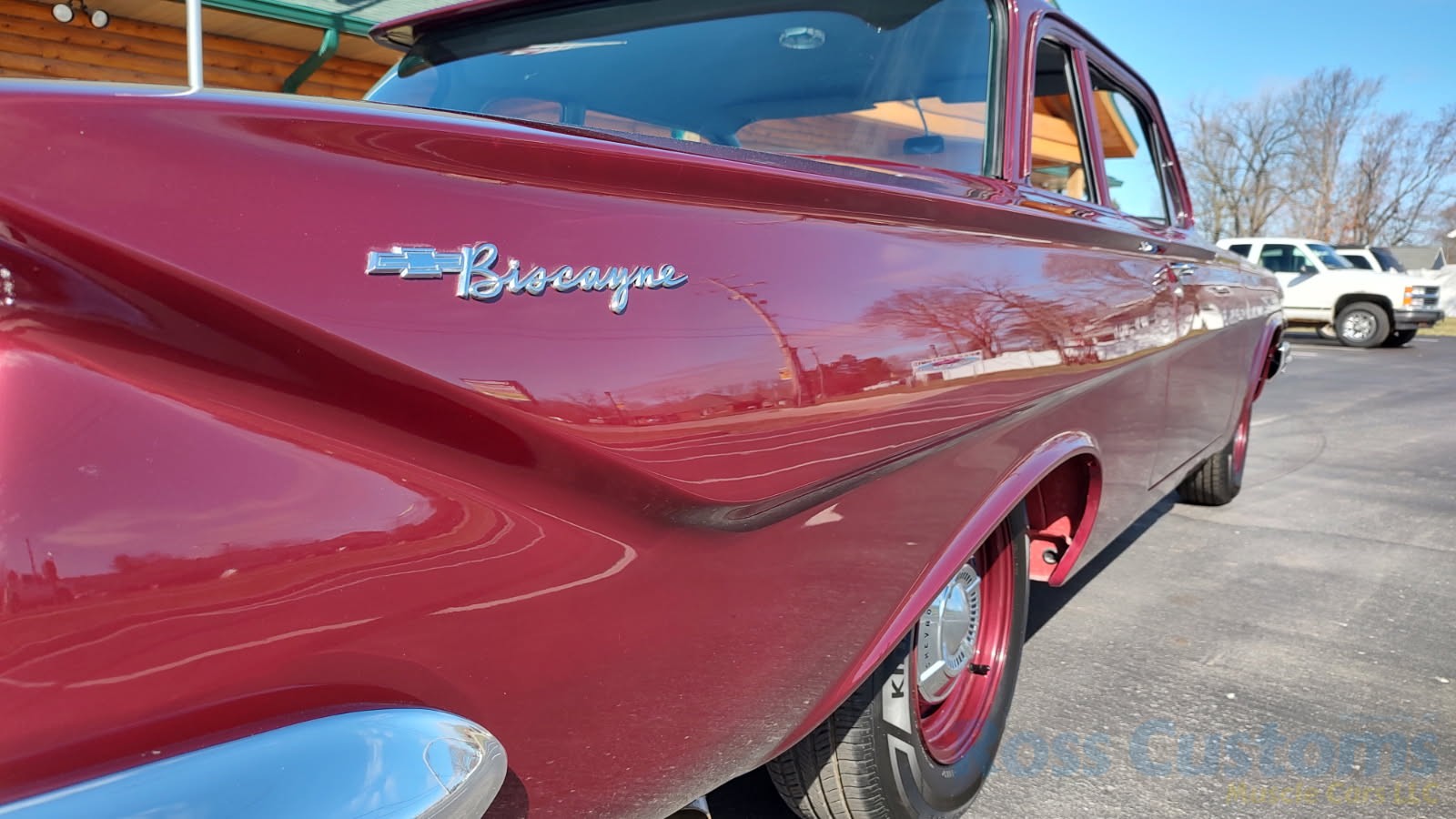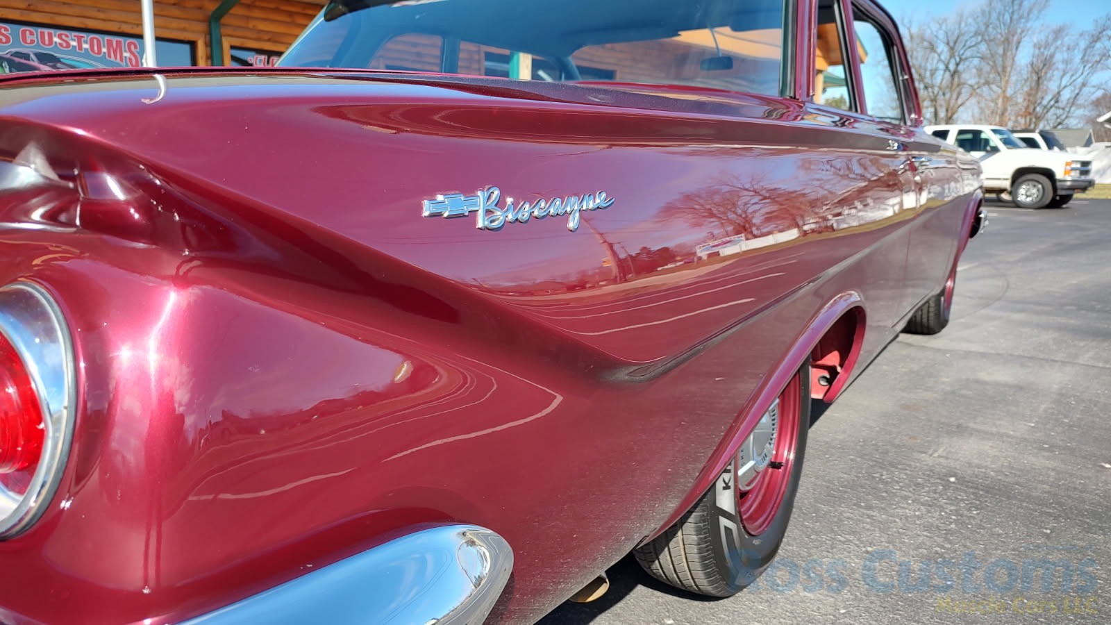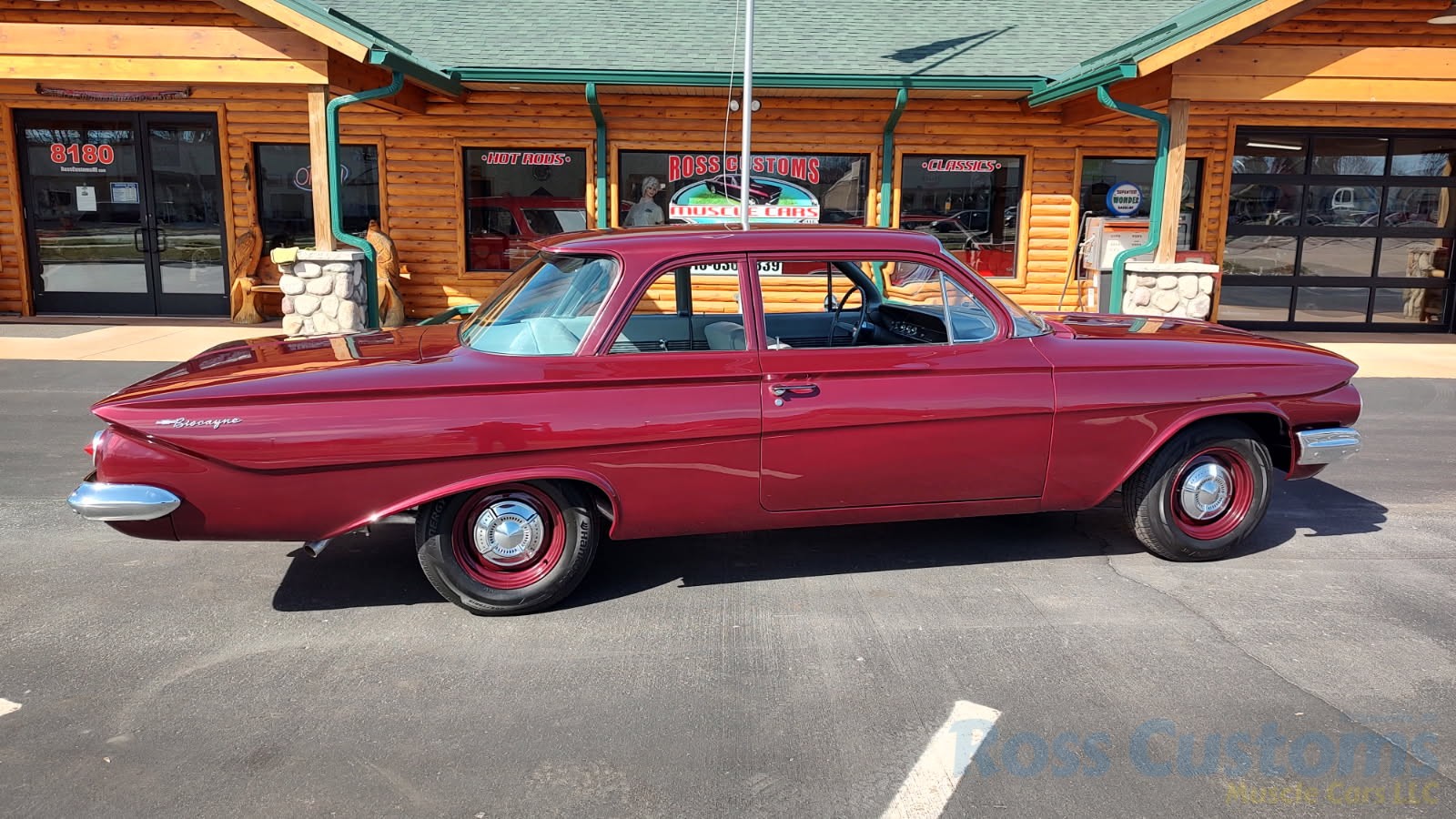 This is a very cool 61 Chevrolet Biscayne, clean Texas car that has had a complete frame off nut and bolt restoration, done in very slick Burgundy Metallic basecoat clearcoat, sanded and wheeled smooth, at time of restoration had new windshield and side glass, back glass is factory original, new window rubbers, weather striping and window felts, new side view mirror, new door handles, grill and headlight bezels are original in excellent condition, front bumper has been re-chromed, new deck lid emblem, taillight housings are original in excellent condition, new taillight lens, rear bumper has also been re-chromed.