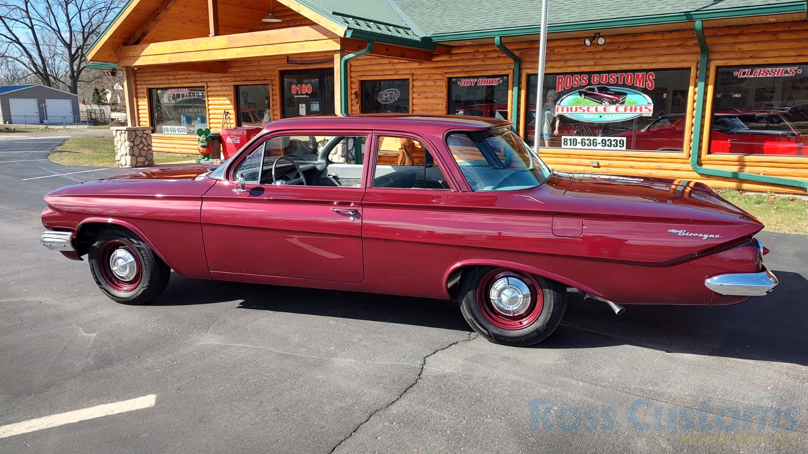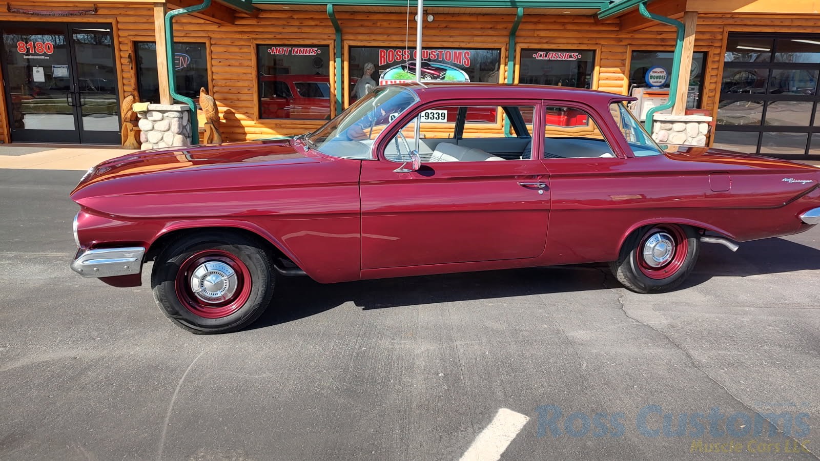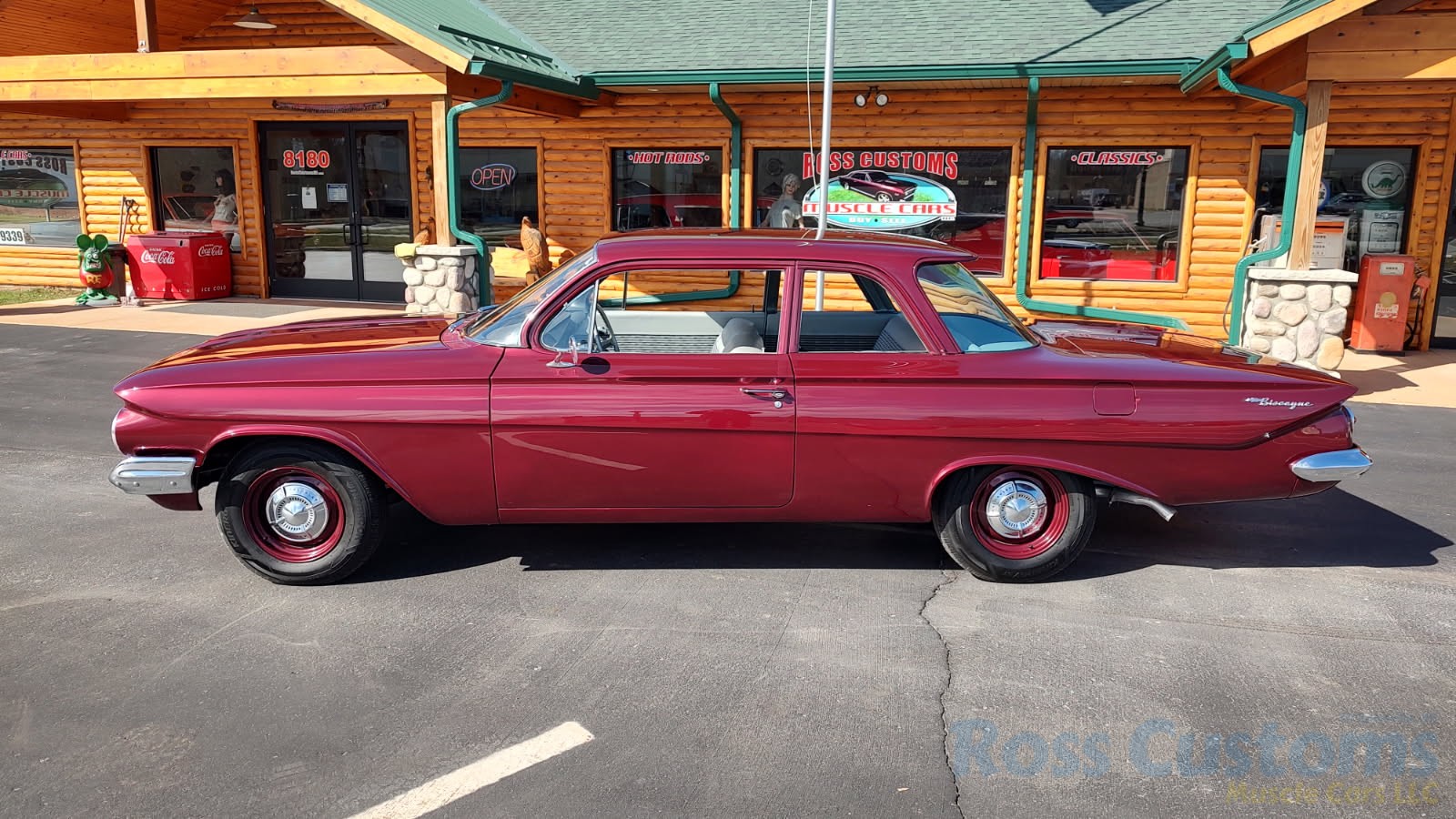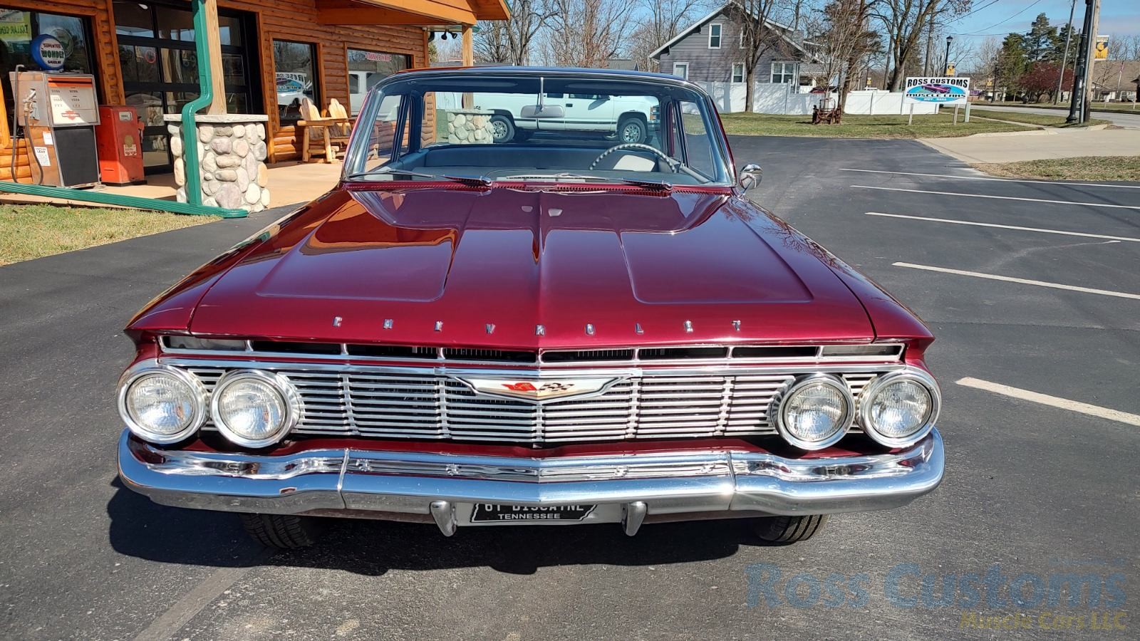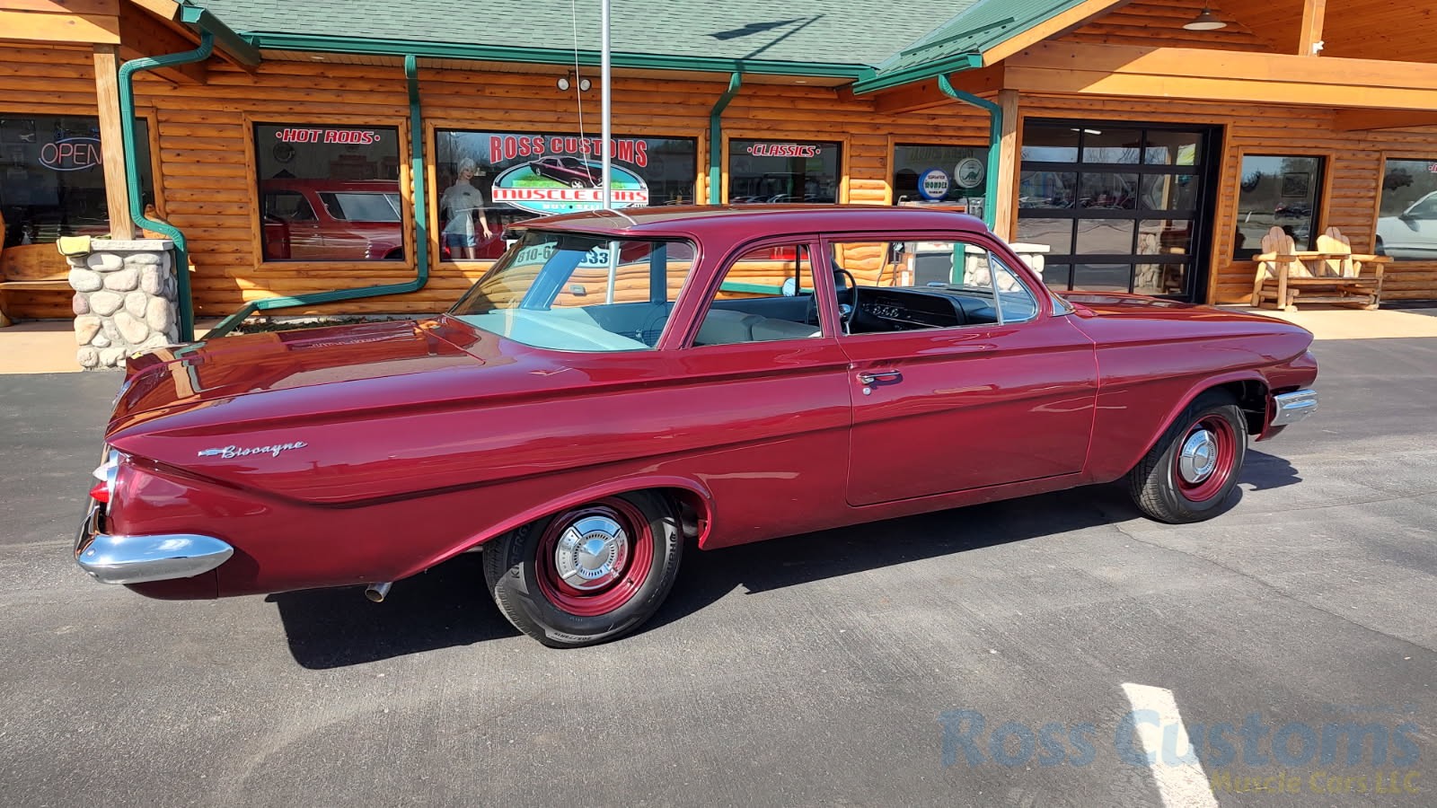 This is a very cool 61 Chevrolet Biscayne, clean Texas car that has had a complete frame off nut and bolt restoration, done in very slick Burgundy Metallic basecoat clearcoat, sanded and wheeled smooth, at time of restoration had new windshield and side glass, back glass is factory original, new window rubbers, weather striping and window felts, new side view mirror, new door handles, grill and headlight bezels are original in excellent condition, front bumper has been re-chromed, new deck lid emblem, taillight housings are original in excellent condition, new taillight lens, rear bumper has also been re-chromed.