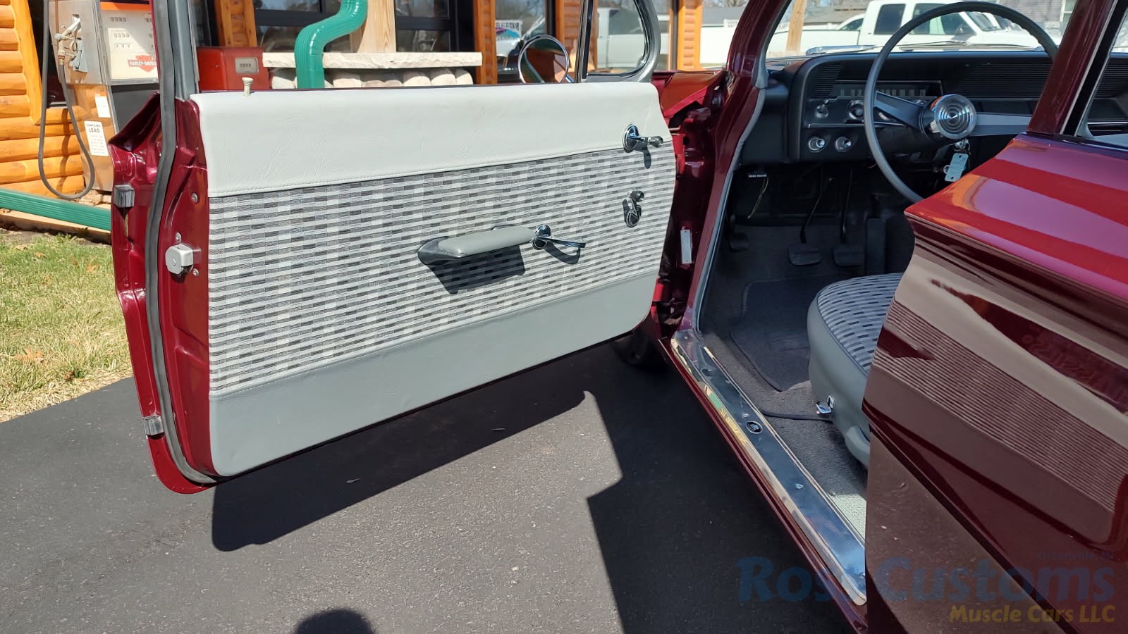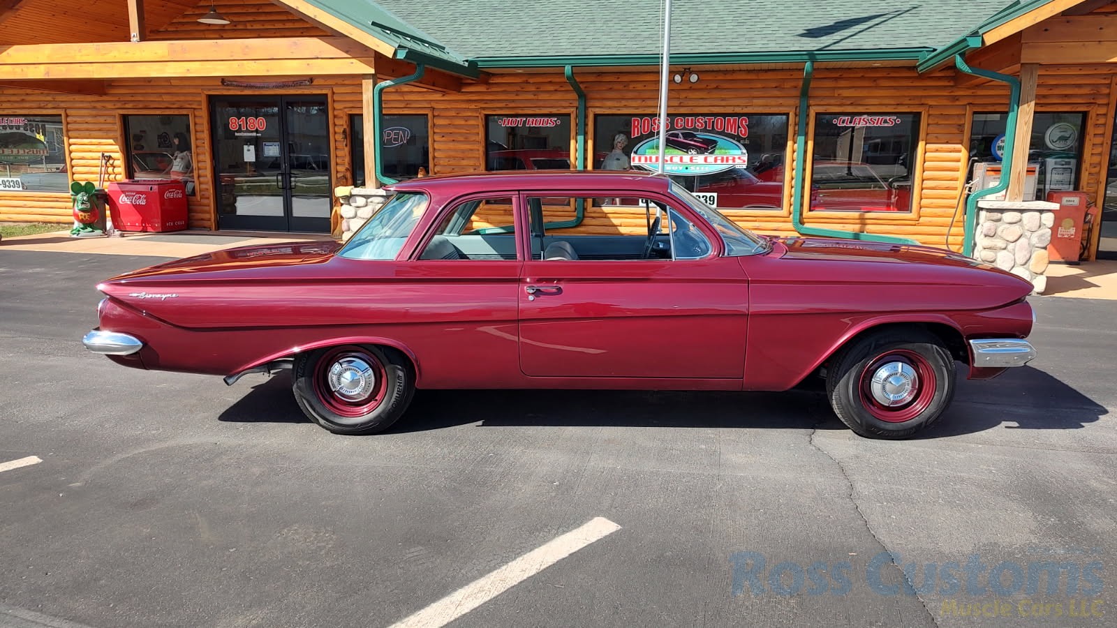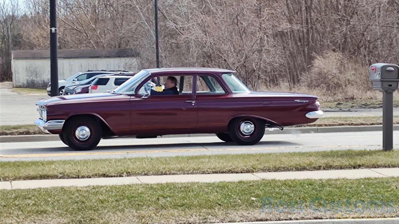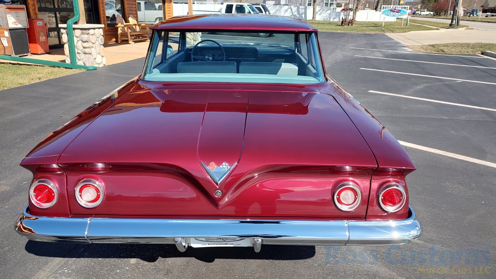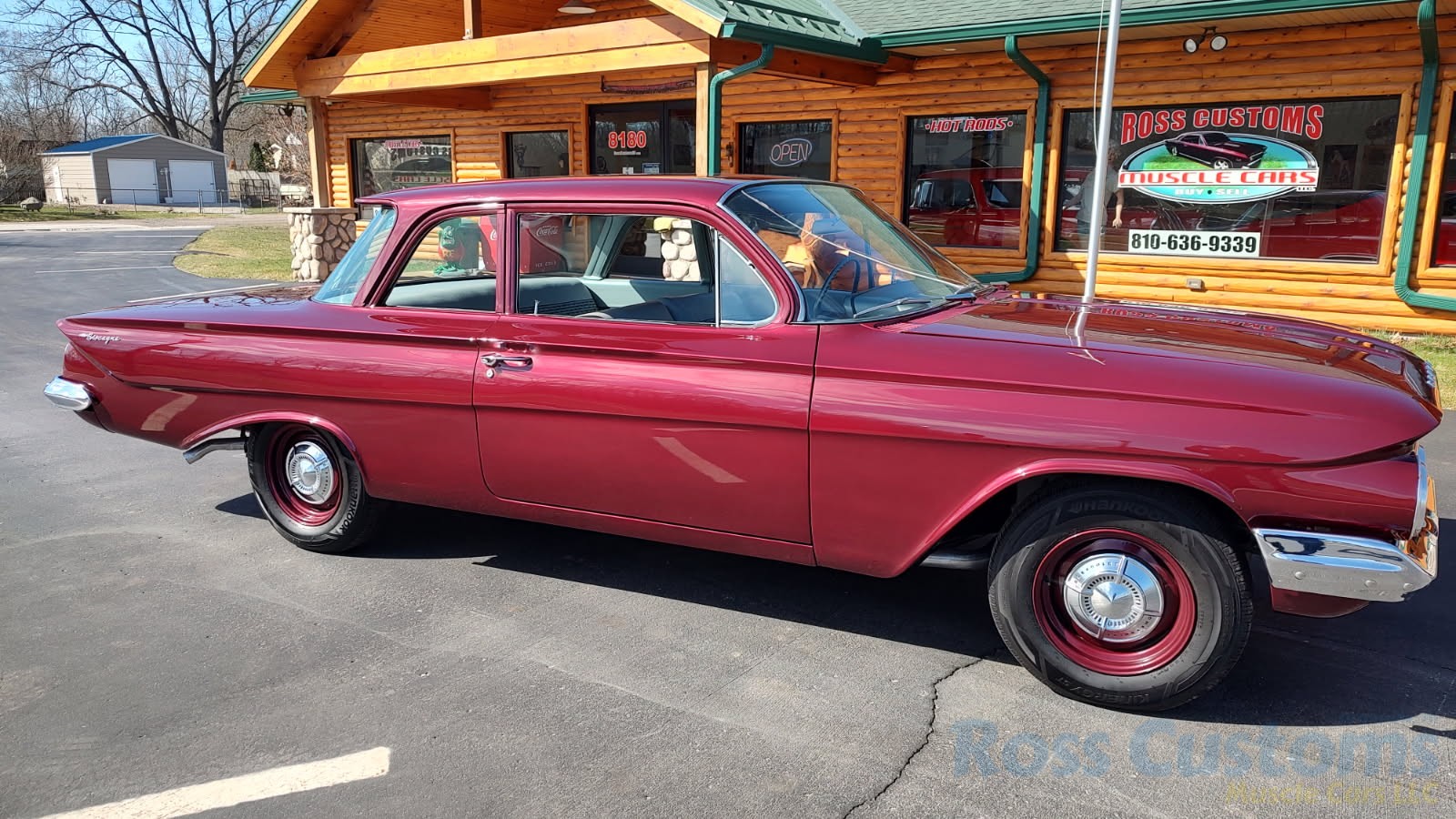 This is a very cool 61 Chevrolet Biscayne, clean Texas car that has had a complete frame off nut and bolt restoration, done in very slick Burgundy Metallic basecoat clearcoat, sanded and wheeled smooth, at time of restoration had new windshield and side glass, back glass is factory original, new window rubbers, weather striping and window felts, new side view mirror, new door handles, grill and headlight bezels are original in excellent condition, front bumper has been re-chromed, new deck lid emblem, taillight housings are original in excellent condition, new taillight lens, rear bumper has also been re-chromed.