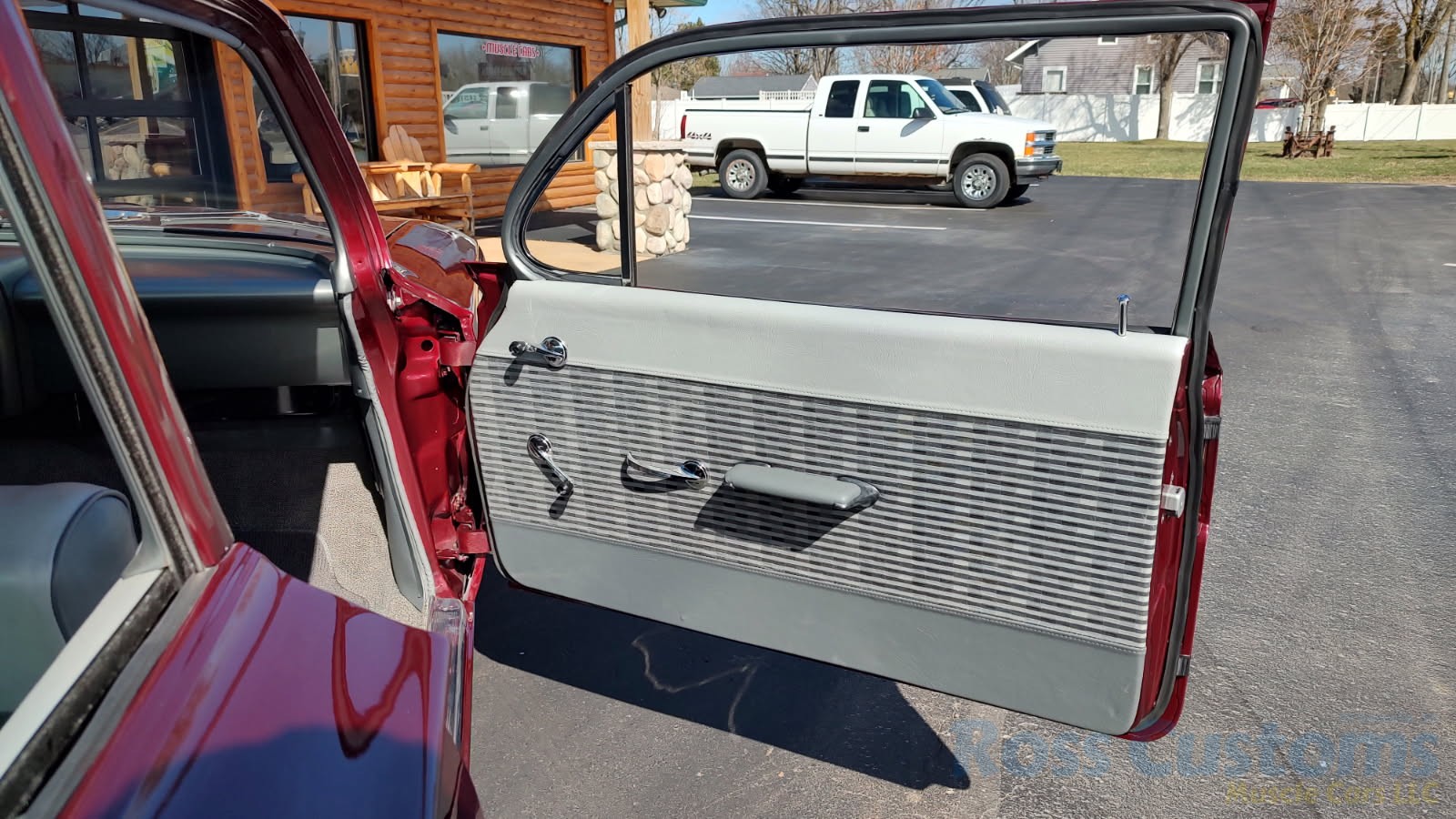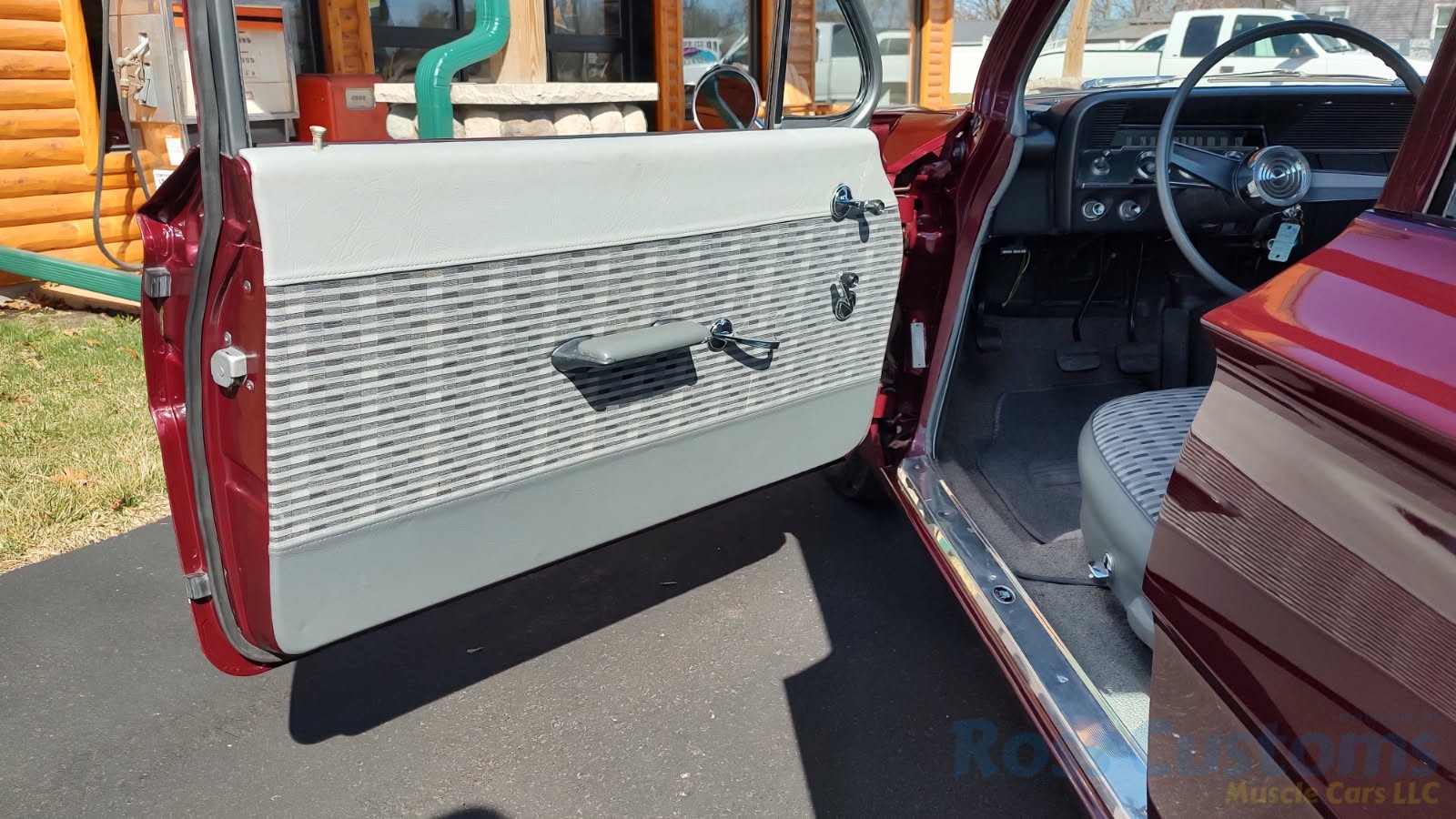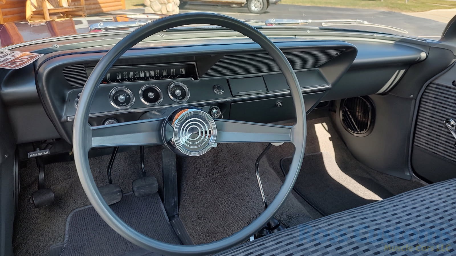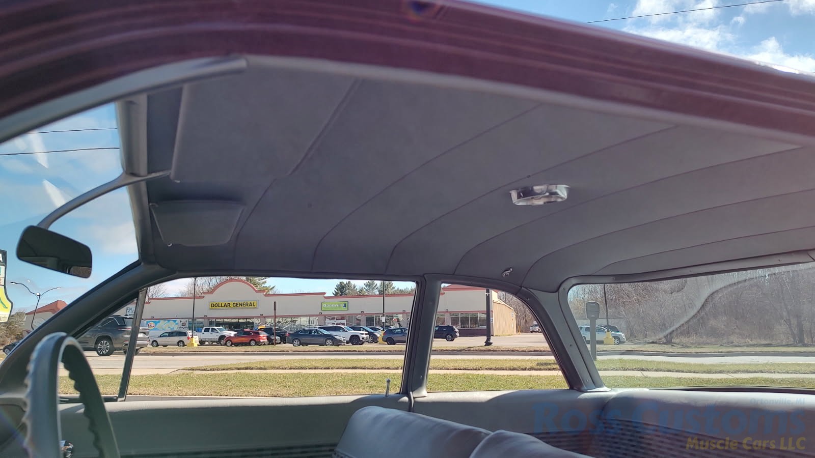 2 tone gray factory type interior, all garnish moldings and dash have been refinished, dash bezel and trim have been reconditioned, original gauges in good working condition, speedo showing 77,000 miles, original steering wheel in excellent condition, new wiring, new visors and headliner, front and rear door panels were custom made using factory materials, new window cranks and handles, new front arm rest, front and rear seats were also reupholstered, new carpet, floor mats and still plates, original type 4 speed shifter.