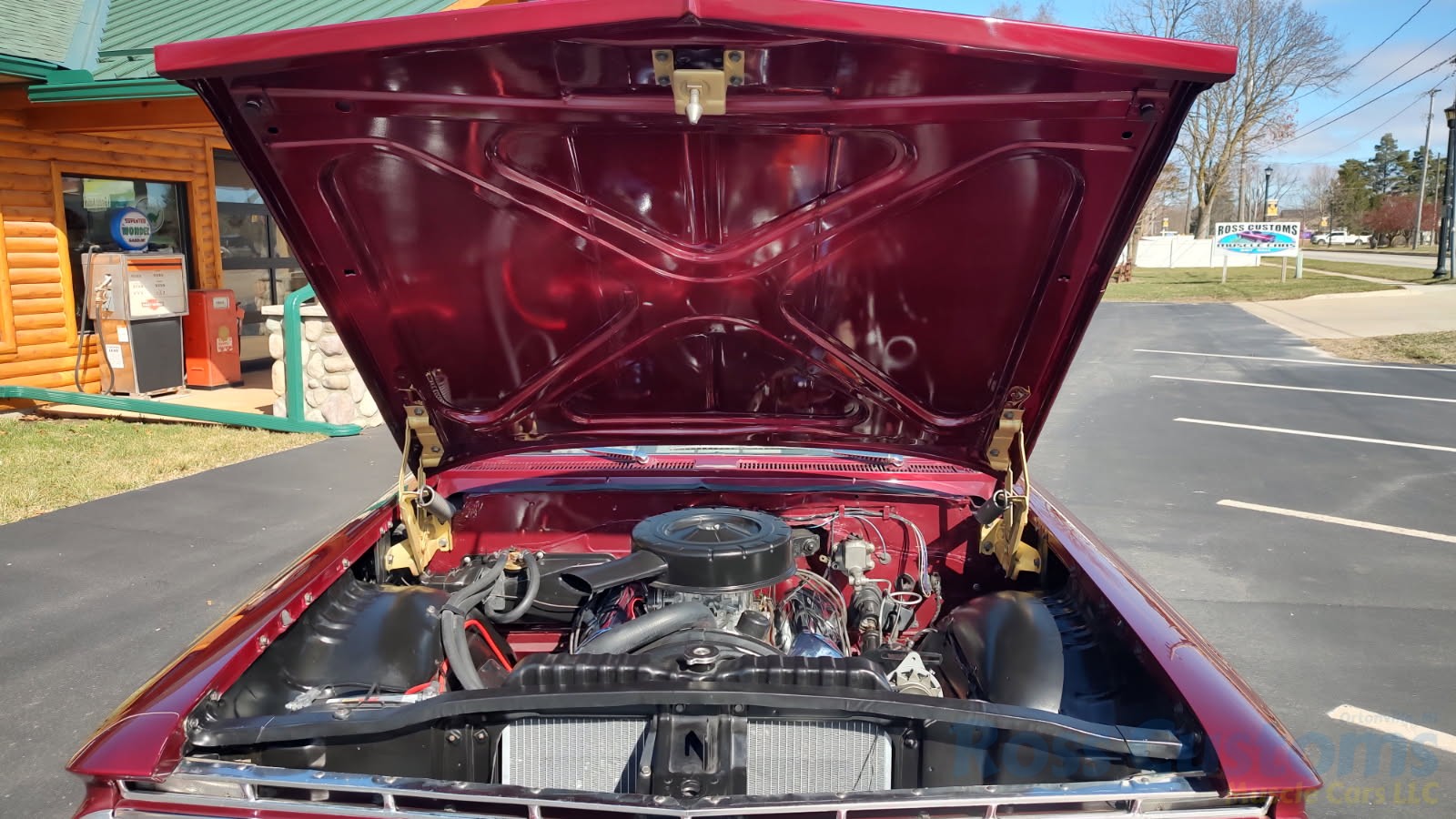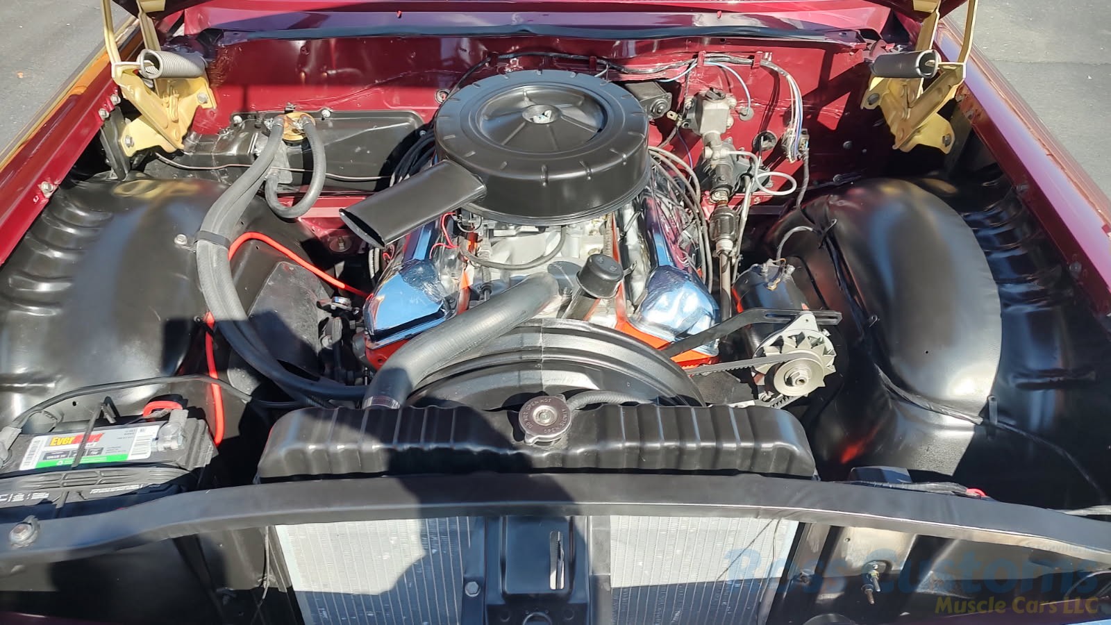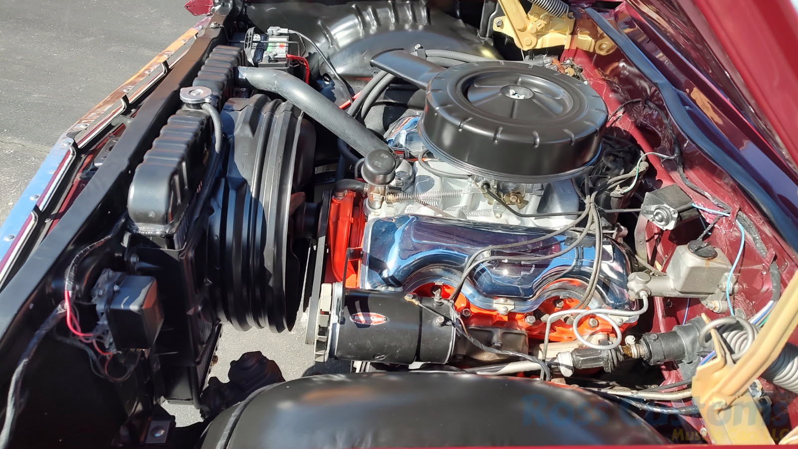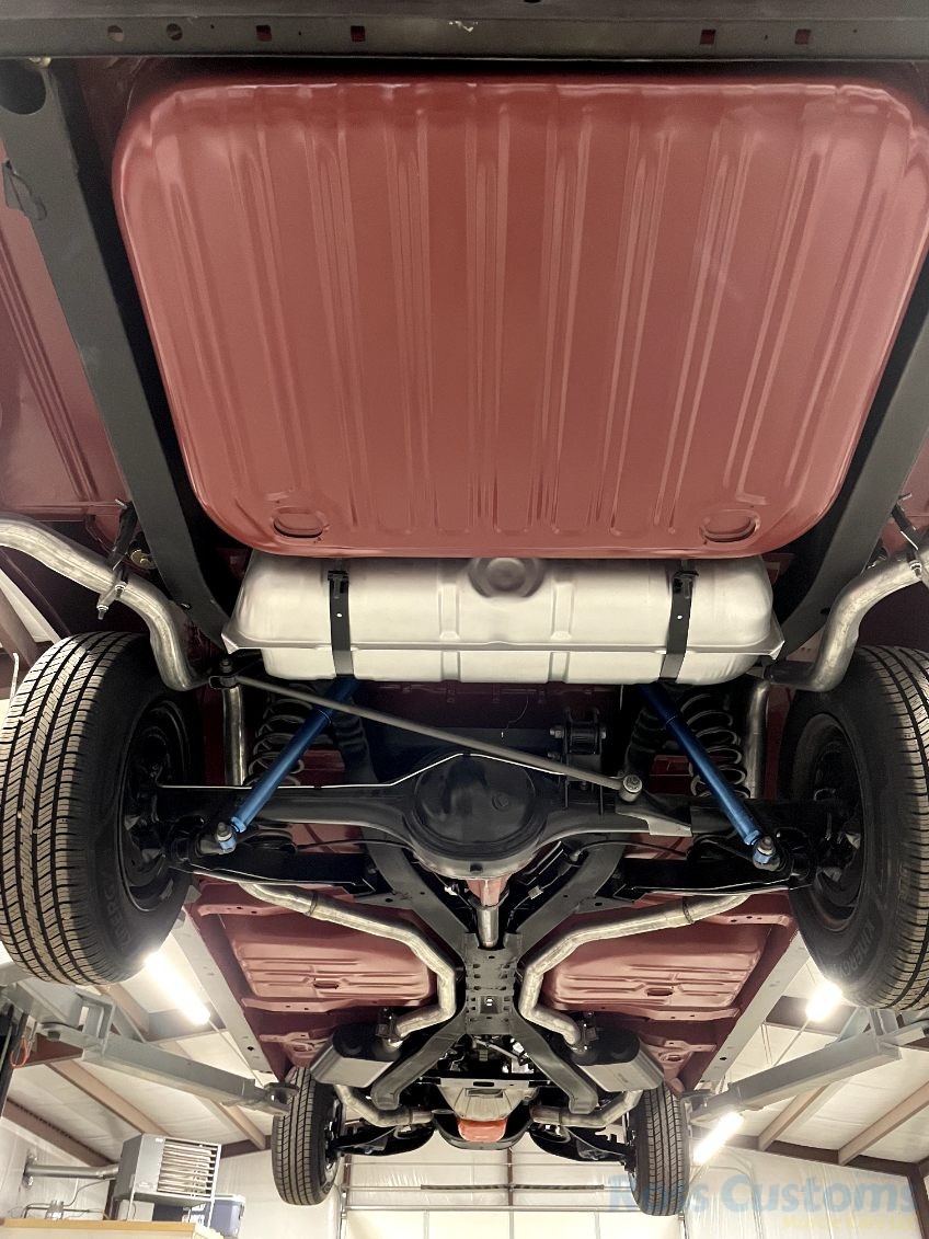 Under the hood we have a rebuilt 409, factory Winters aluminum intake, nicely outfitted with Edelbrock 4 barrel carb with electric choke, factory type ignition, chrome valve covers, factory breather, rebuilt generator, nicely updated with aluminum original appearing radiator, correct shroud and fan, front suspension has been gone through; as well as brake system, factory exhaust manifolds into 2 1/2 inch dual Flowmaster exhaust out the back in stock location, this strong running 409 is backed up with its original 4 speed trans; which has been gone through, new clutch and pressure plate, factory rear; which was rebuilt, new fuel tank and sending unit.