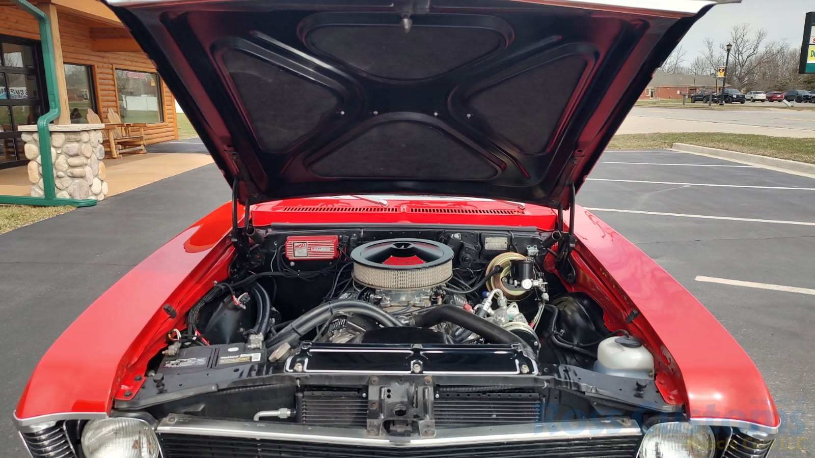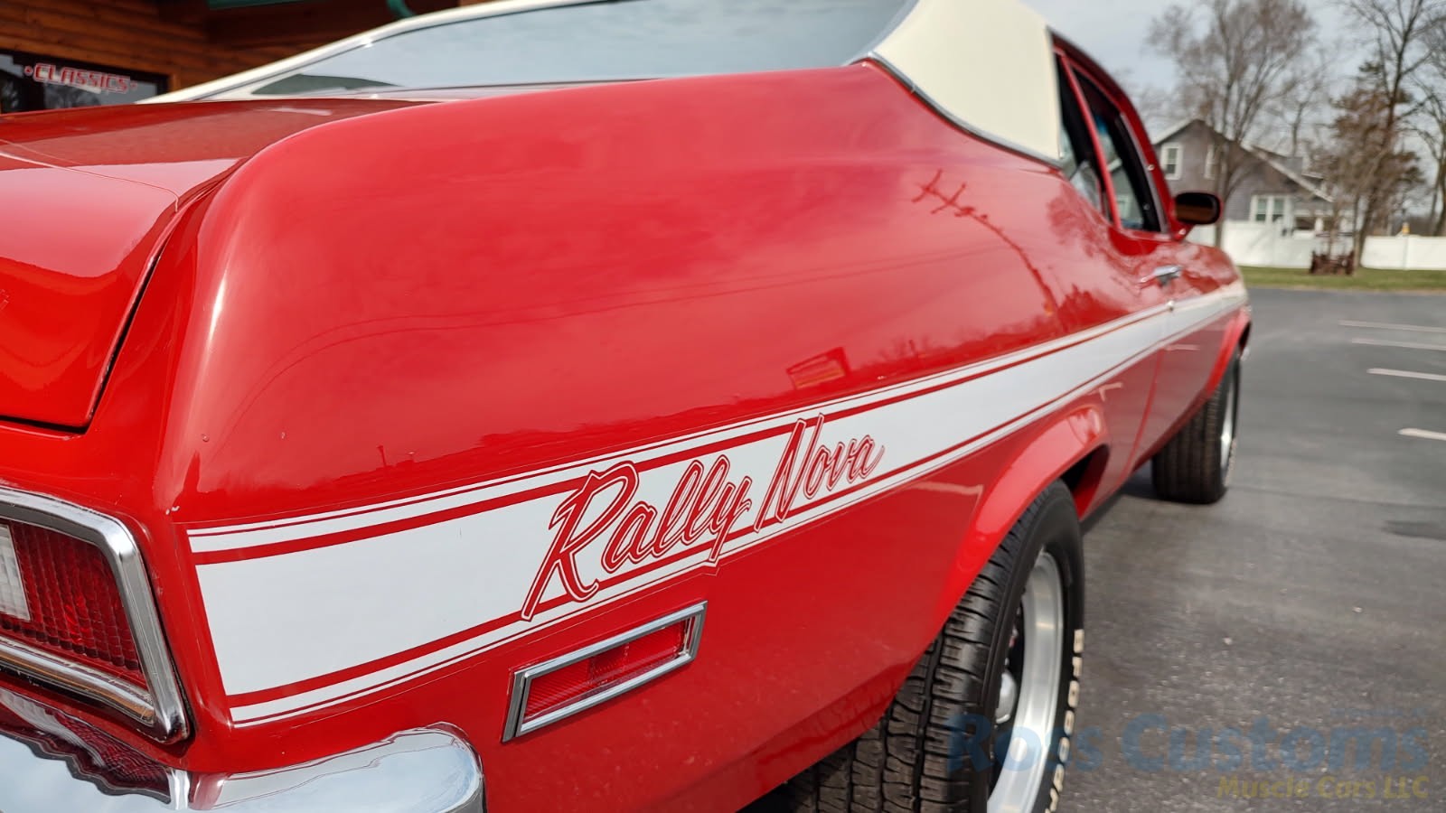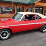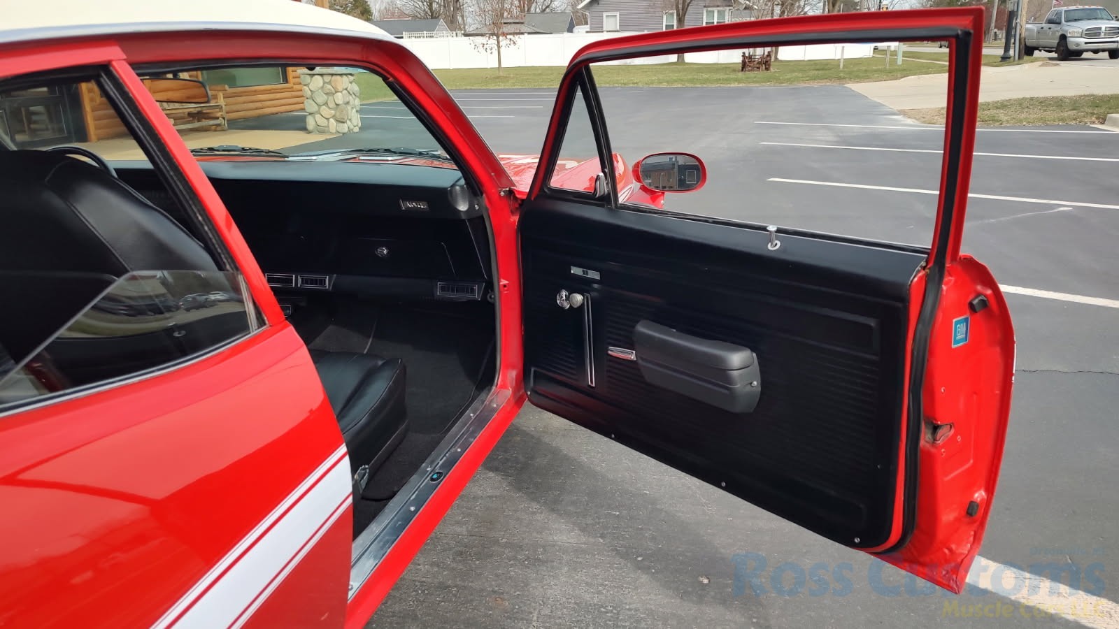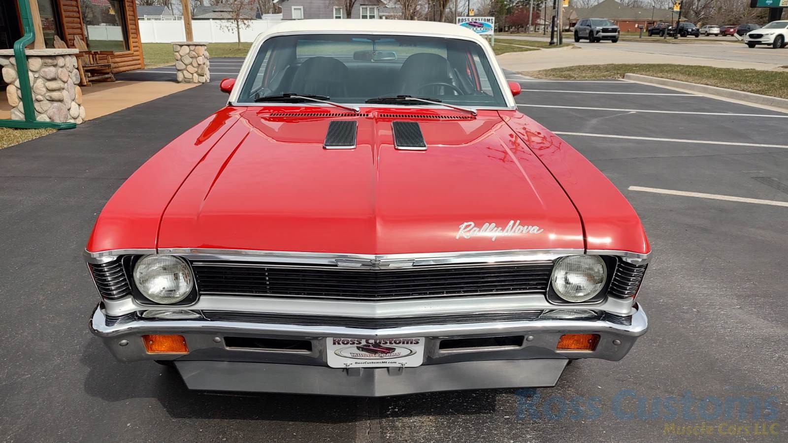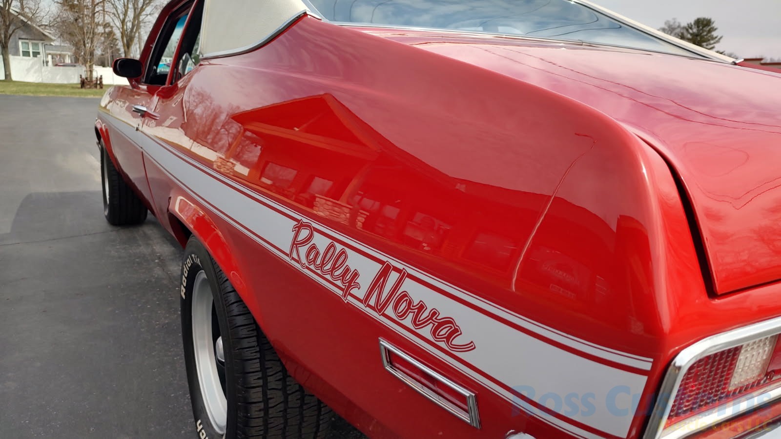 This is a very clean original panel 72 Rally Nova that has had 1 factory repaint Cranberry Red which has been sanded and wheeled smooth, vinyl top has also been replace in excellent condition, factory Rally strip, new tinted windshield; all other glass is factory original in excellent condition, all window trim and vinyl top trim are in very good condition, all weather stripping and window felts have been replaced, factory dual sport side view mirrors; driver side is remote, door handles have been replaced, previous owner added SS hood louvers for the cool look, hood moldings and fender eyebrow moldings are original in very good condition, grill and headlight bezels are also original in very good condition, front bumper has been re-chromed, added chin spoiler, original fender emblems and side markers in excellent condition, original taillights and bezels in excellent condition, re-chromed rear bumper.