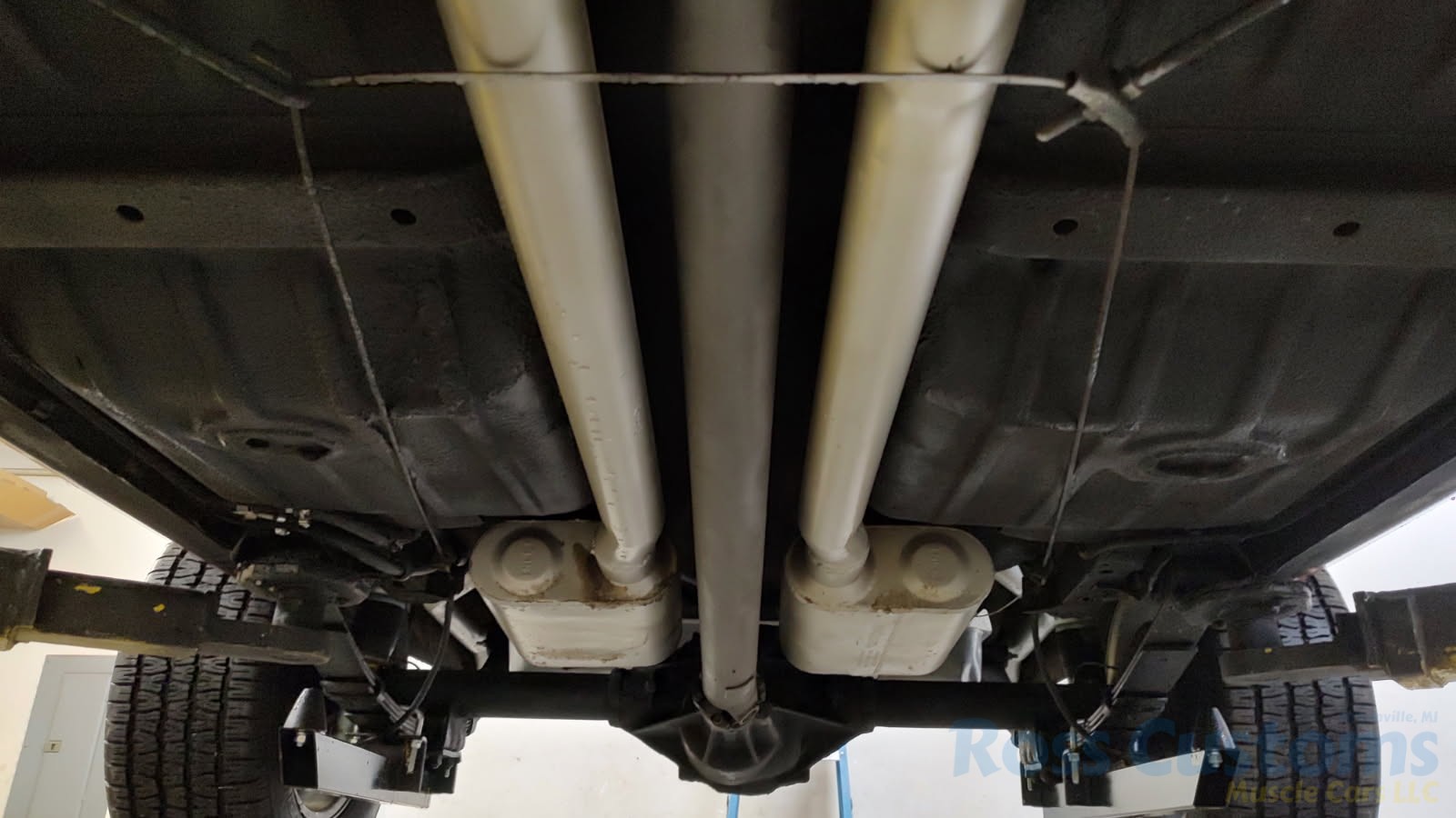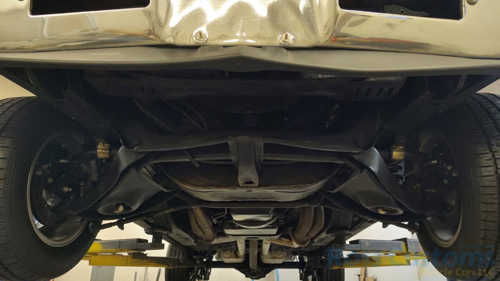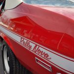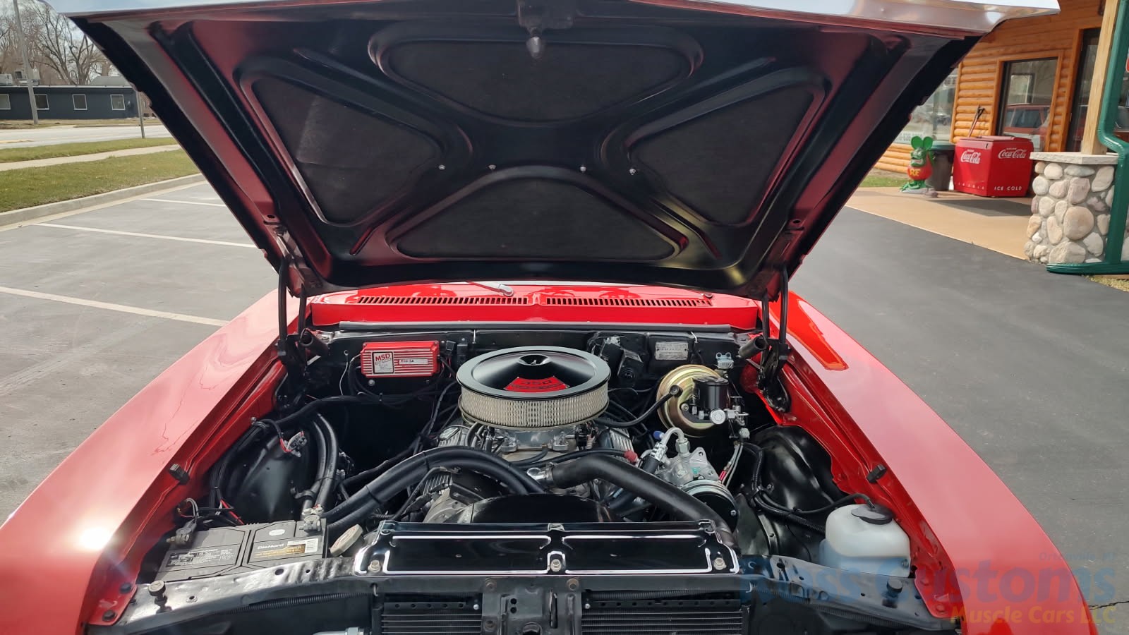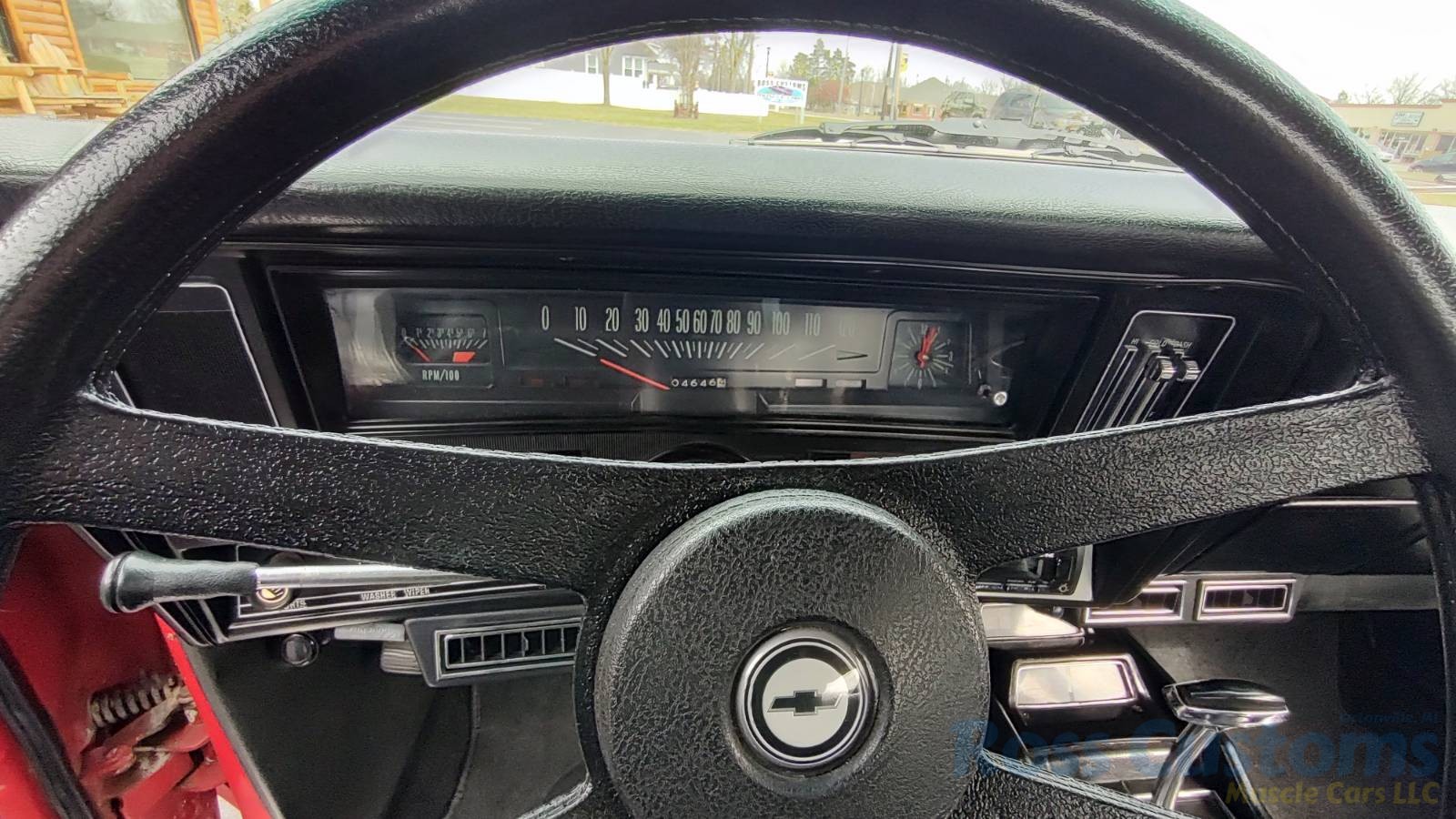 Under the hood we have the original #’s matching 350 – which has been rebuilt (per previous owner), mild cam, Edelbrock aluminum intake, nicely outfitted and upgraded with Sniper Fuel injection with correct new fuel tank and in tank pump, also updated with MSD ignition, factory finned aluminum valve covers, Vintage AC and heat, heavy duty radiator with correct shroud and fan, power steering, nicely updated with power Wilwood disc brakes up front, drilled and slotted rotors, drums out back, front suspension has been gone through, this strong running 350 is backed up with a 350 turbo trans, set of headers into 2 1/2 inch dual Flowmaster exhaust out the back, 10 bolt limited slip rear.